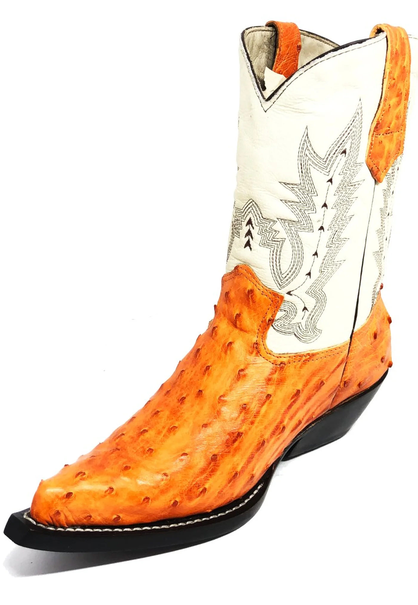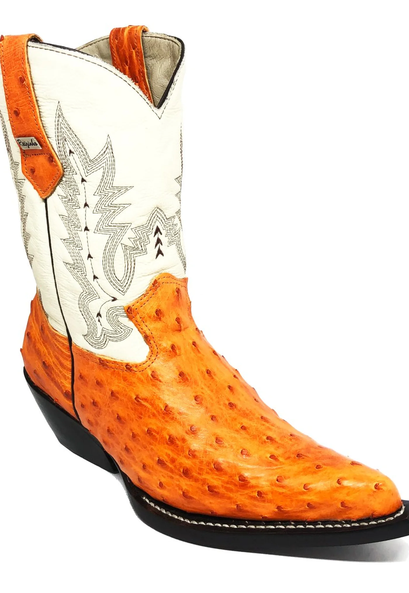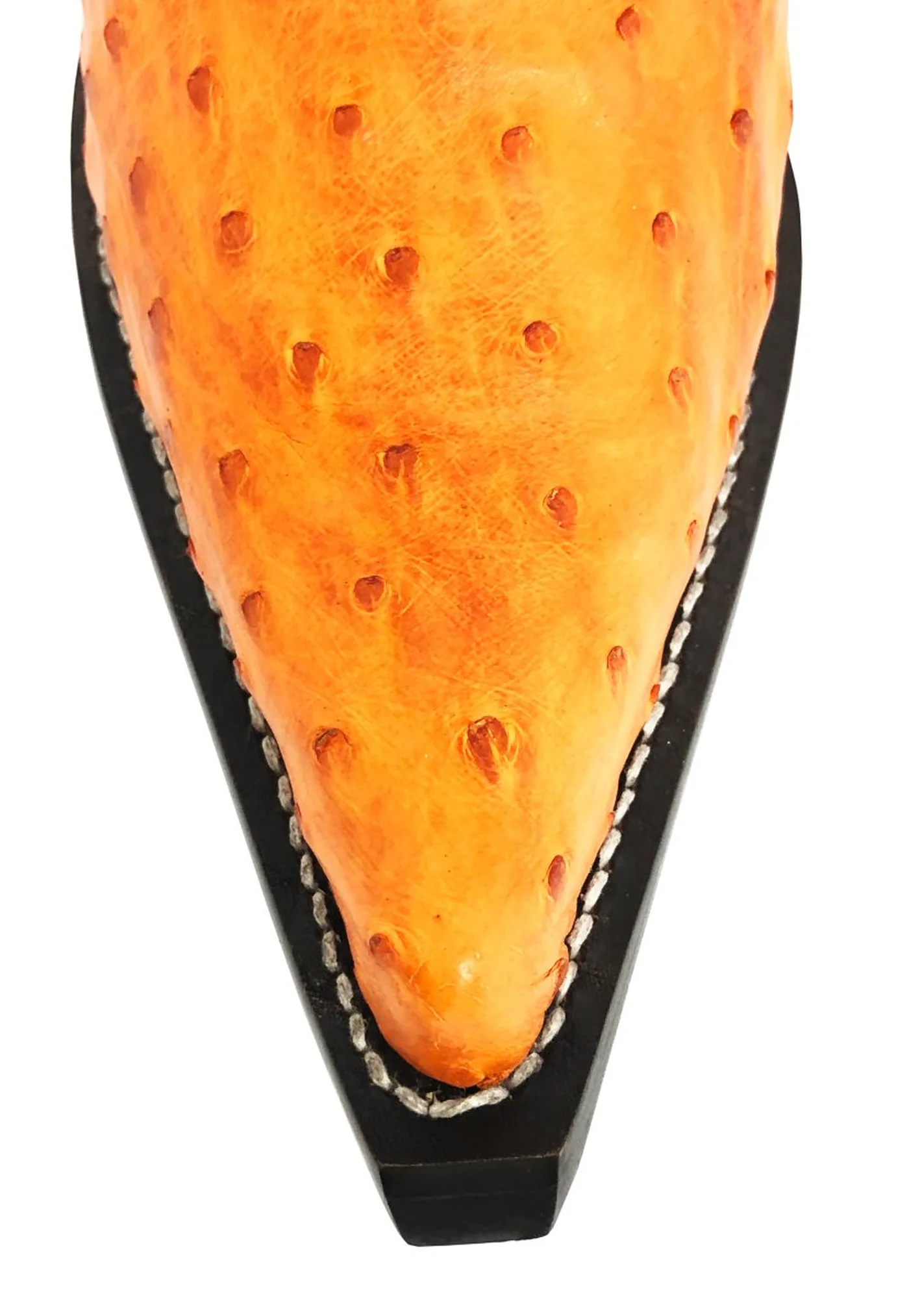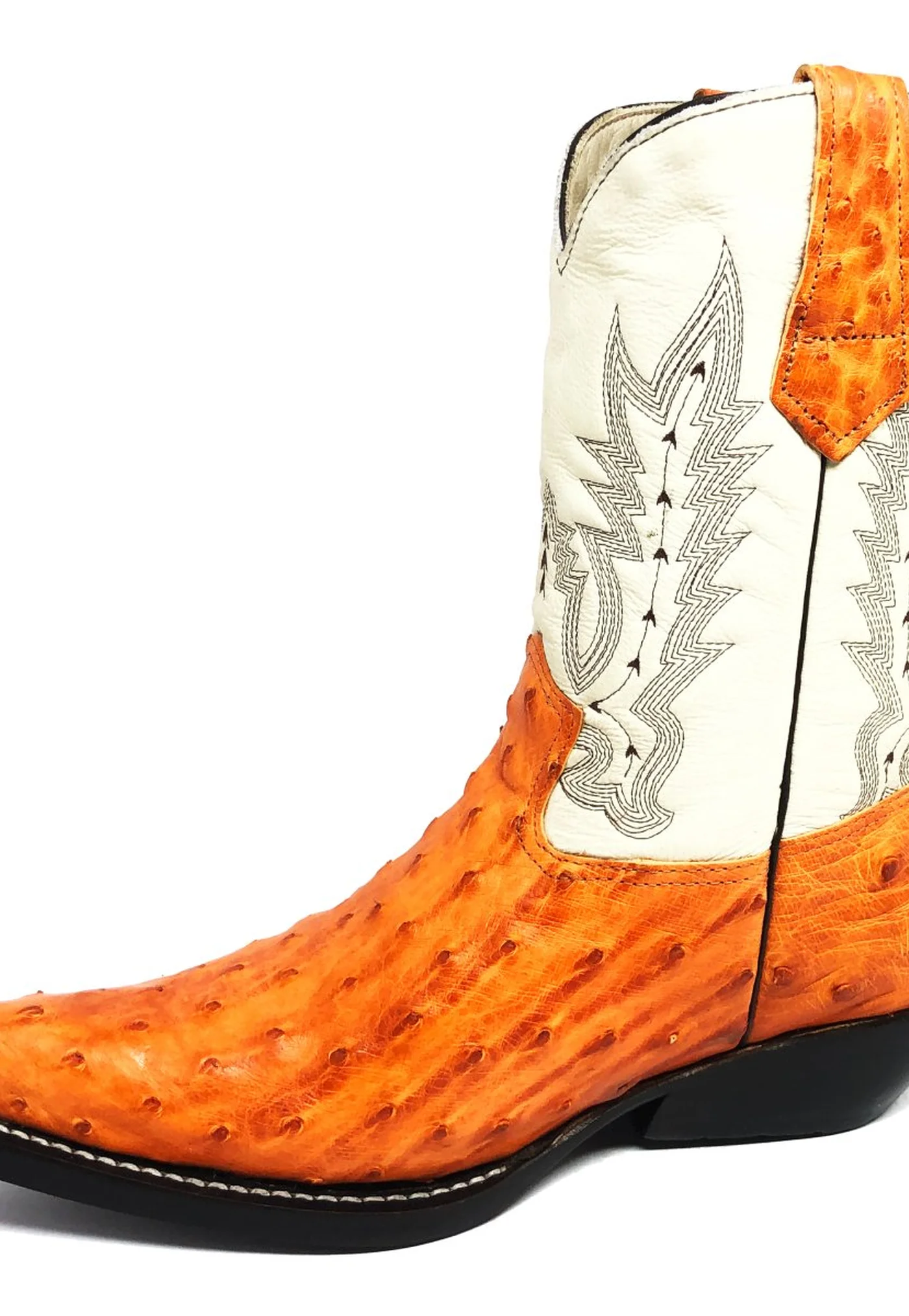 Bota De Couro Avestruz Cheio Laranja - Cano Médio, Bico Fino, SOLADO DE COURO ARTESANAL