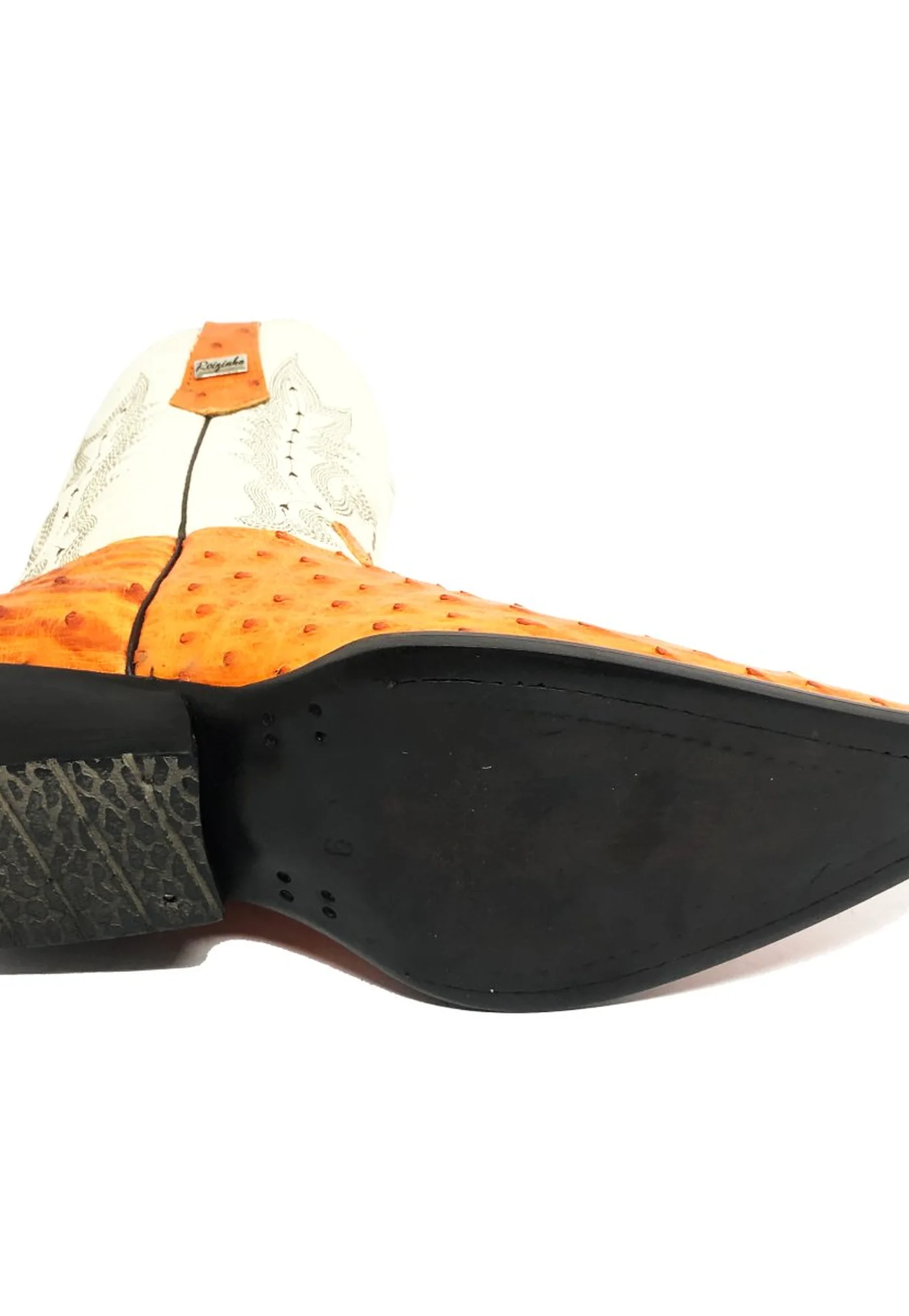 Antes da junção do salto ao solado, a sola de couro, manualmente cortada, lixada, colada, pregada e costurada interna e externamente, anexa-se de maneira tão bem elaborada e detalhada à bota. Por fim, recebe o salto, que é colado e pregado ao solado de couro de dentro para fora da bota e, finalmente, prensado para garantir que toda a estrutura da sola e o salto estejam com 100% de contato entre si, fixando-se perfeitamente. Essa construção manual resulta em um calçado de qualidade incomparável, e muitos de nossos clientes brincam que os solados artesanais da Reizinho Botas só se soltam se Deus quiser, pois a maneira como são construídos é tão detalhada e complexa que é praticamente impossível um solado desses apresentar um defeito de fabricação. Eles são projetados e feitos com tamanha dedicação que só chegarão ao fim por meio do desgaste natural do produto.