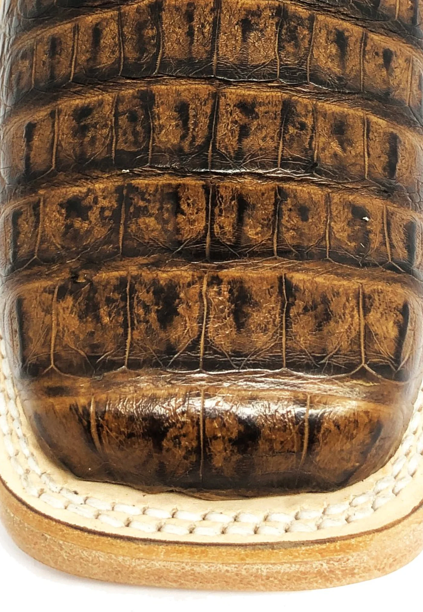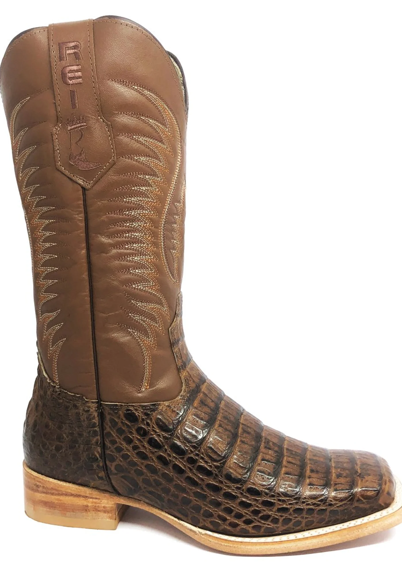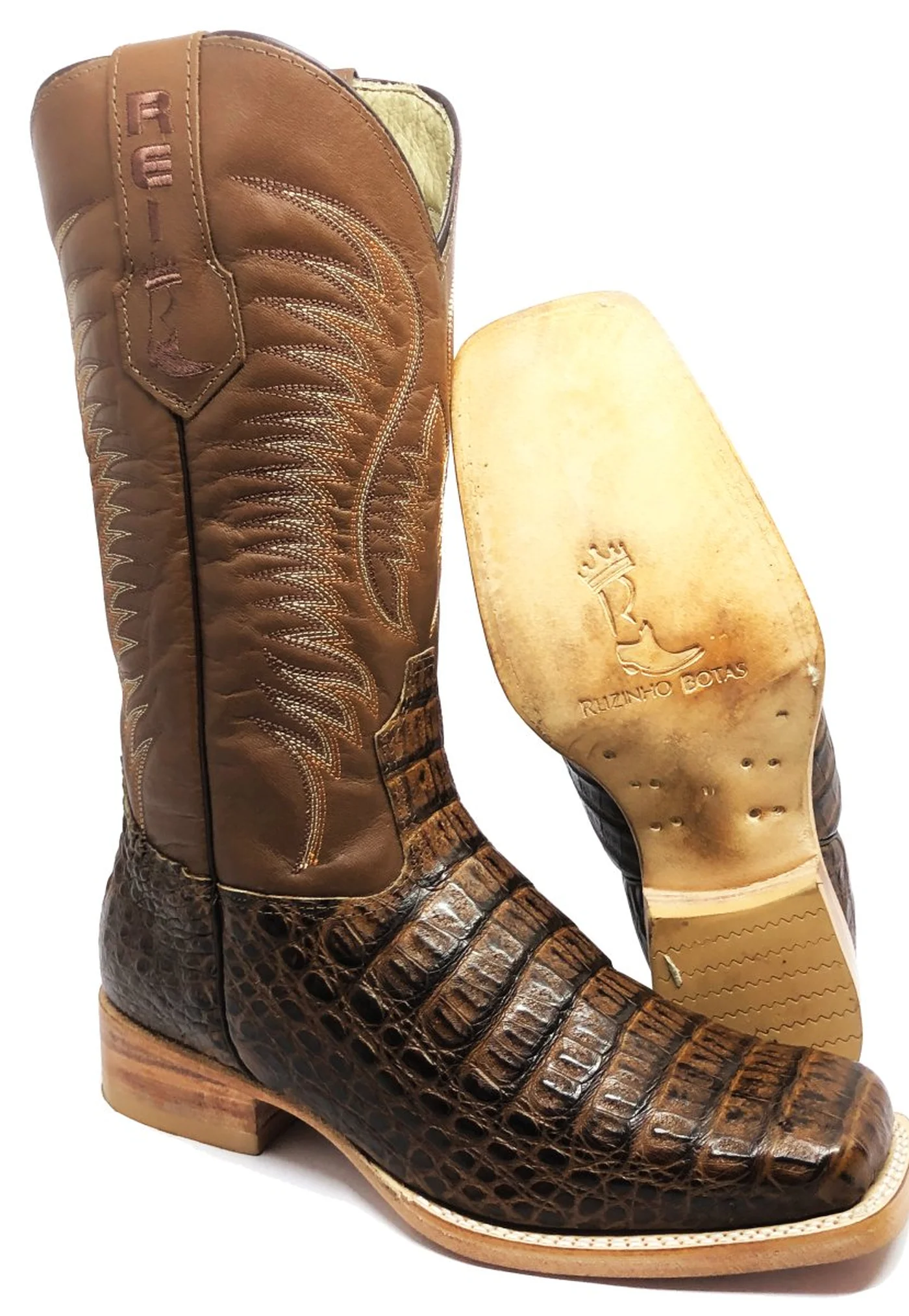 BOTA REIZINHO PREMIUM DE COURO DE JACARÉ TABACO LIMITED EDITION - CANO ALTO, BICO QUADRADO, SOLADO DE COURO ARTESANAL
