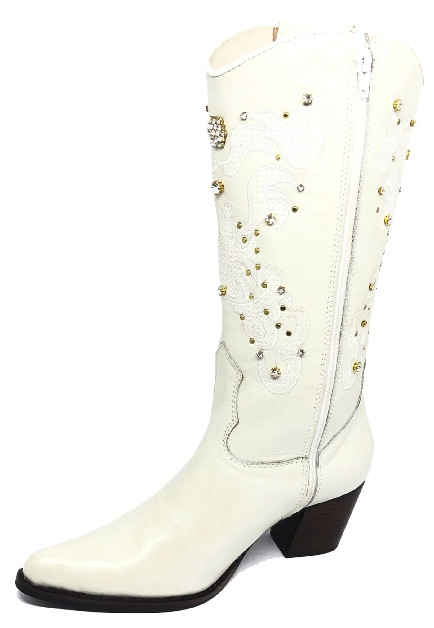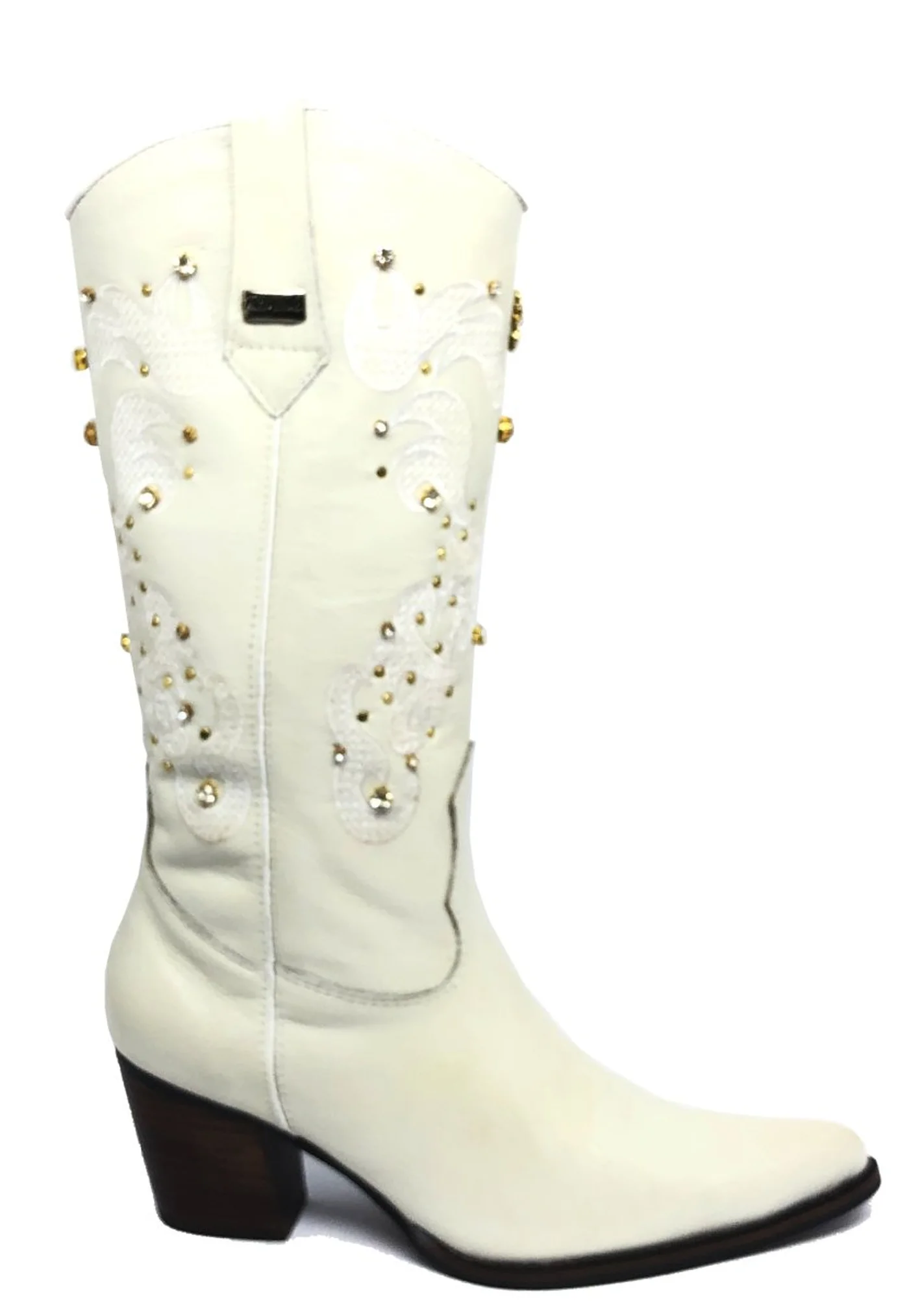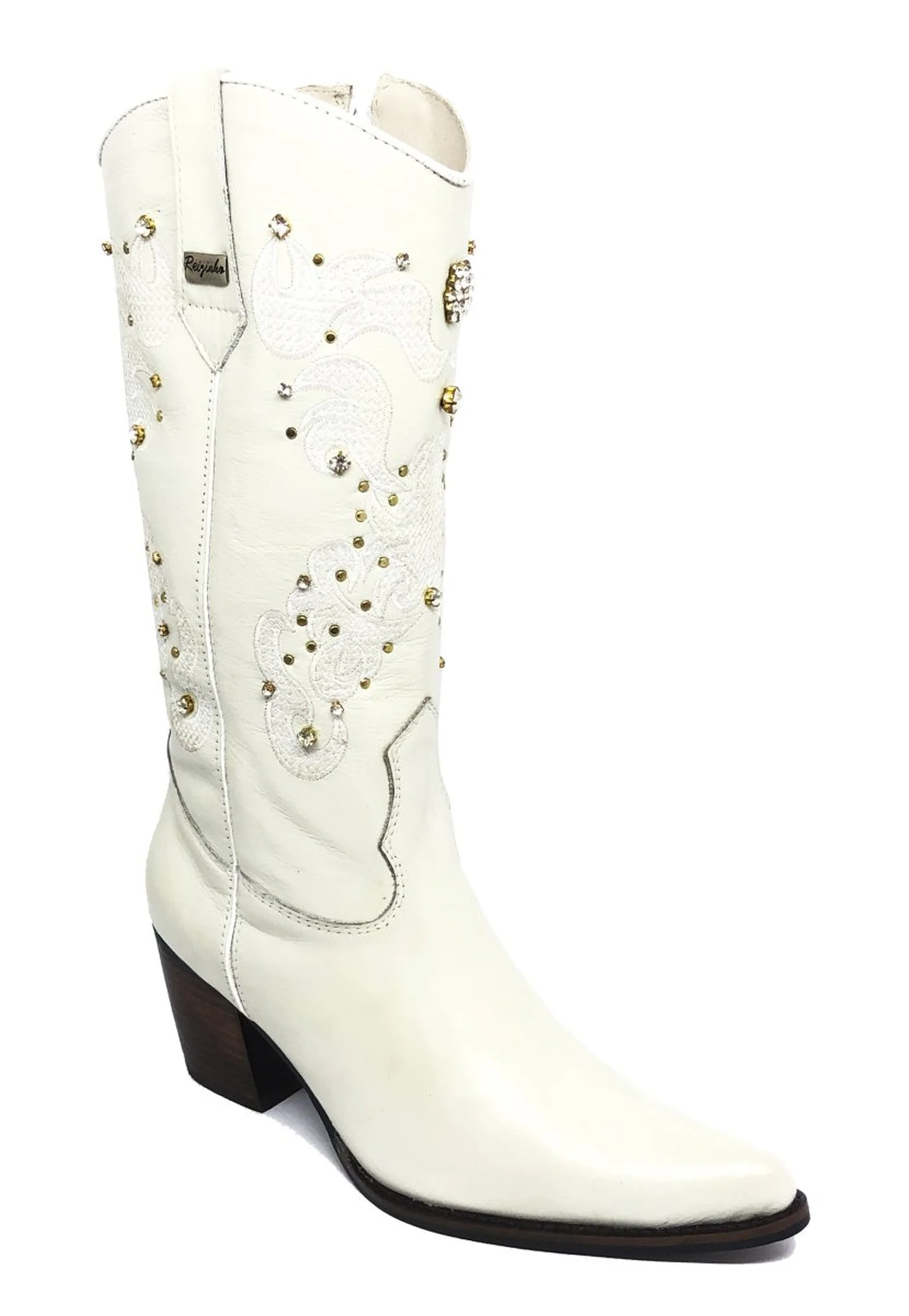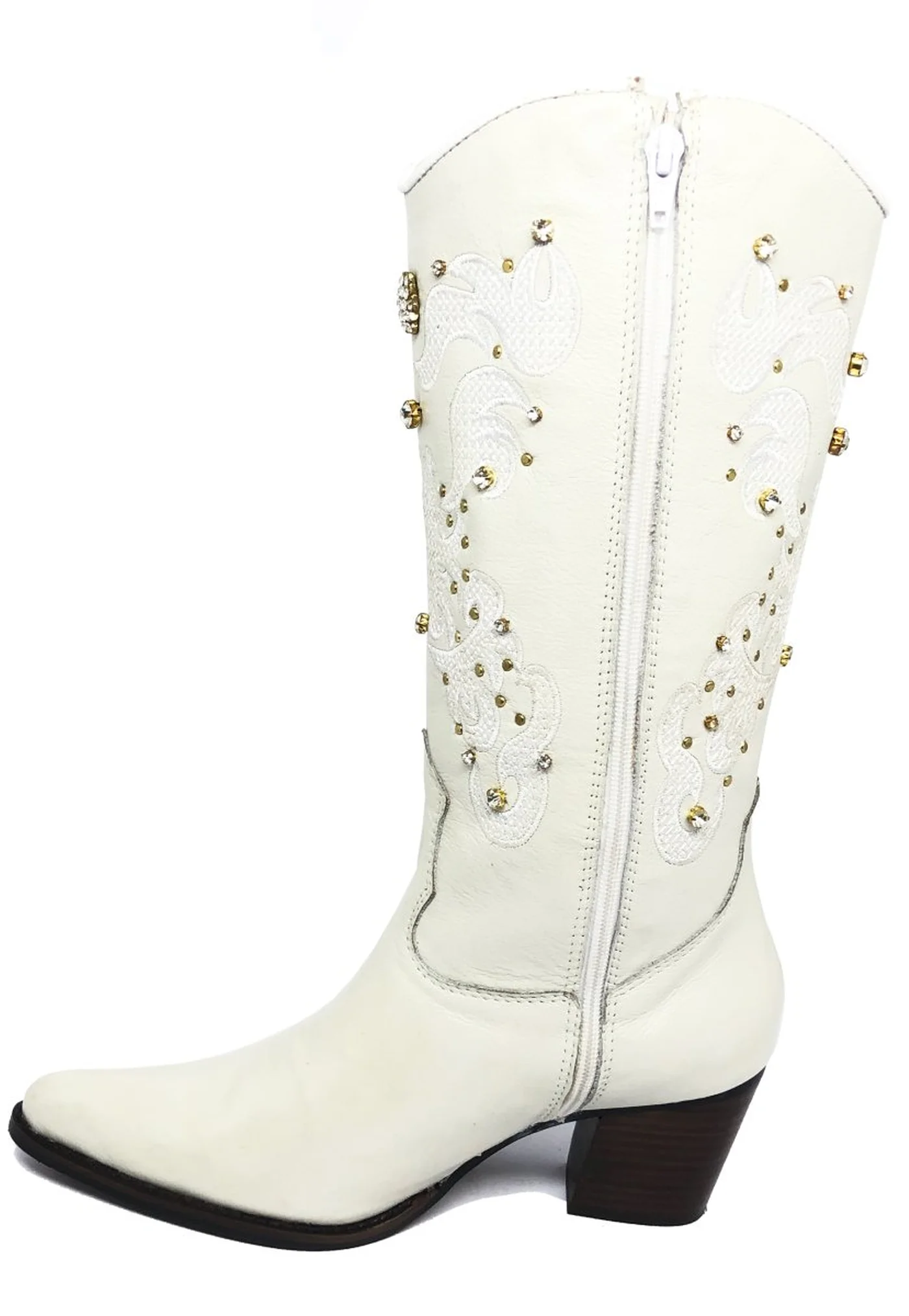 Bota Texana Feminina de Couro Bovino Bege Off White | Linha Cowgirl Elite | Reizinho Botas