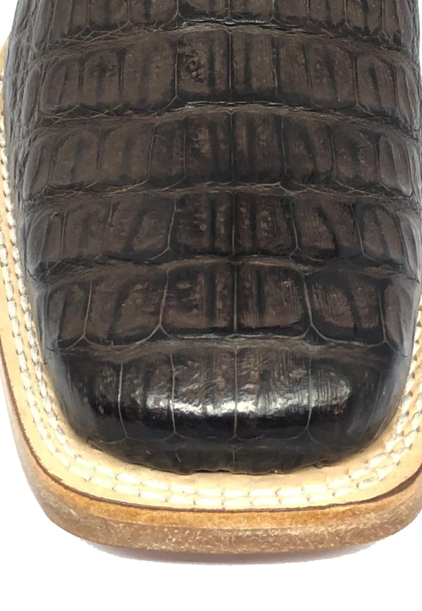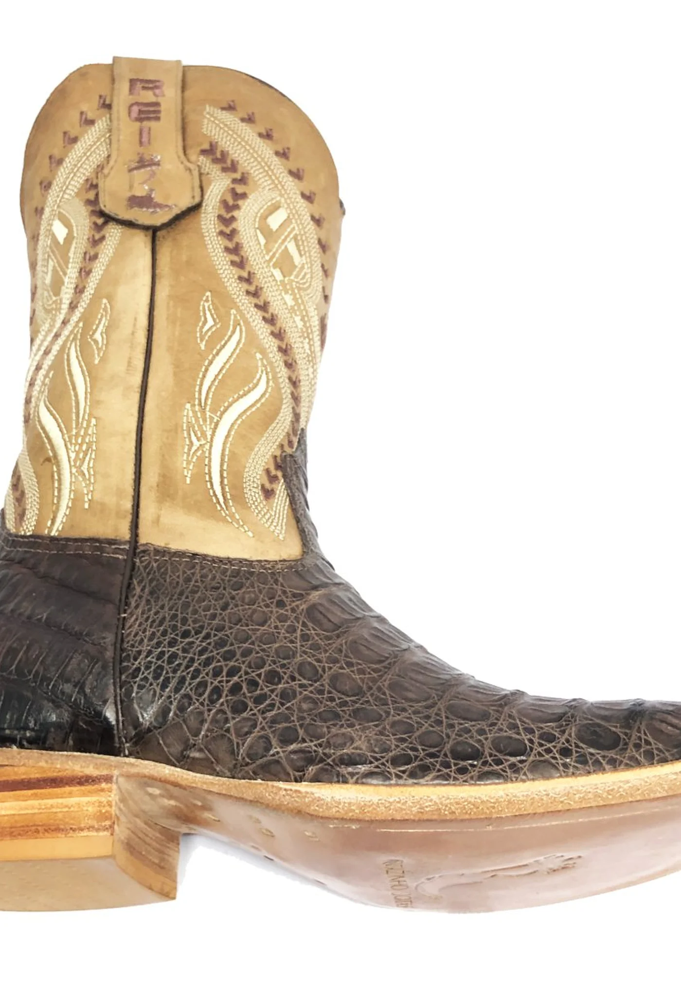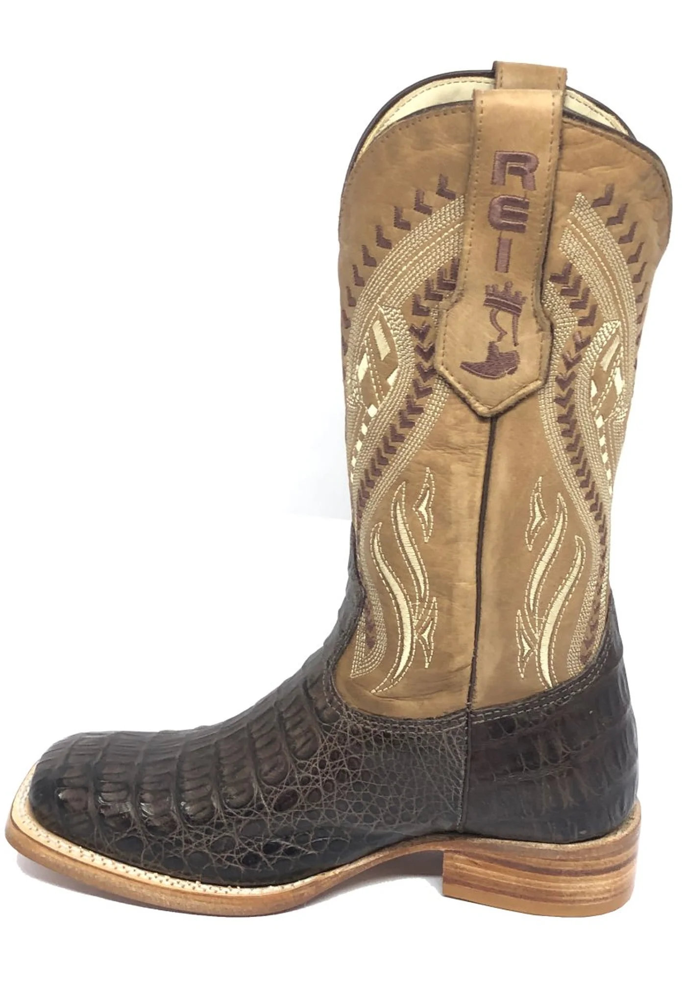 Bota Texana de Couro de Jacaré Marrom | Cano Alto Marrom Old | Bordado “RZ027” | Reizinho Botas
