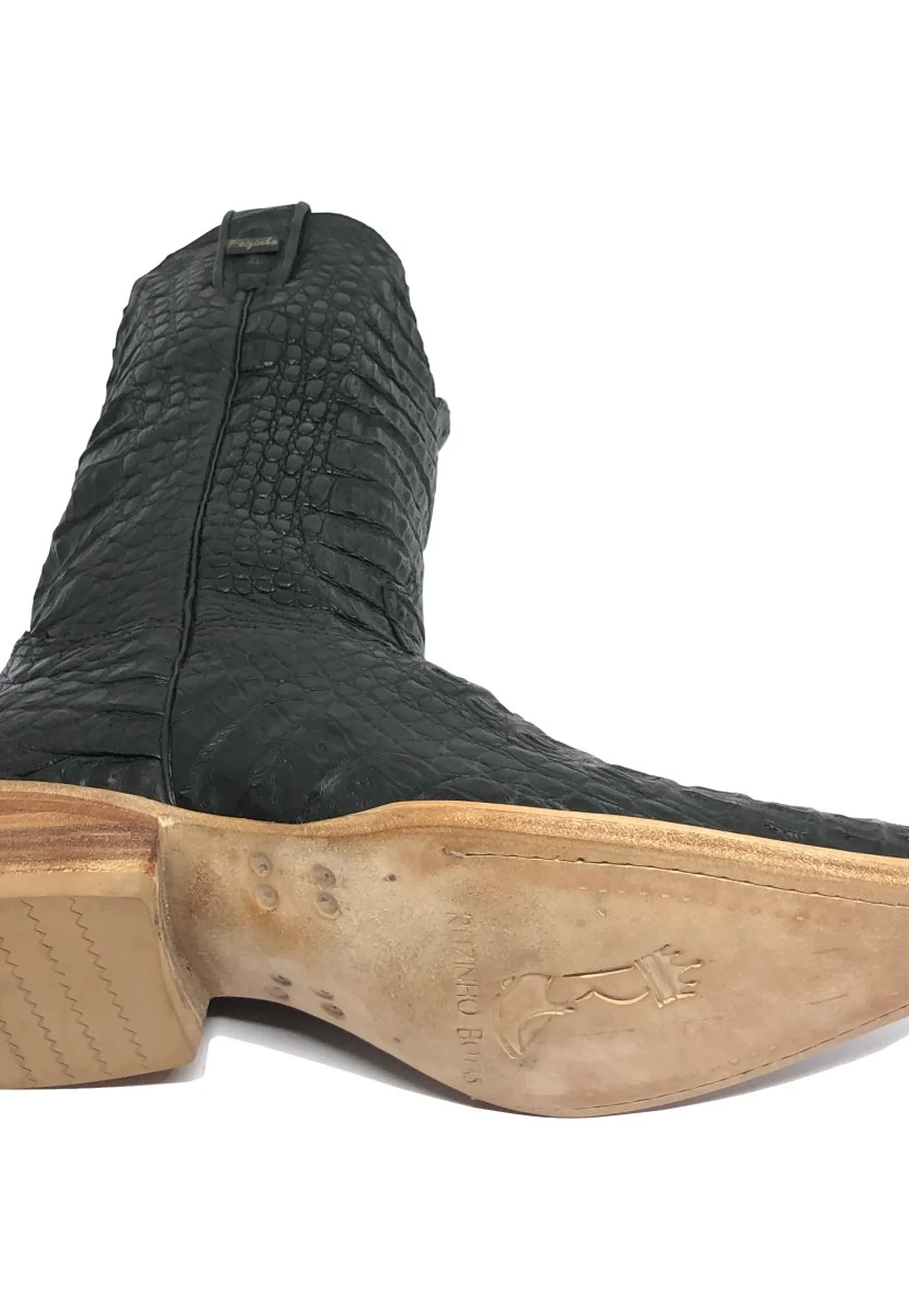 Ao contrário das botas tradicionais, onde o couro de jacaré é reservado apenas para a parte do pé, a Reizinho Botas subverte essa norma e leva o conceito de exclusividade a um nível totalmente novo. O modelo é confeccionado inteiramente em couro de jacaré, um material raro e cobiçado, que traz consigo não só uma aparência imponente e sofisticada, mas também uma durabilidade única, capaz de resistir ao teste do tempo. Cada escama do couro reflete a arte e a raridade deste material, fazendo com que cada bota se torne uma verdadeira peça de colecionador. A tonalidade preta, profunda e envolvente, infunde à peça uma aura de mistério e riqueza que é impossível de ignorar, tornando-a uma expressão verdadeira de poder e distinção.