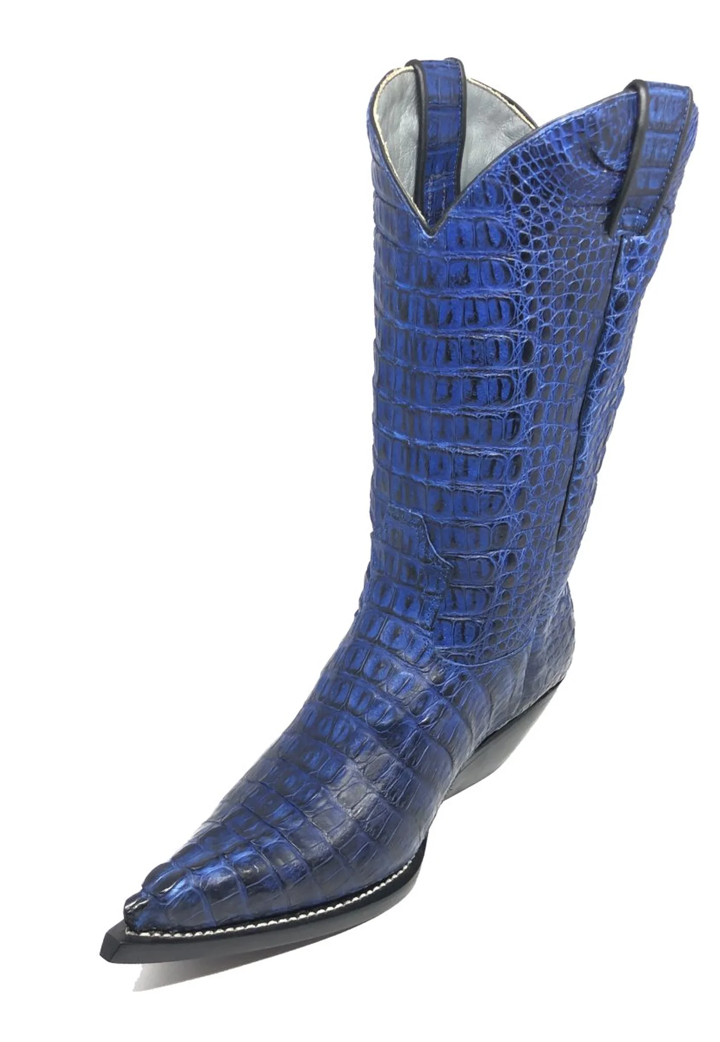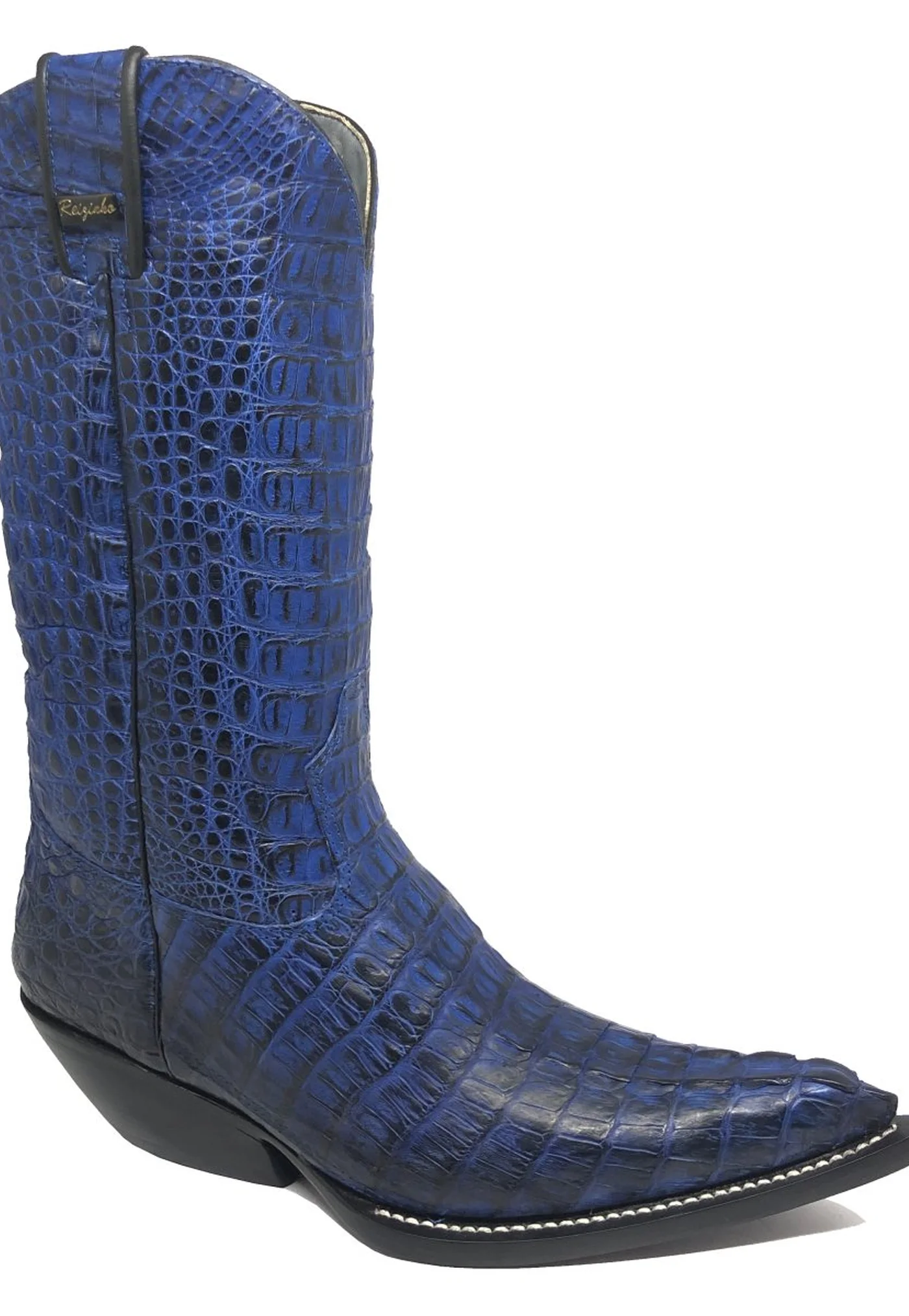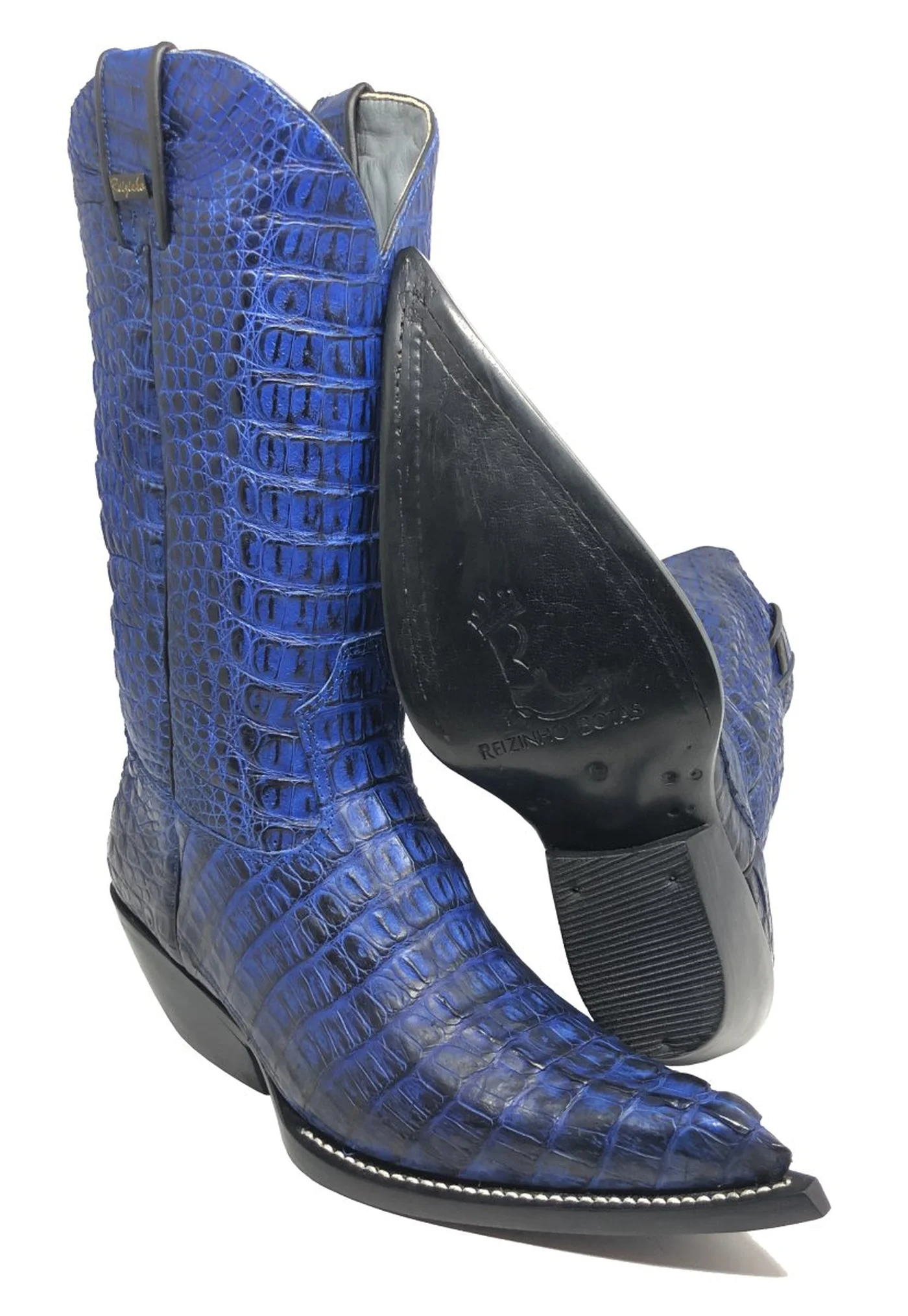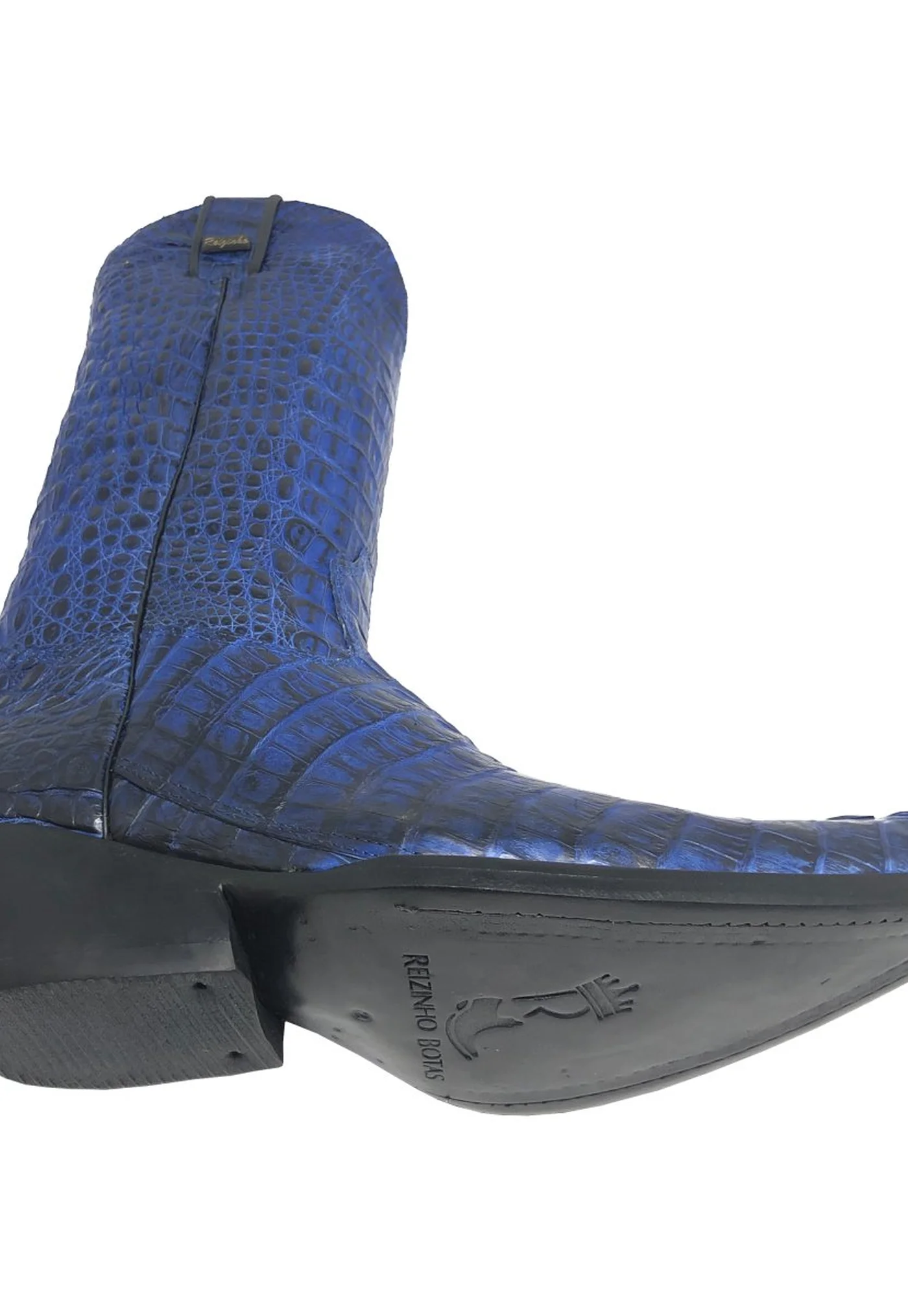 BOTA REIZINHO PREMIUM DE COURO DE JACARÉ DARKNESS BLUE RABO LIMITED EDITION - CANO ALTO, BICO FINO, SOLADO DE COURO ARTESANAL