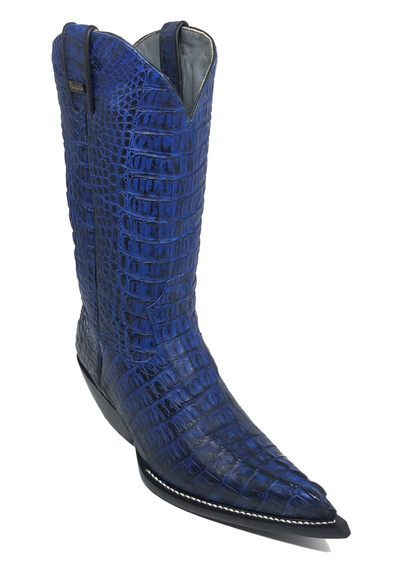 Bota Premium Couro De Jacaré Darkness Blue Rabo Limited Edition - Cano Alto, Bico Fino, Solado De Couro Artesanal