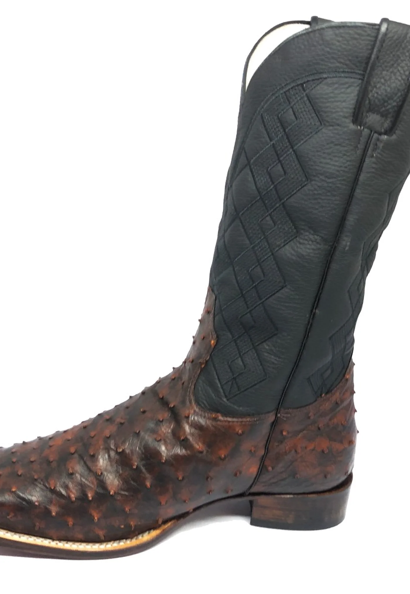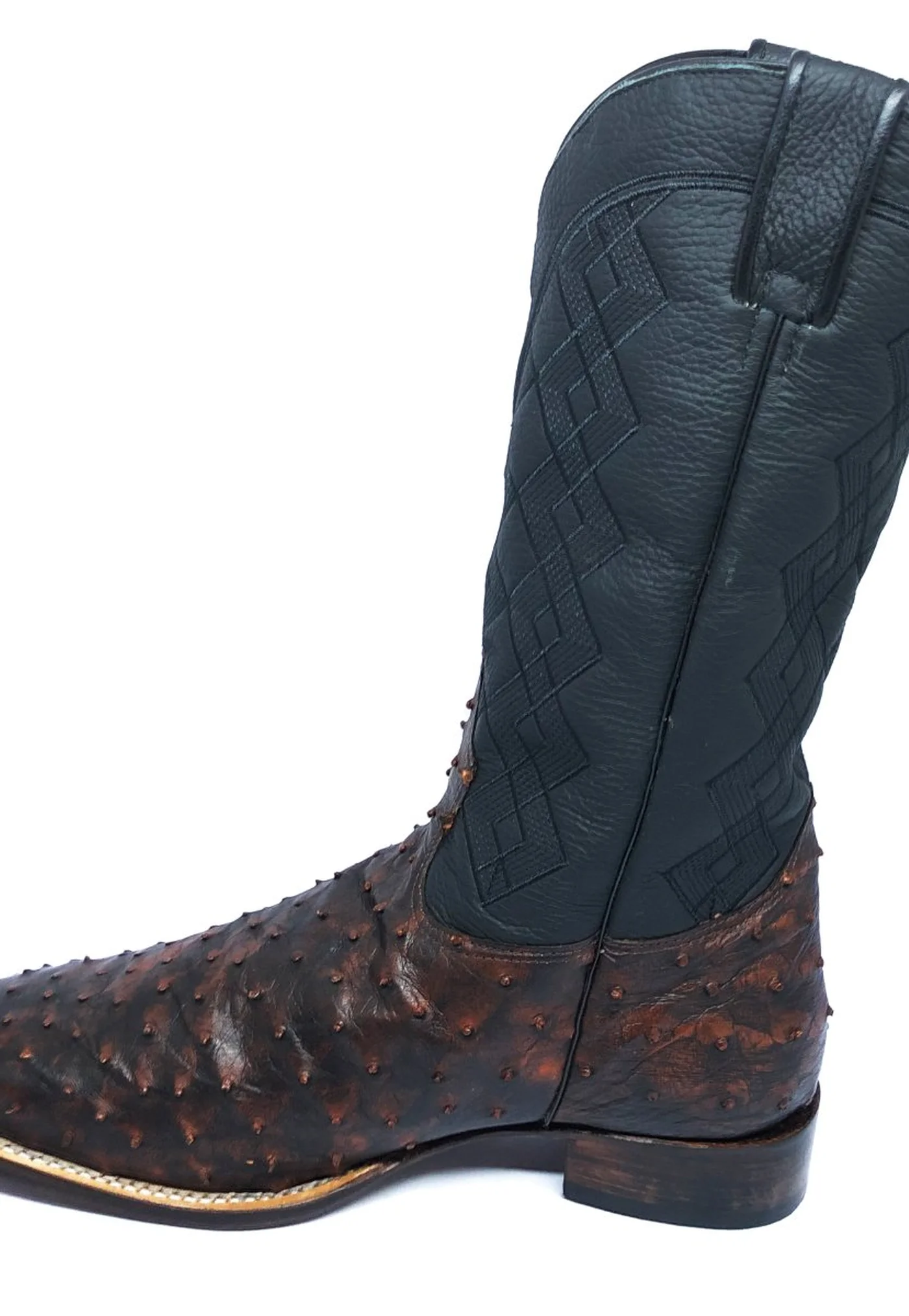 Bota De Couro De Avestruz Cheio BloodWine - CANO ALTO, BICO QUADRADO, SOLADO DE COURO ARTESANAL