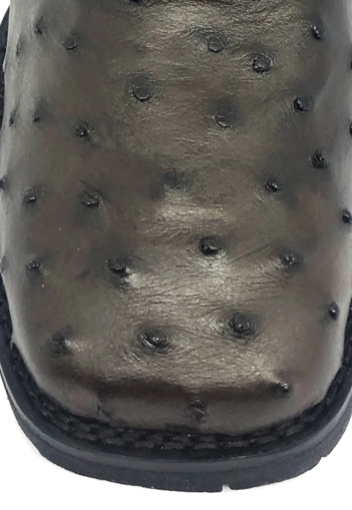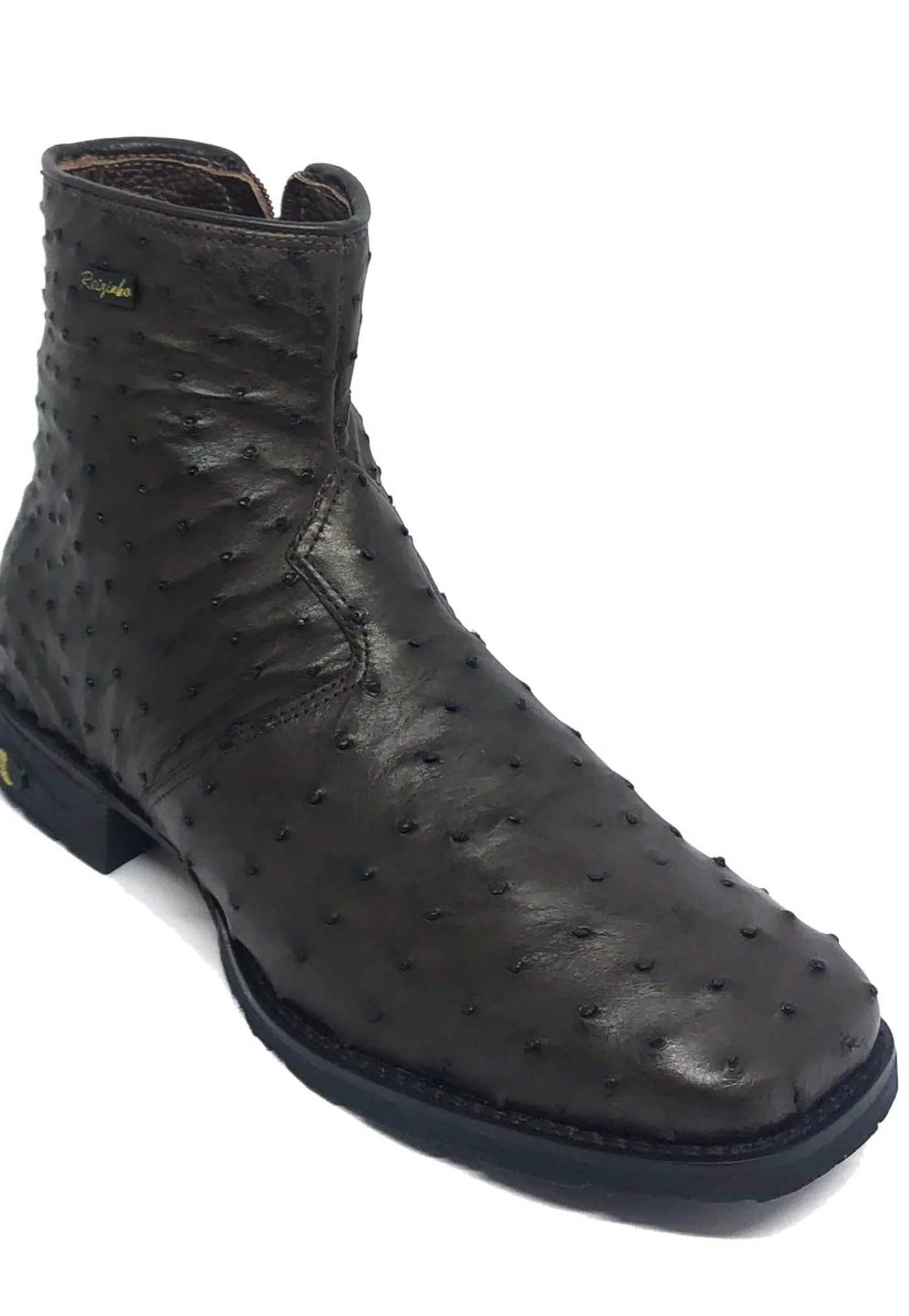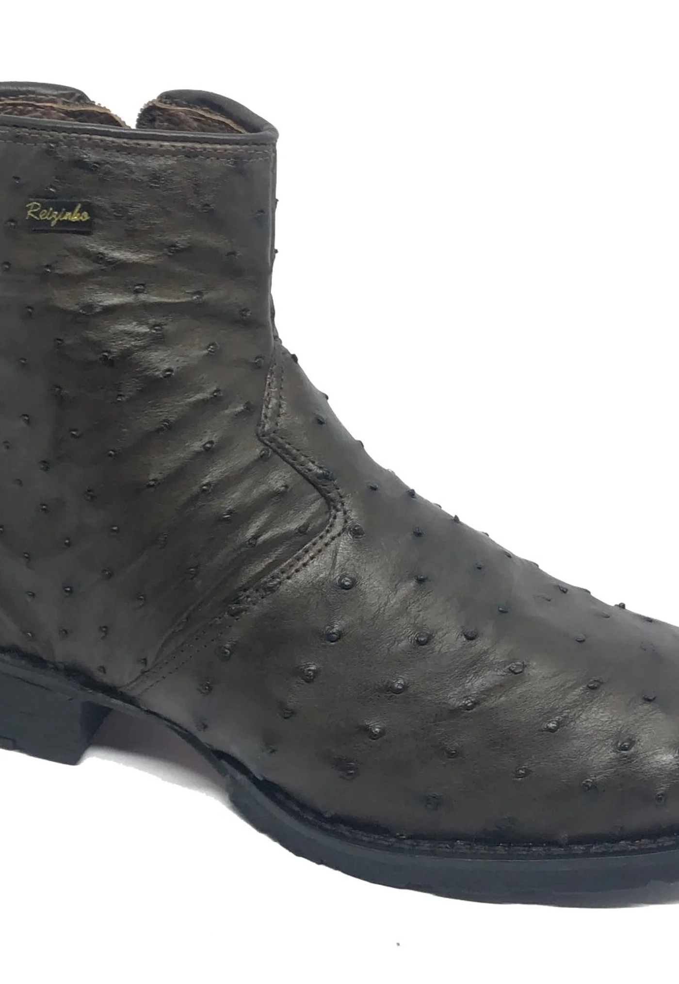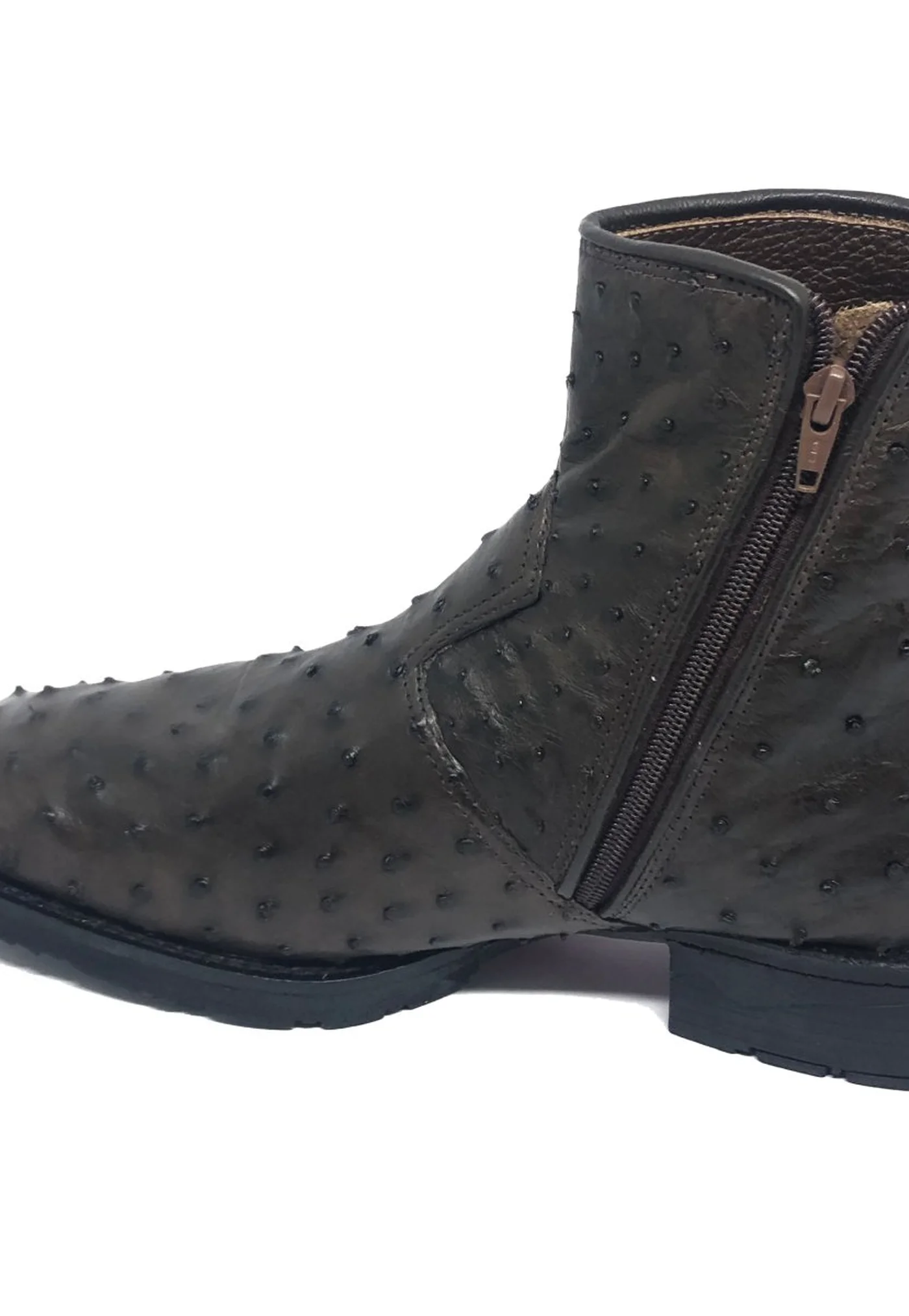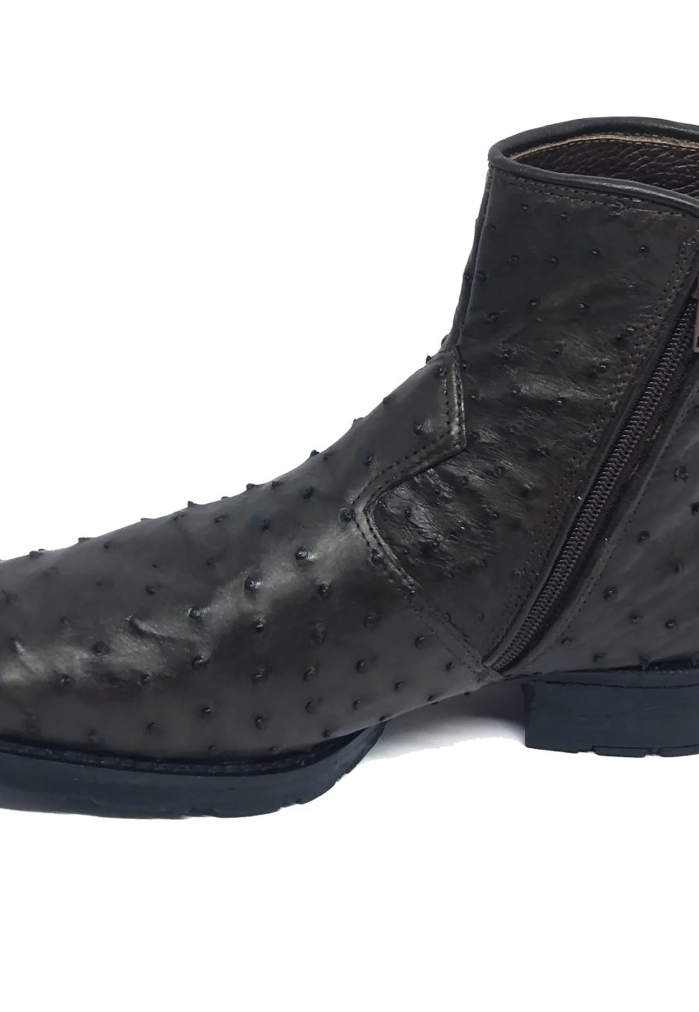 Bota de Couro de Avestruz Cheio Marrom Café - Cano Curto, Bico Quadrado, SOLADO FLEX COMFORT