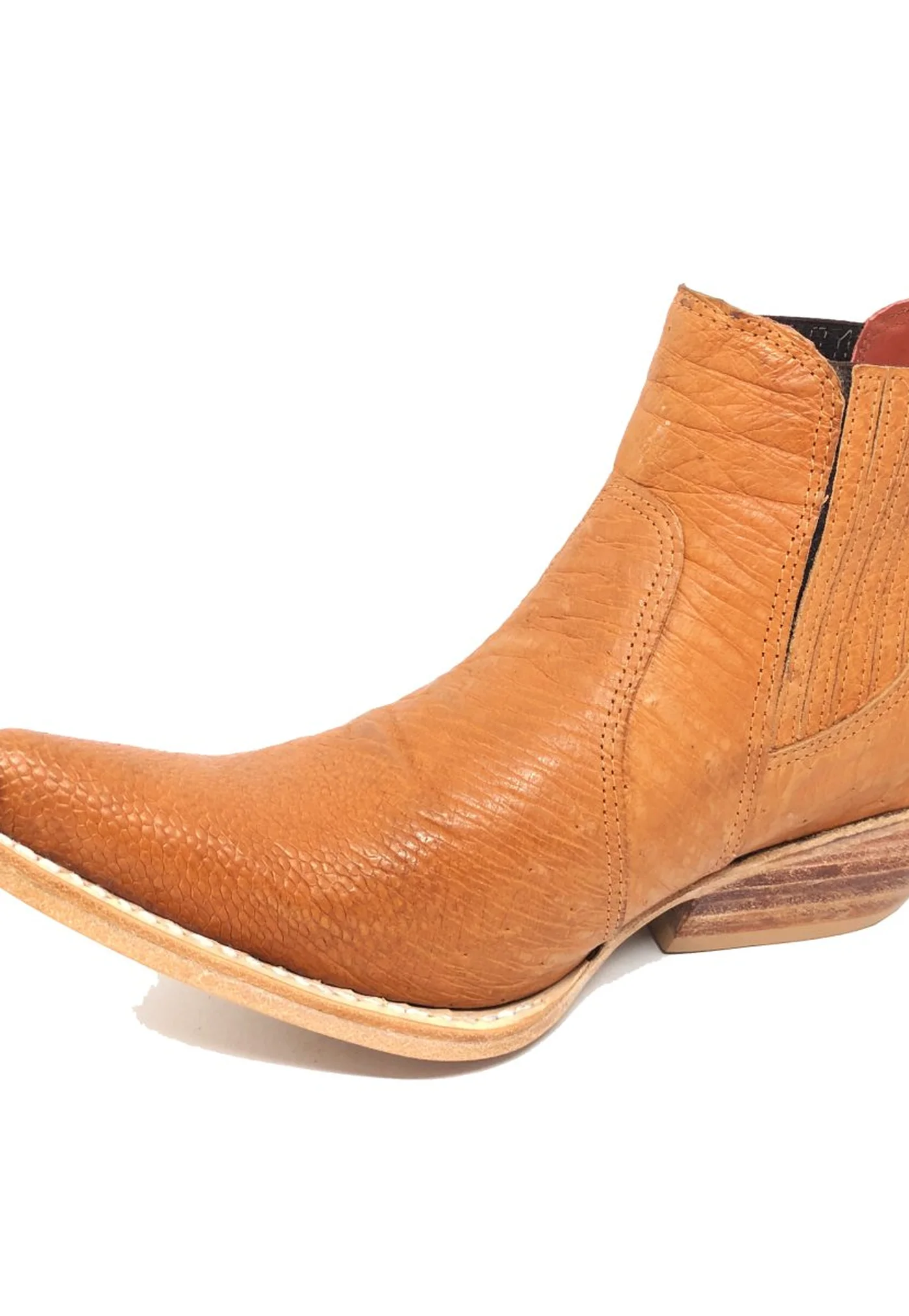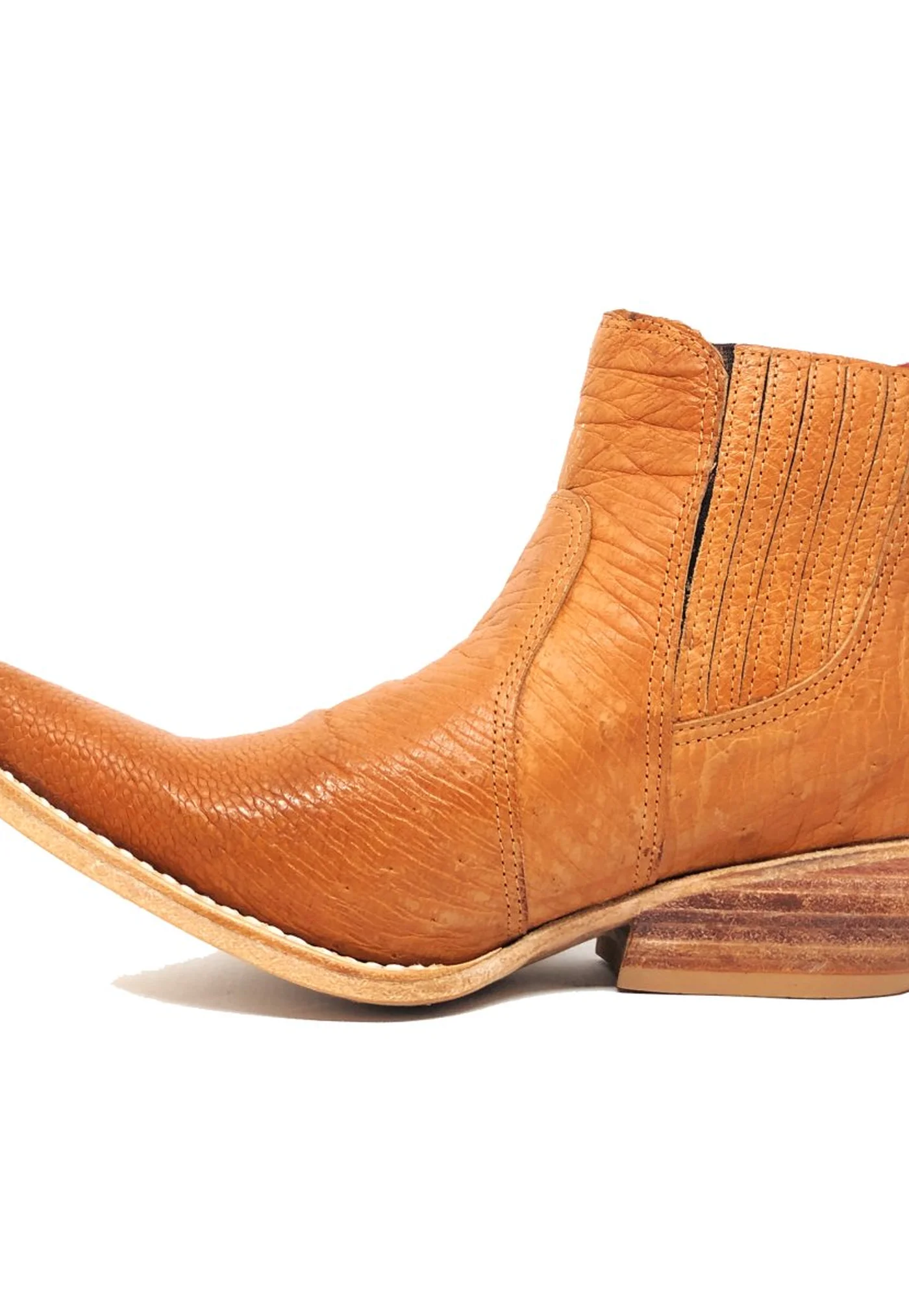 Bota De Couro Barriga de Avestruz Laranja - Cano Curto de Elástico, Bico Fino Inclinado, SOLADO DE COURO ARTESANAL