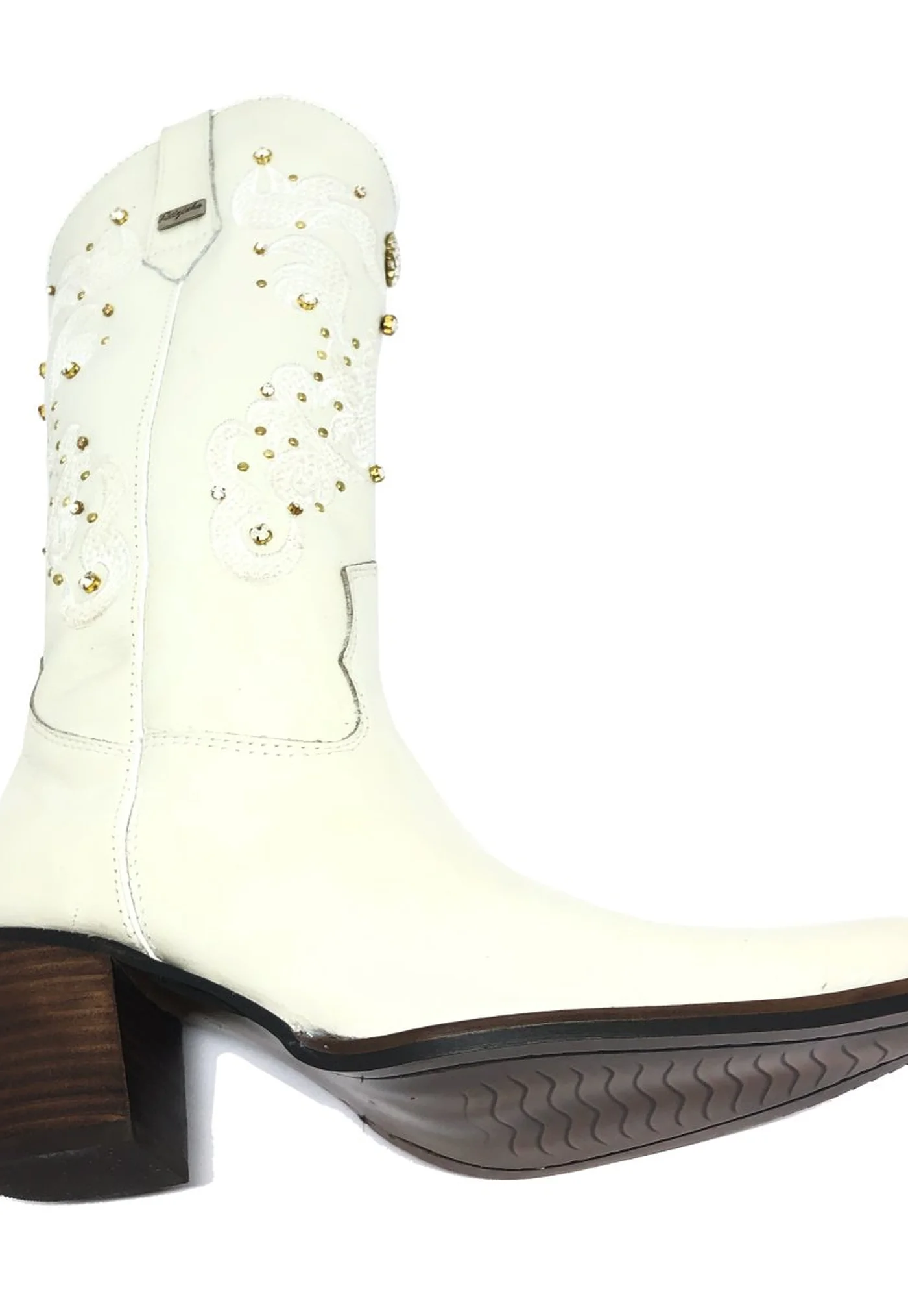 BOTA REIZINHO PREMIUM FEMININA DE COURO BOVINO BEGE OFF WHITE LIMITED EDITION - CANO ALTO, BICO FINO