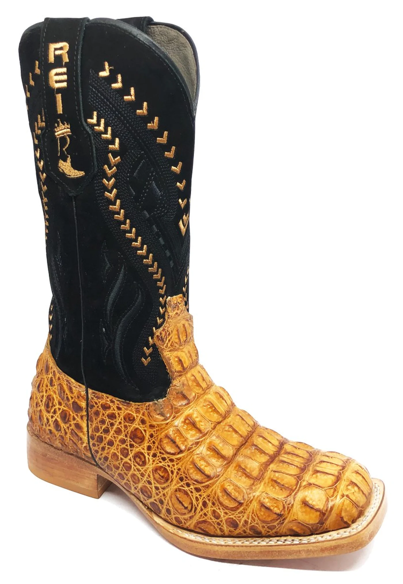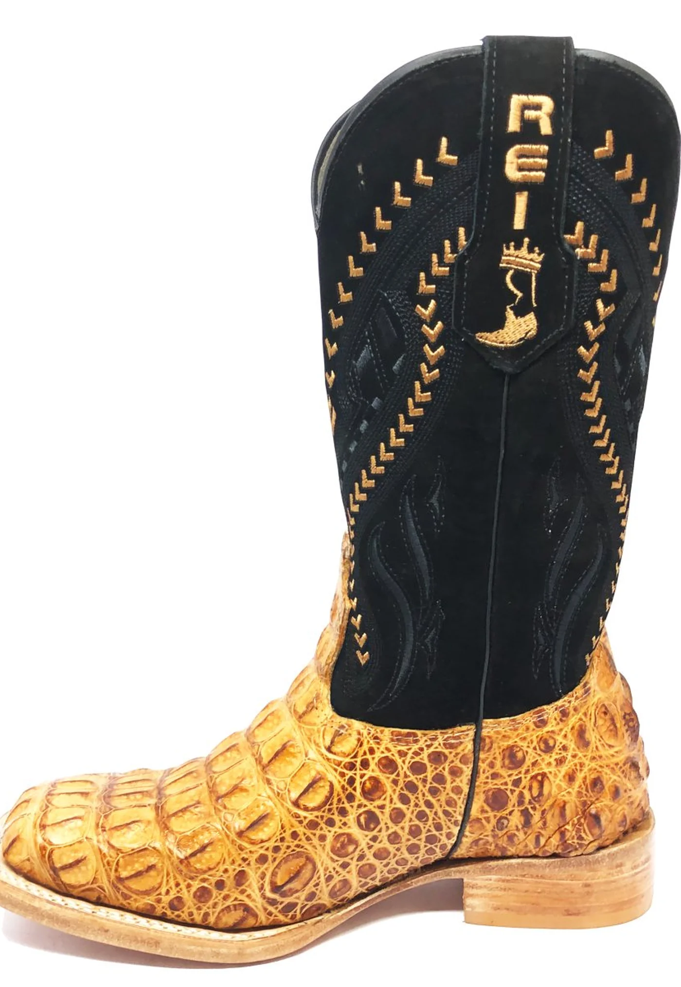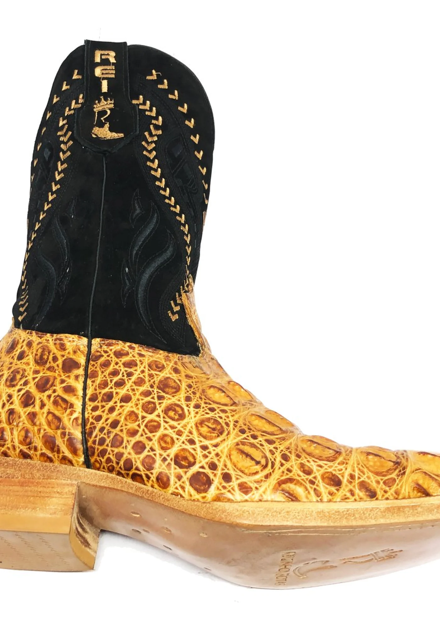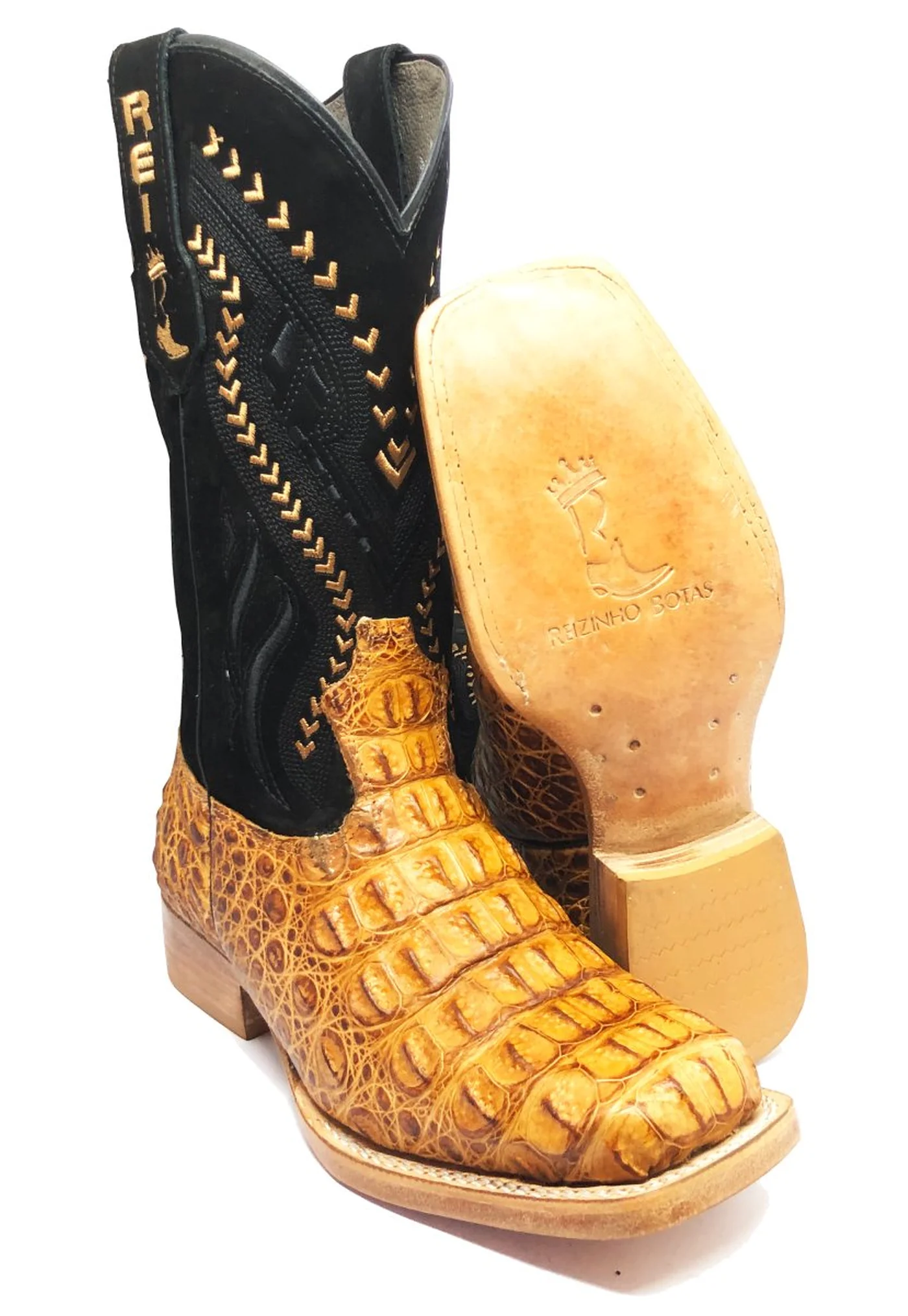 Bota Reizinho Premium Couro De Jacaré Havana Limited Edition - Cano Alto, Bico Quadrado, Solado De Couro Artesanal