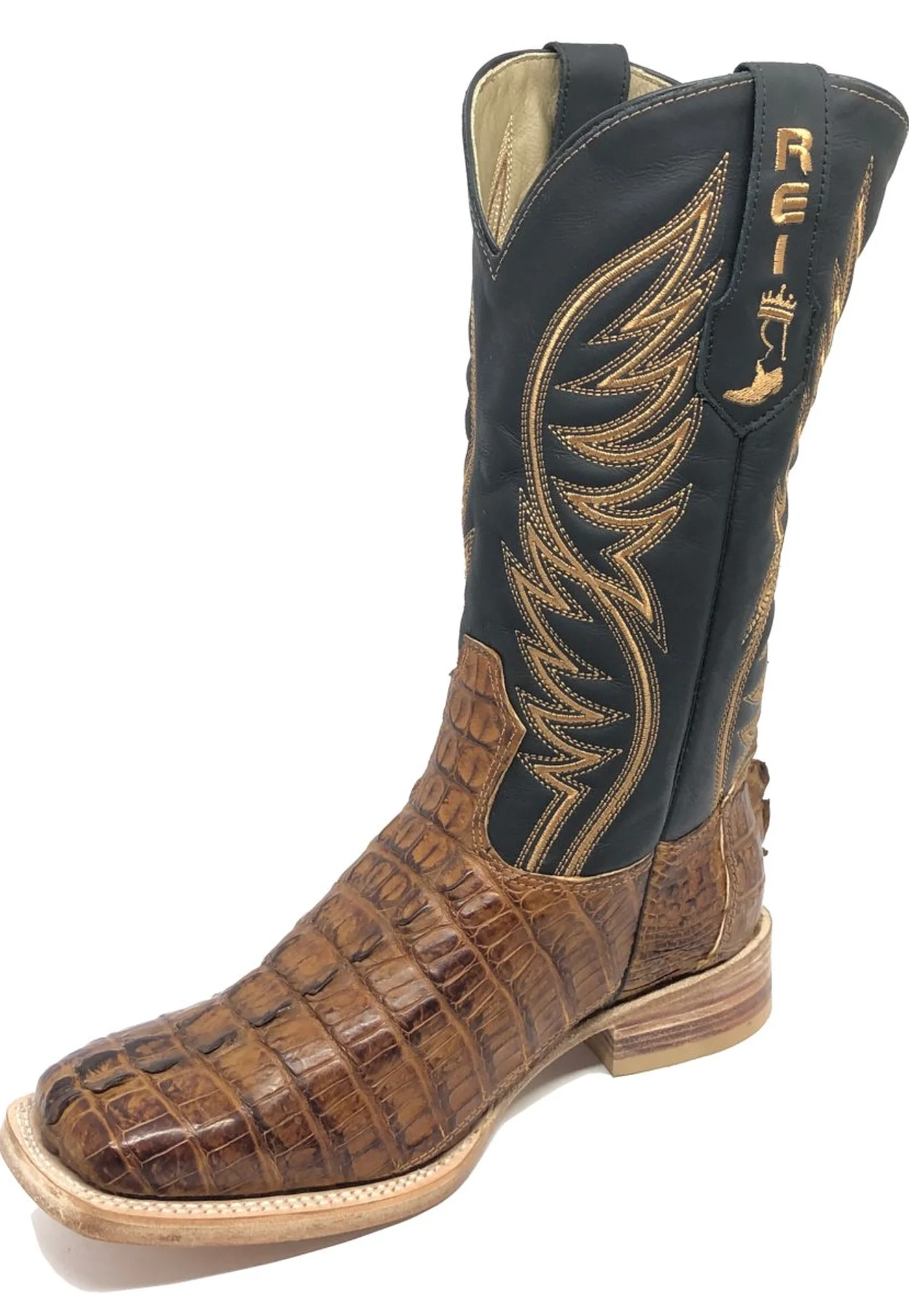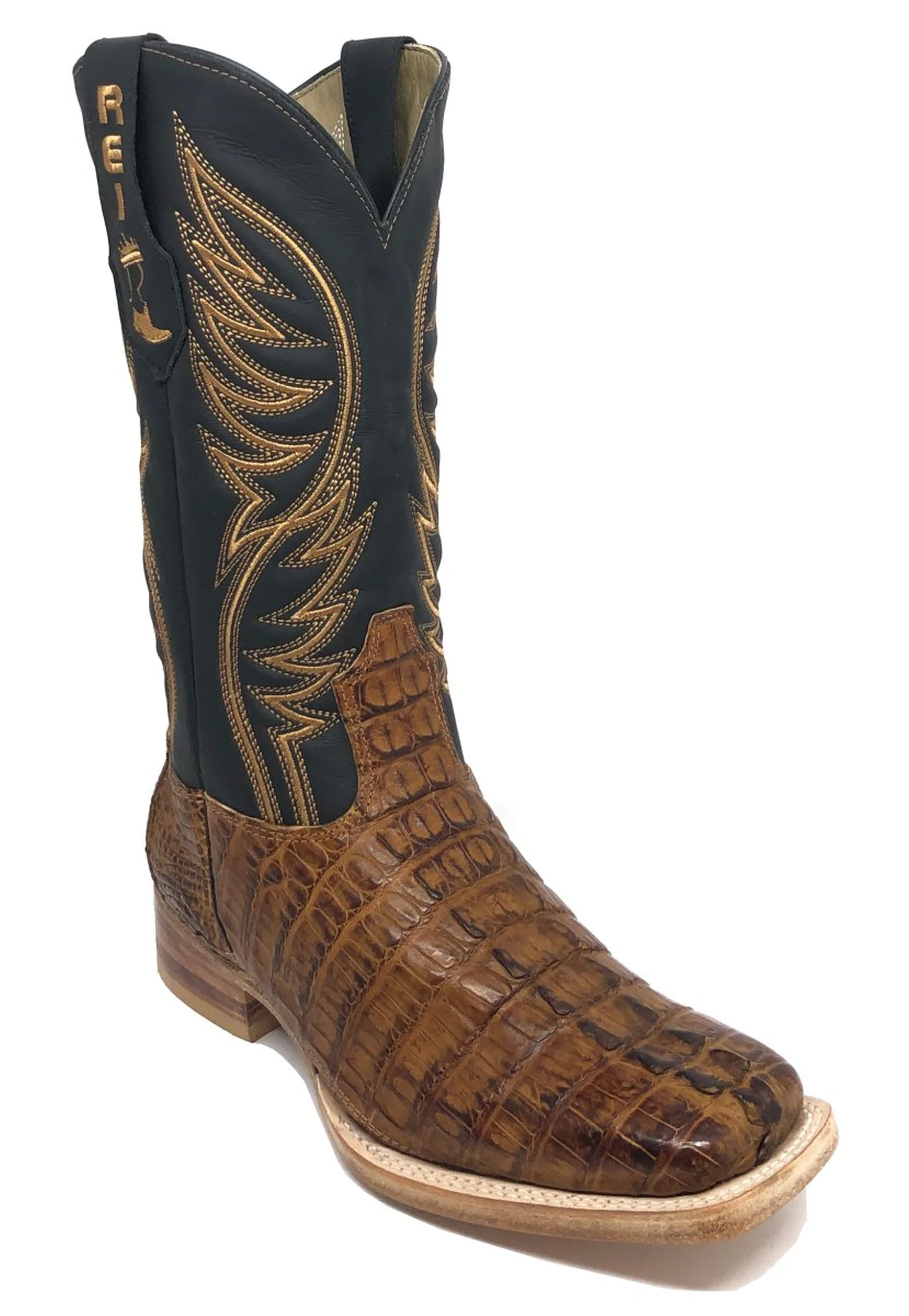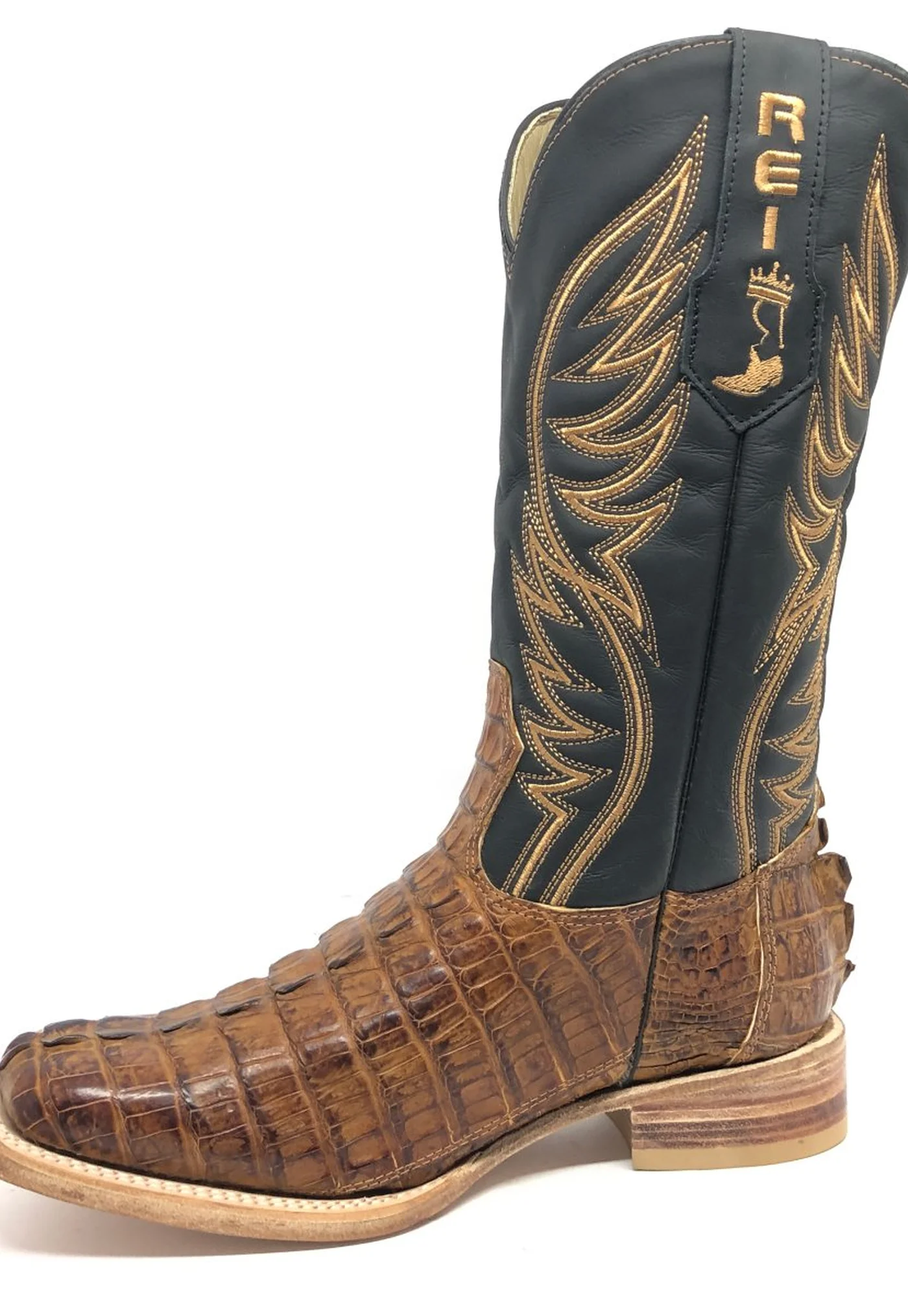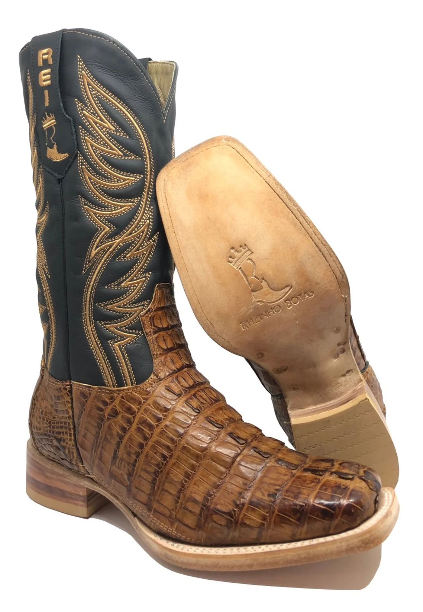Bota Reizinho Premium Couro De Jacaré Havana Rabo Limited Edition - Cano Alto, Bico Quadrado, Solado De Couro Artesanal