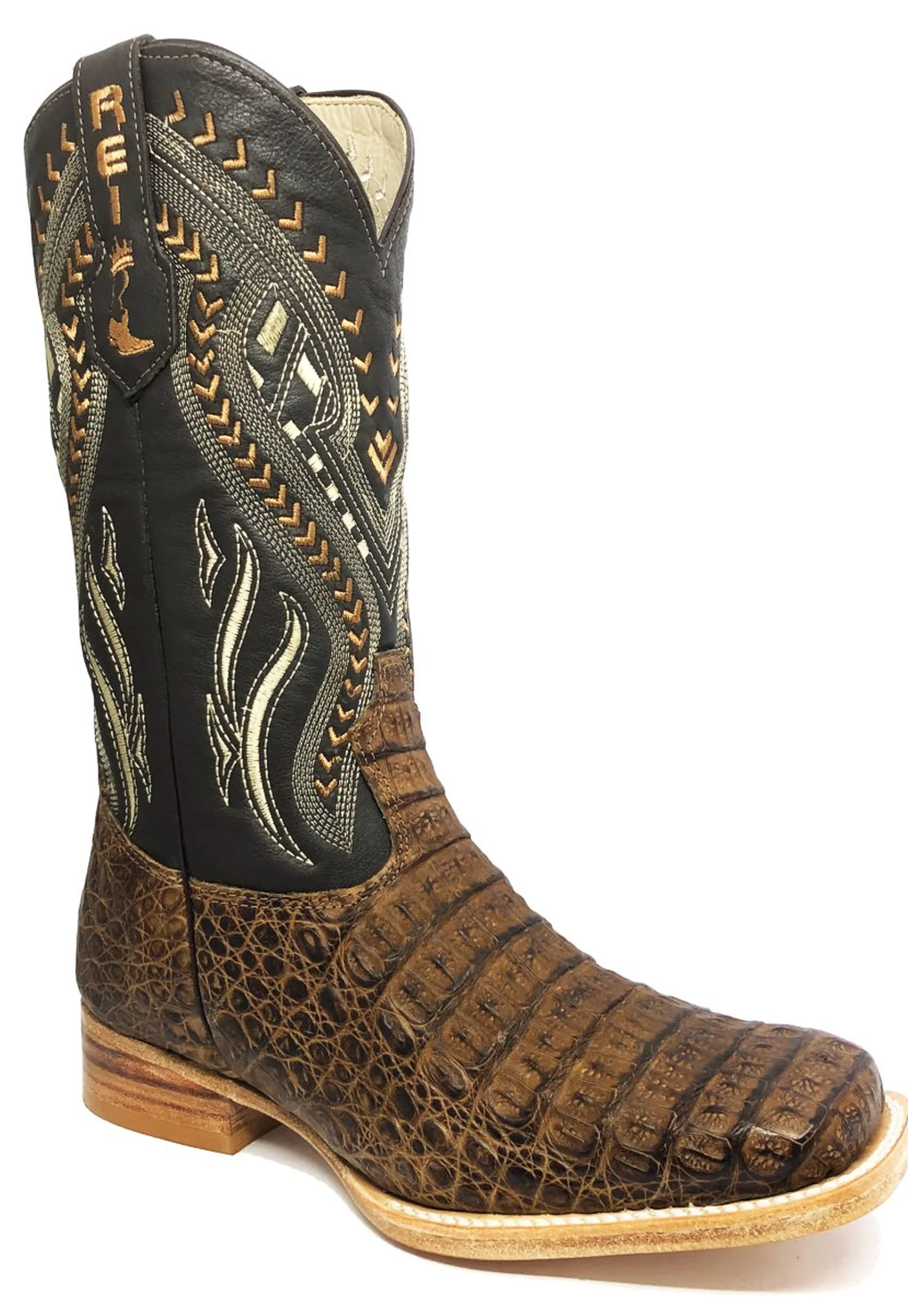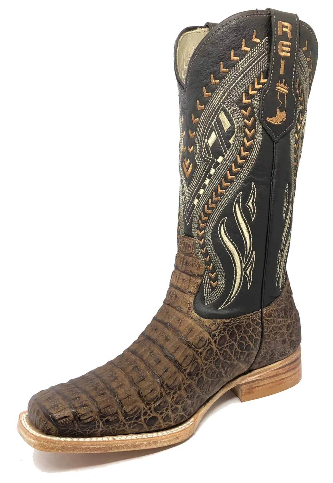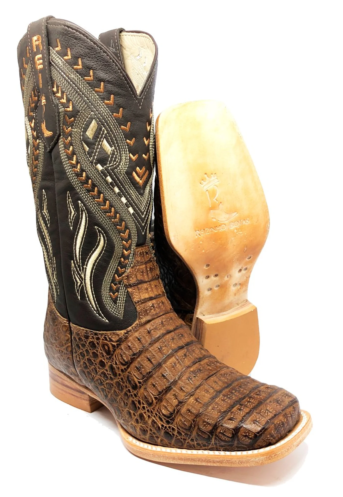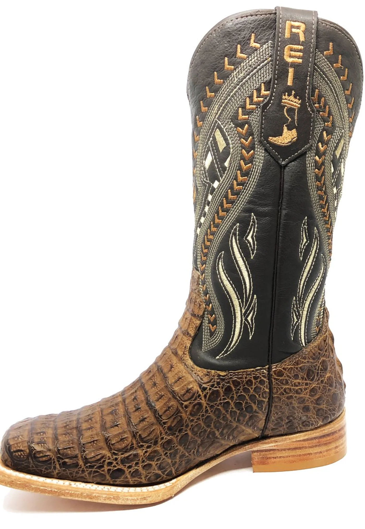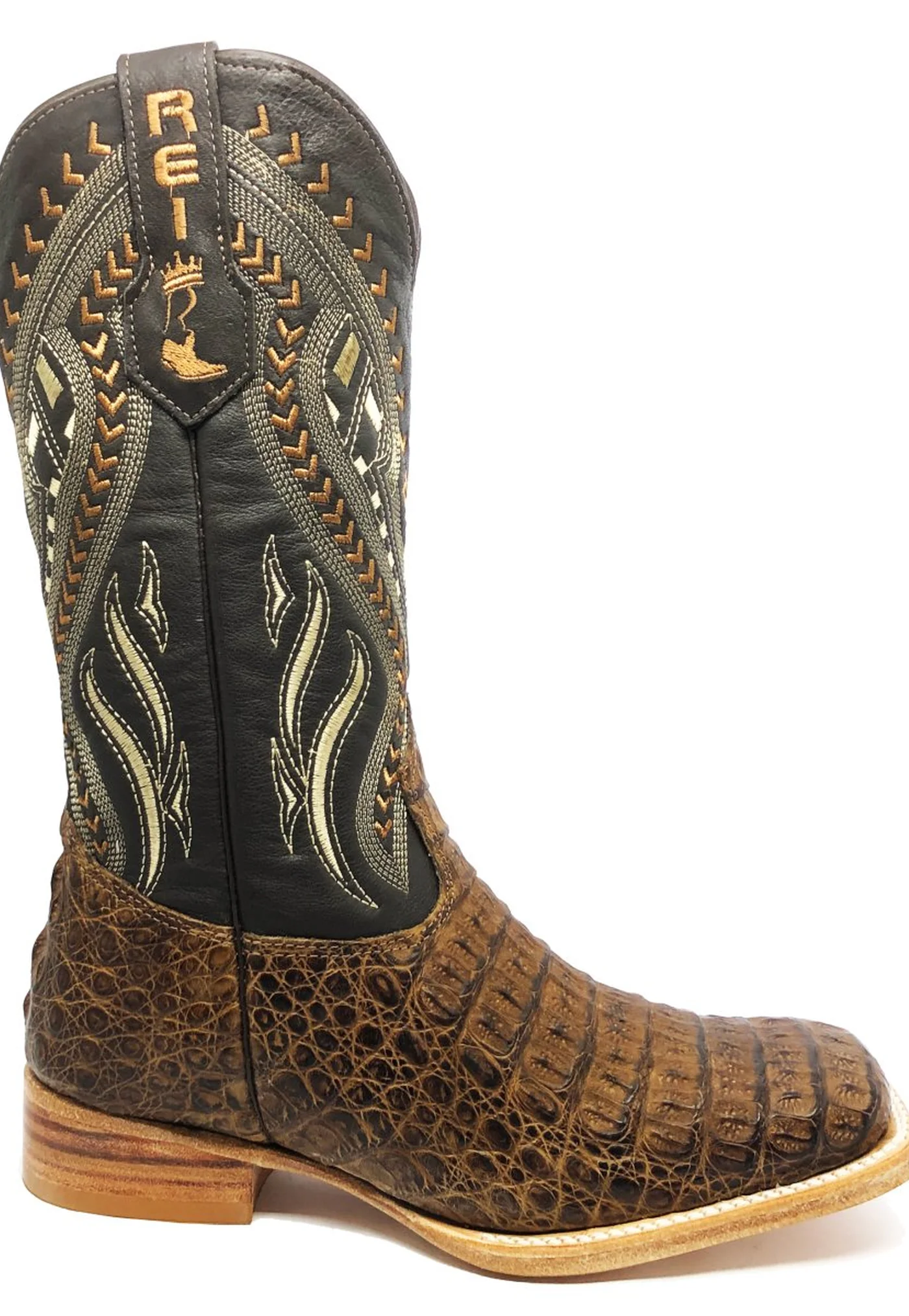 Bota Reizinho Premium Couro De Jacaré Tabaco Limited Edition - Cano Alto, Bico Quadrado, Solado De Couro Artesanal