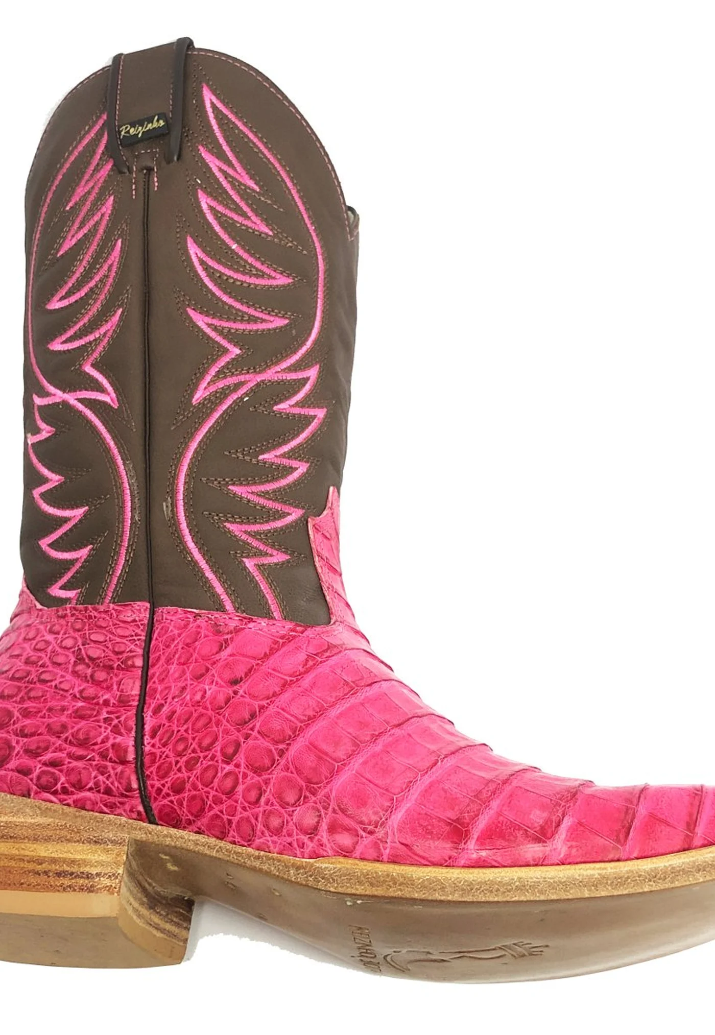 Bota Reizinho Premium Couro De Jacaré Rosa Pink Limited Edition - Cano Alto, Bico Quadrado, Solado De Couro Artesanal