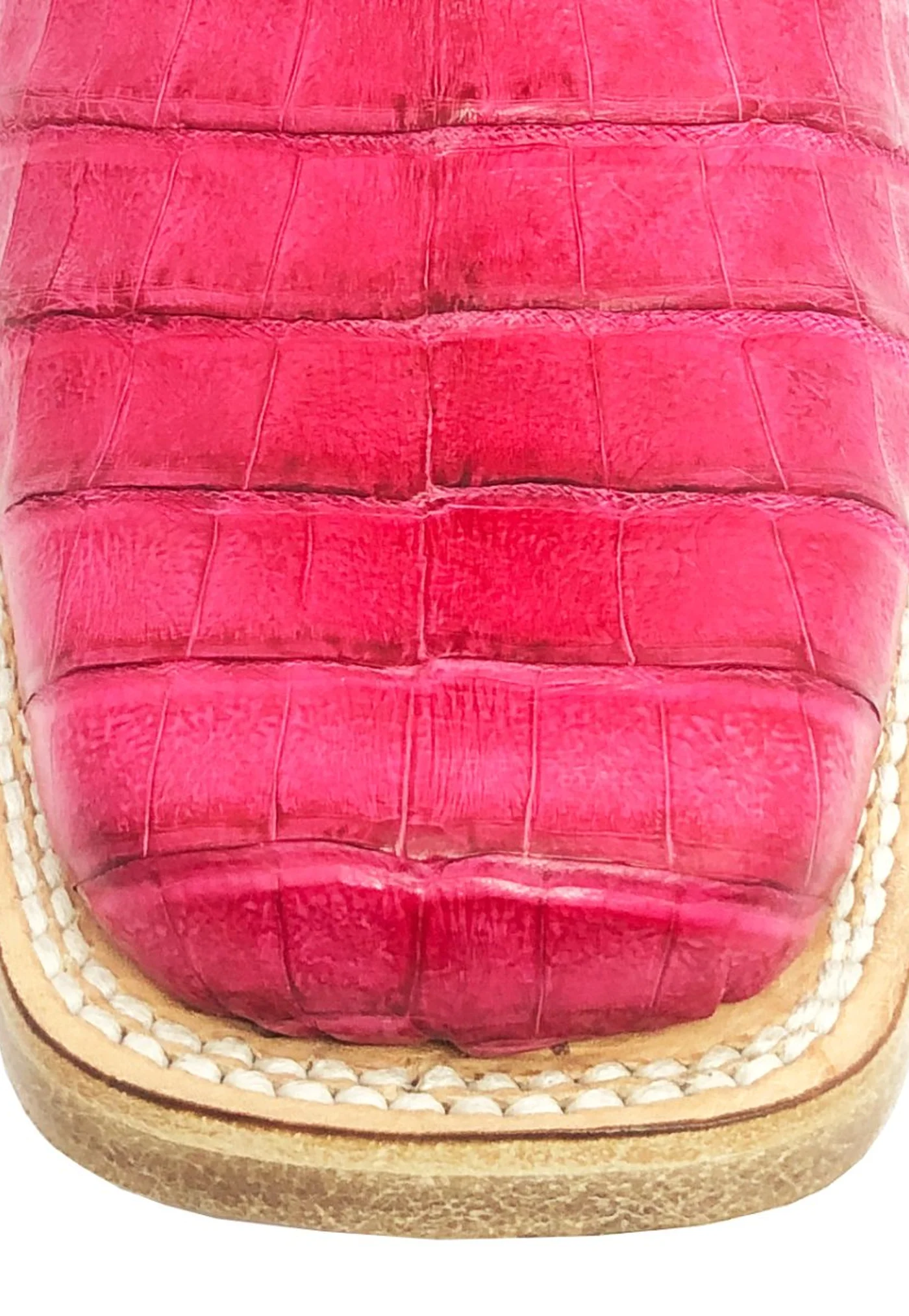 BOTA REIZINHO PREMIUM DE COURO DE JACARÉ ROSA PINK LIMITED EDITION - CANO ALTO, BICO QUADRADO, SOLADO DE COURO ARTESANAL