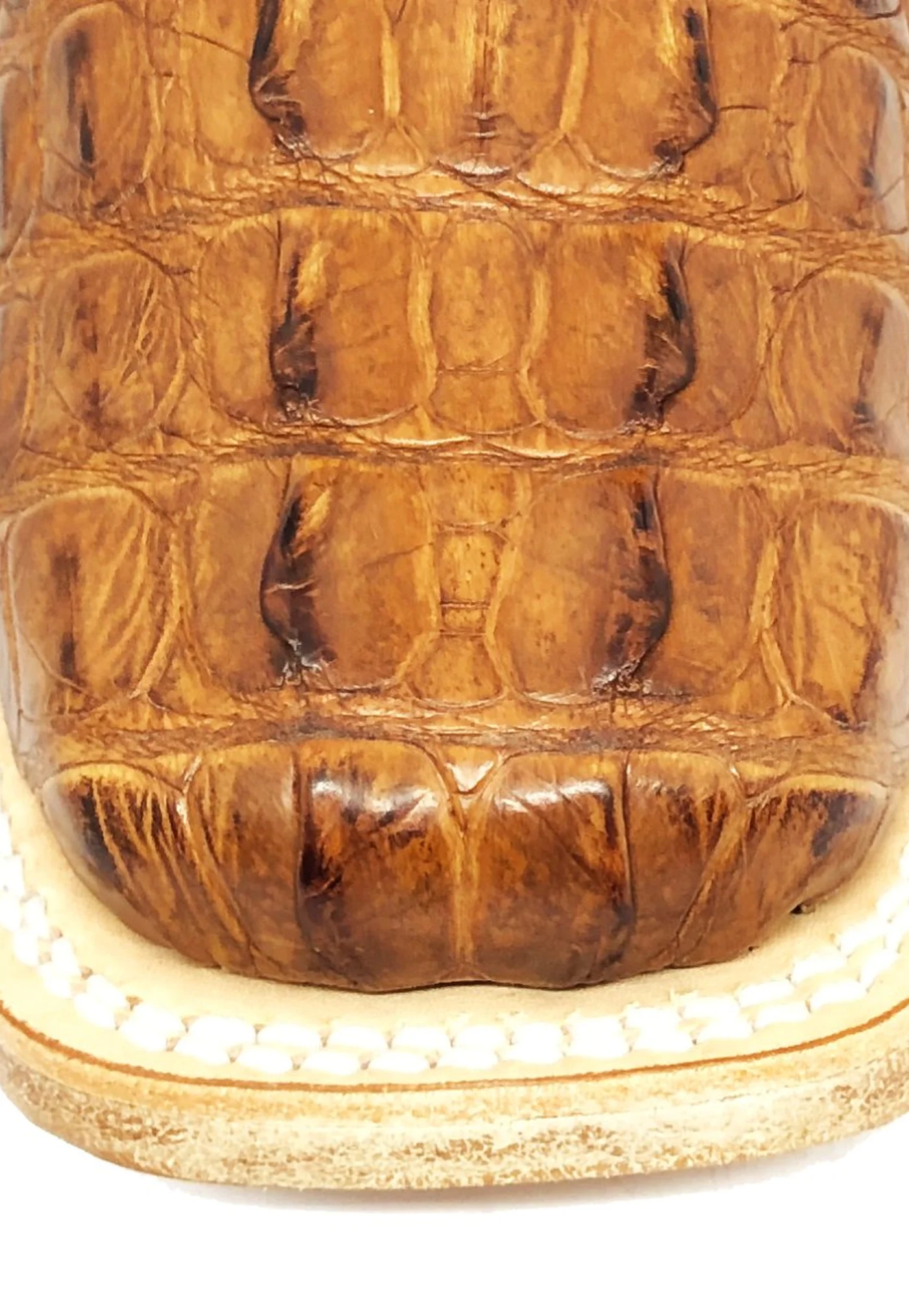 Explore a singularidade com a Bota Artesanal de Jacaré na Cor Havana, confeccionada com o refinado couro da parte do Rabo do Jacaré, da linha Reizinho Premium. Cada par é verdadeiramente único, fabricado artesanalmente para proporcionar a mais alta qualidade e conforto disponíveis no mercado.