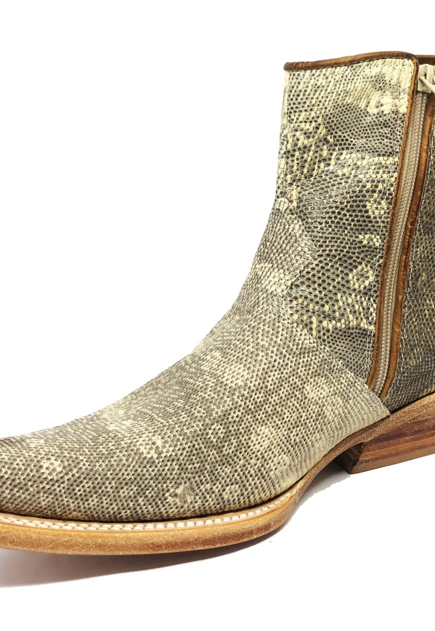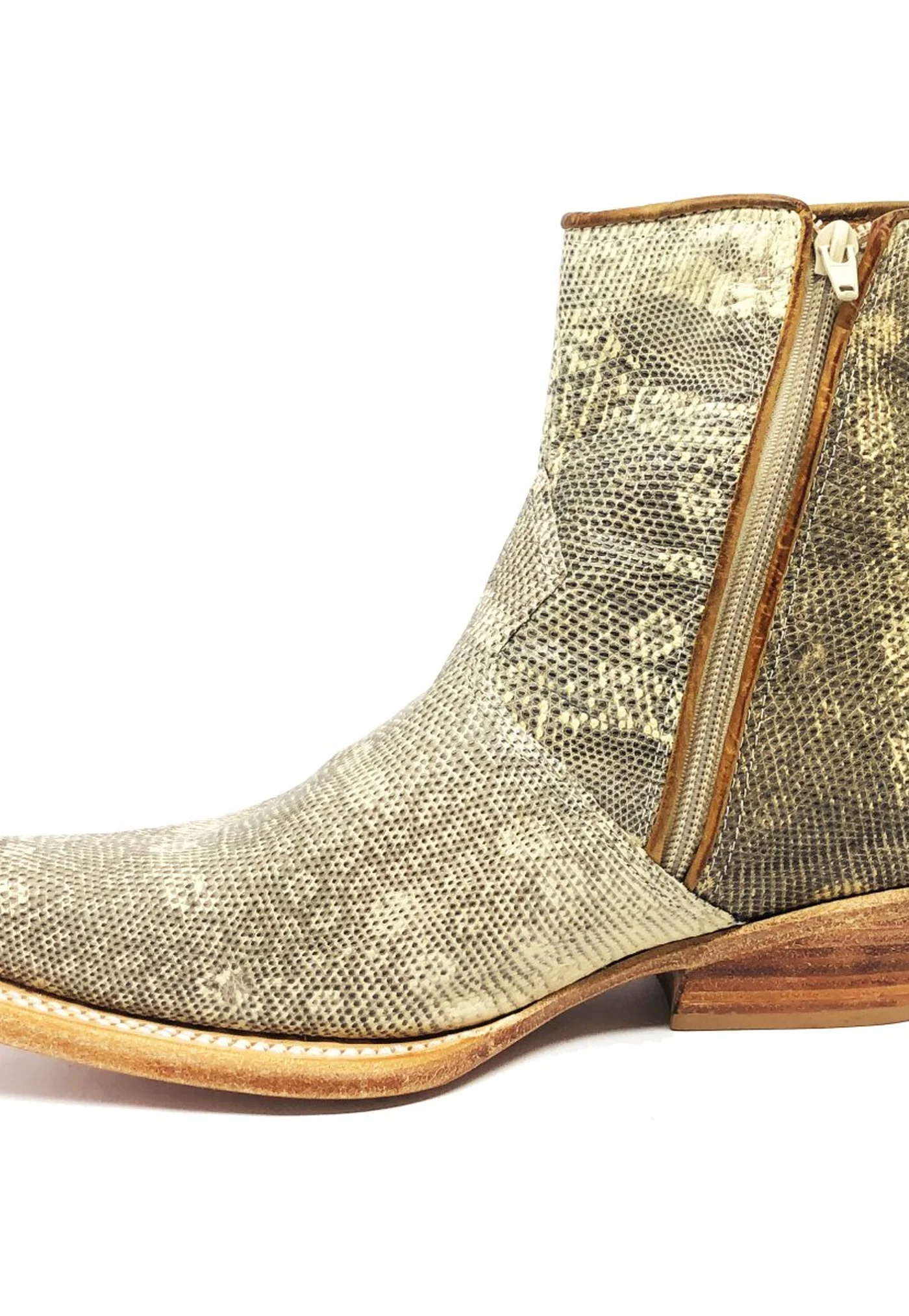 BOTA REIZINHO PREMIUM DE COURO DE LAGARTO AFRICANO NATURAL LIMITED EDITION- Cano Curto, Bico Fino Quadradinho, Solado de Couro Artesanal