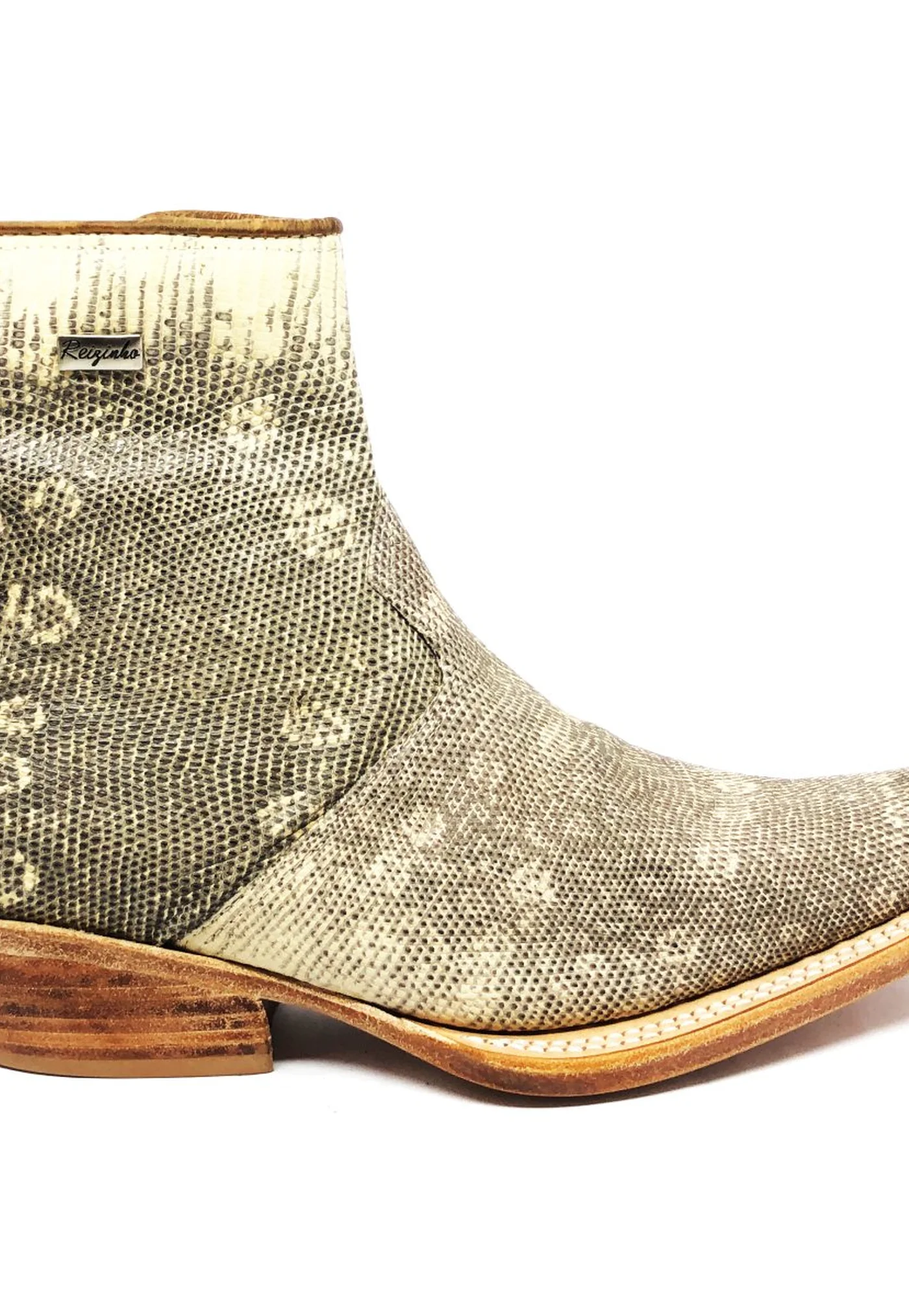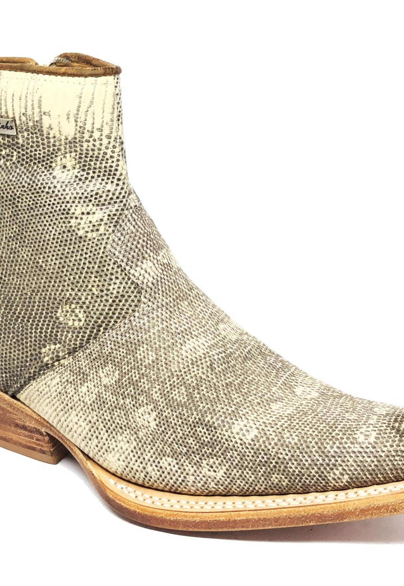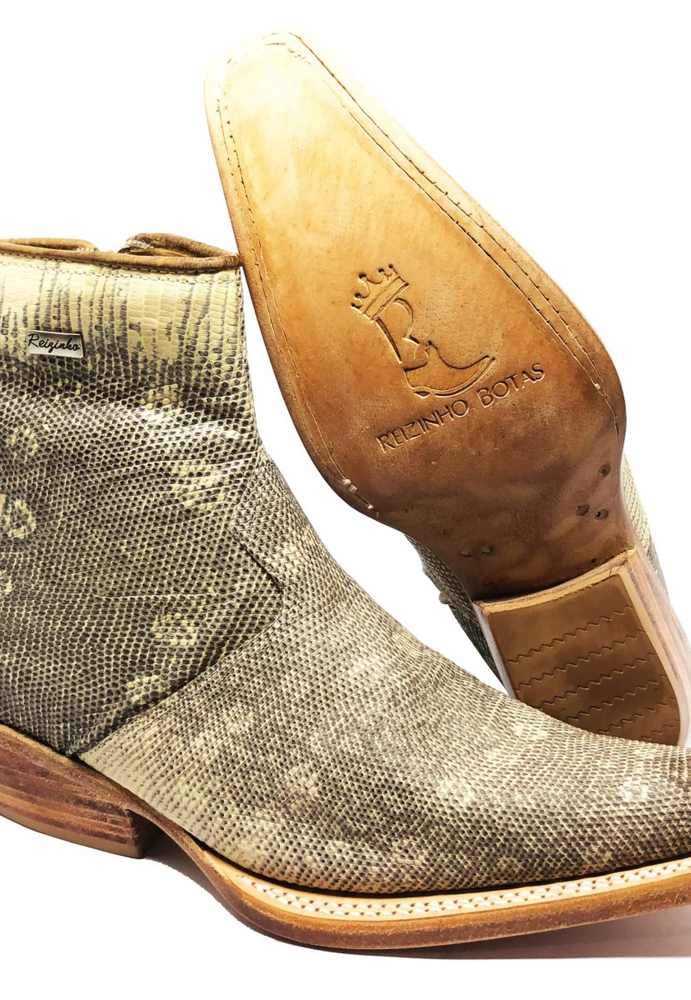 Bota Reizinho Premium Couro De Lagarto Africano Natural Limited Edition - Cano Curto, Bico Fino Quadra, Solado Couro Art
