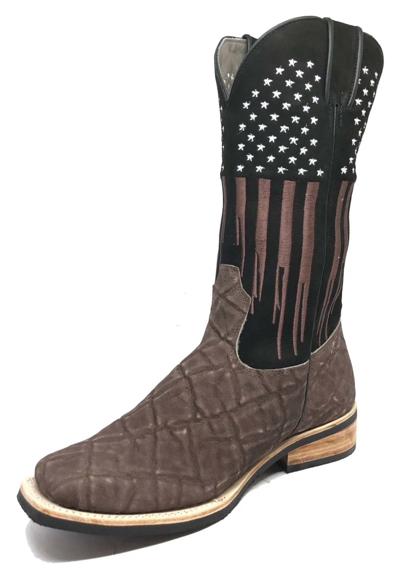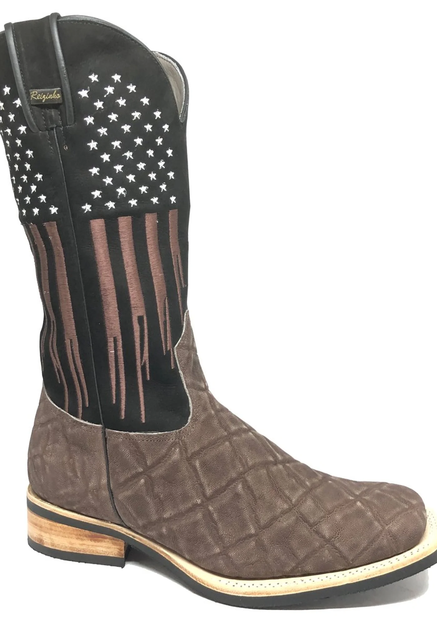 O bordado "JUST USA" no cano adiciona um toque personalizado, celebrando a identidade única do estilo country, com listras marrom em homenagem à cor do elefante e estrelas brancas da bandeira americana. Com um cano de 27 cm, esta bota é projetada para impressionar em qualquer ocasião.