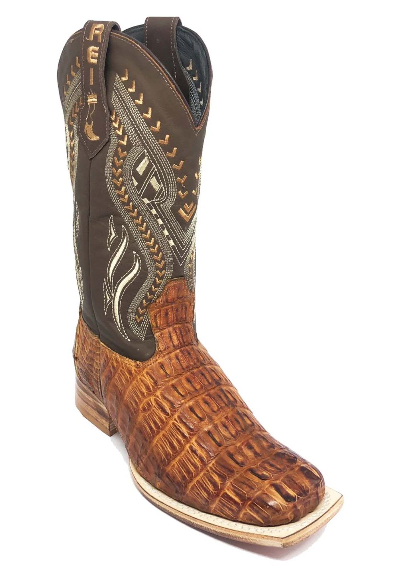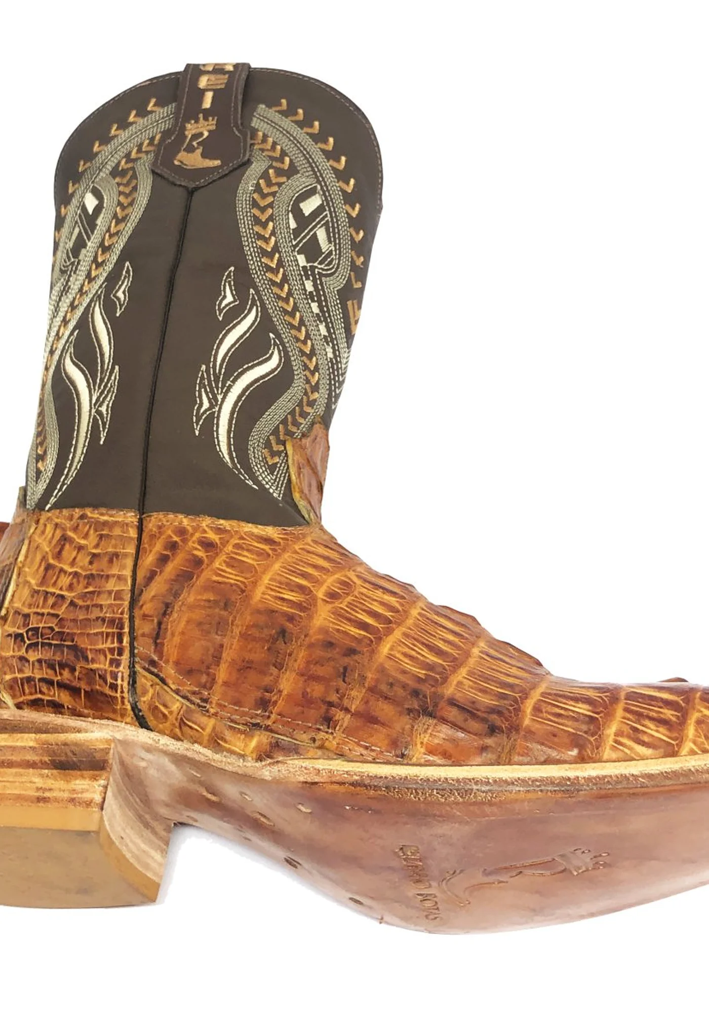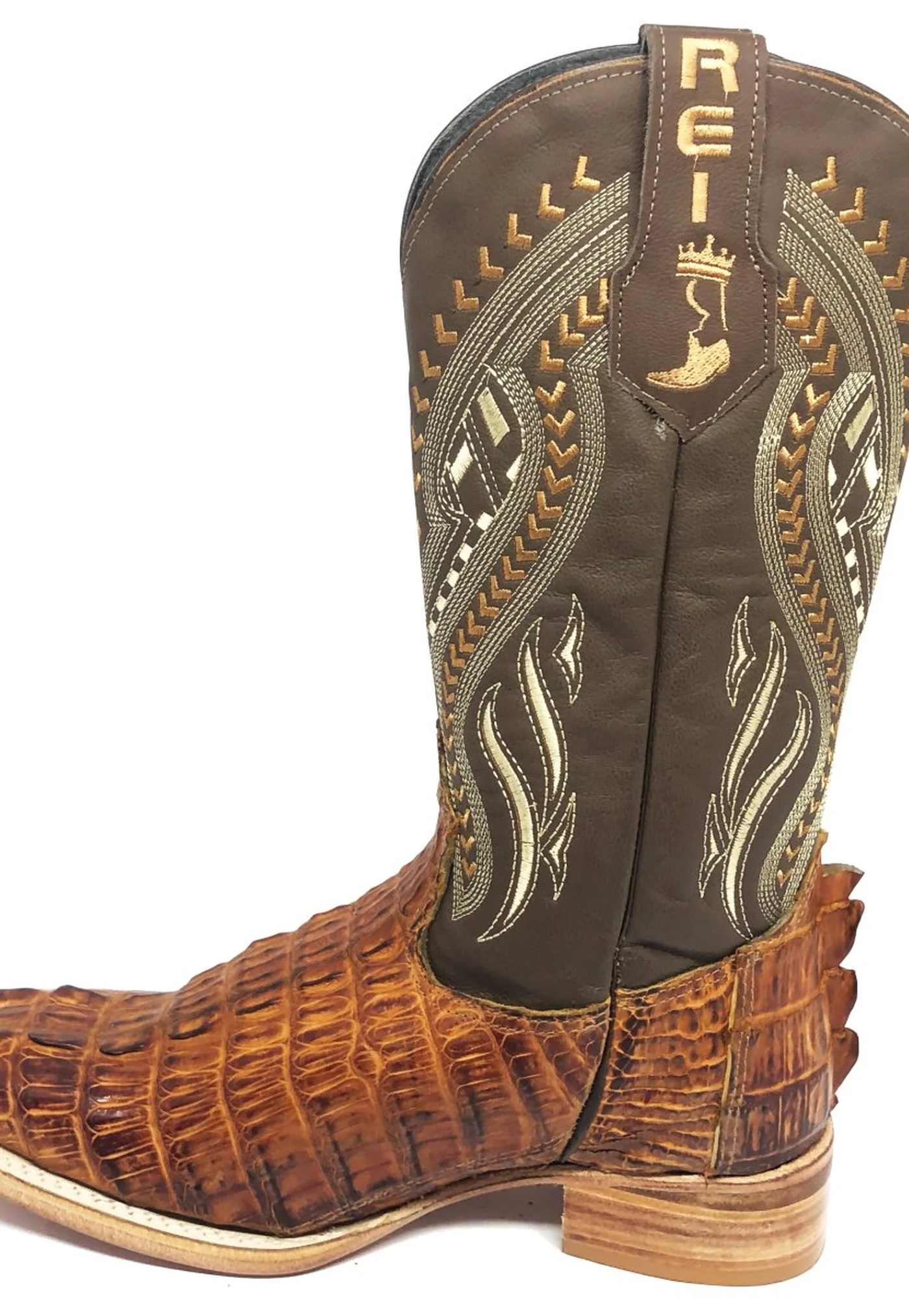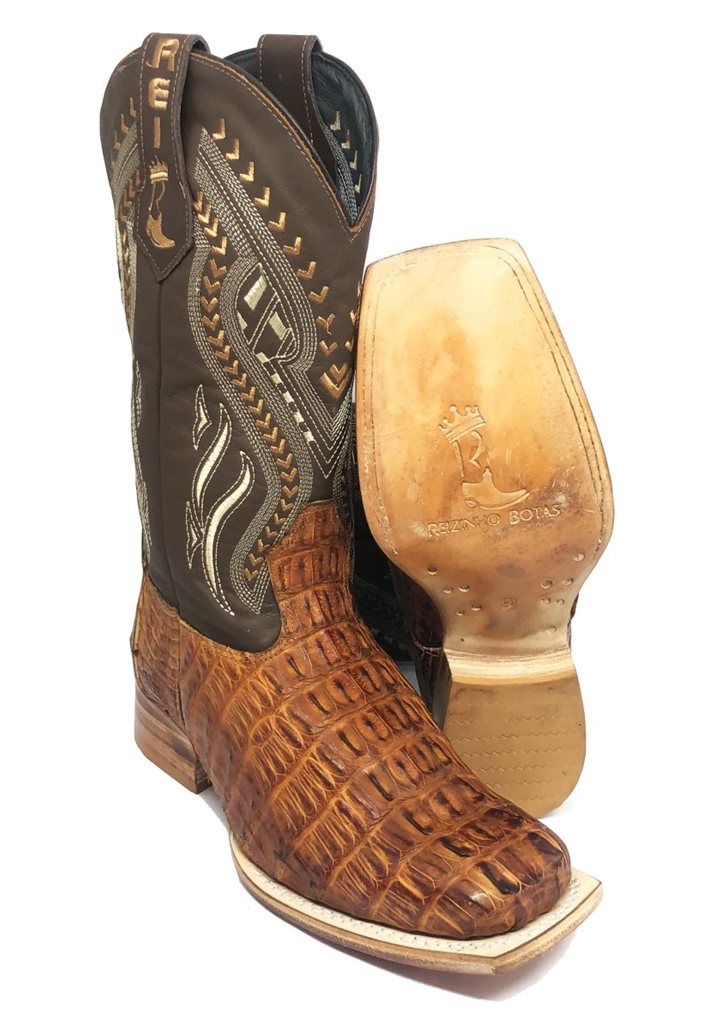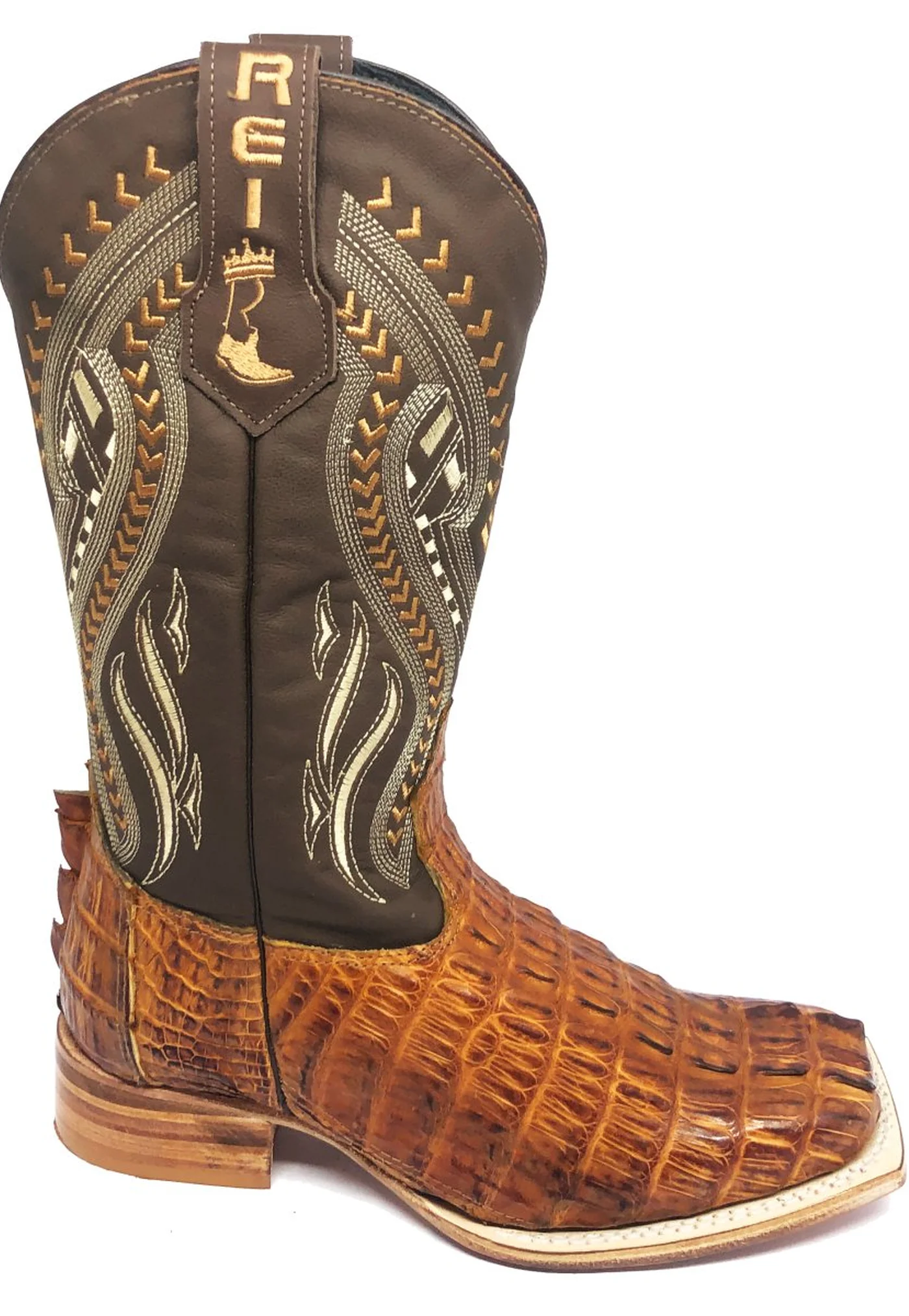 Bota Reizinho Premium Couro De Jacaré Havana Rabo Limited Edition - Cano Alto, Bico Quadrado, Solado De Couro Artesanal