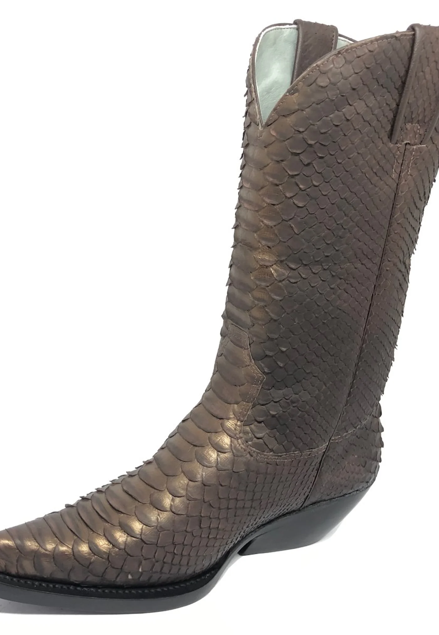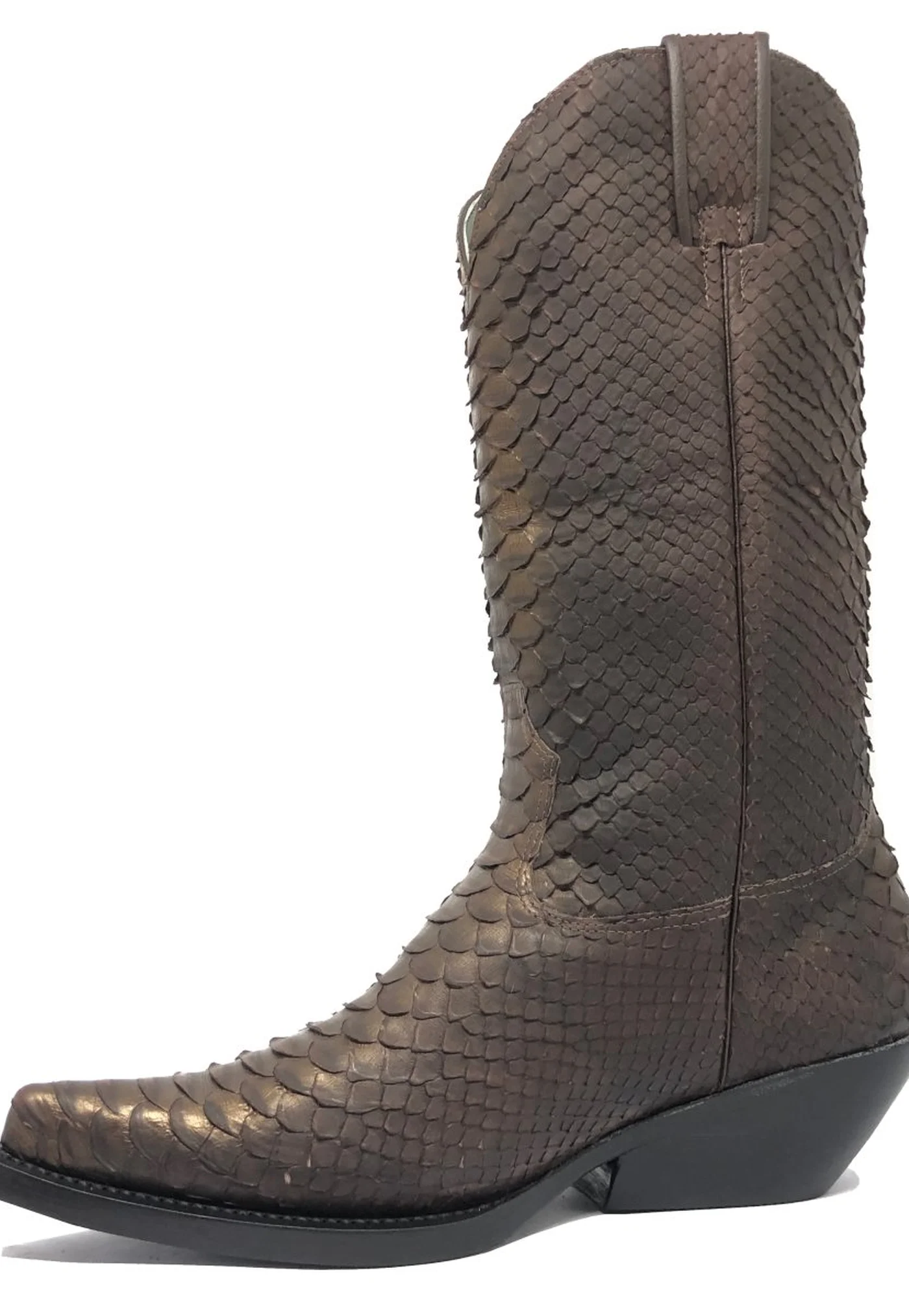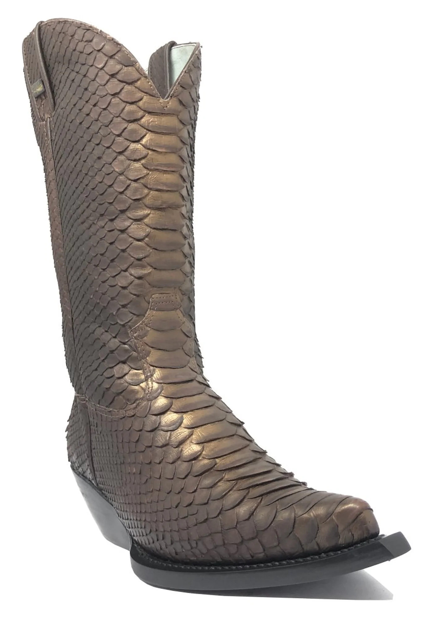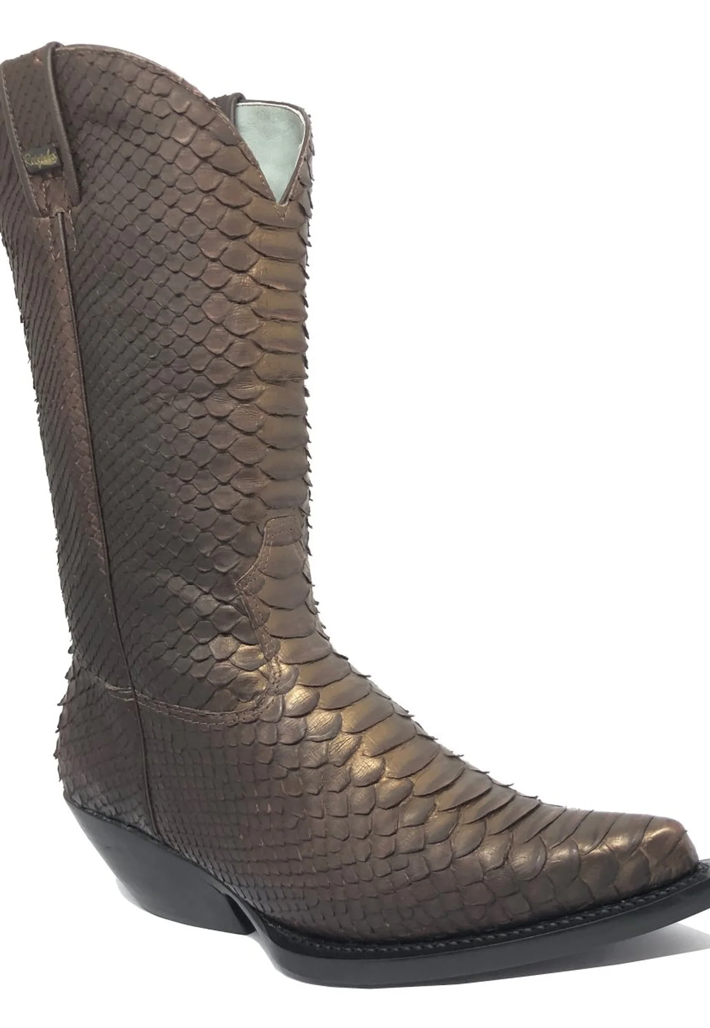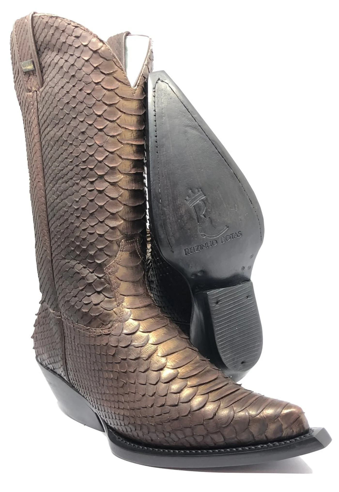Bota Reizinho Premium Couro De Python Golden Brown Limited Edition - Cano Alto, Bico Fino, Solado De Couro Artesanal