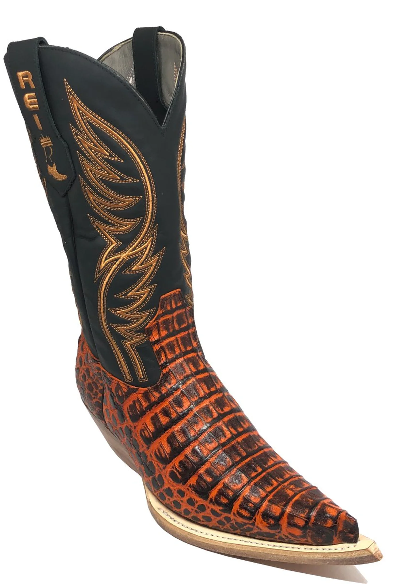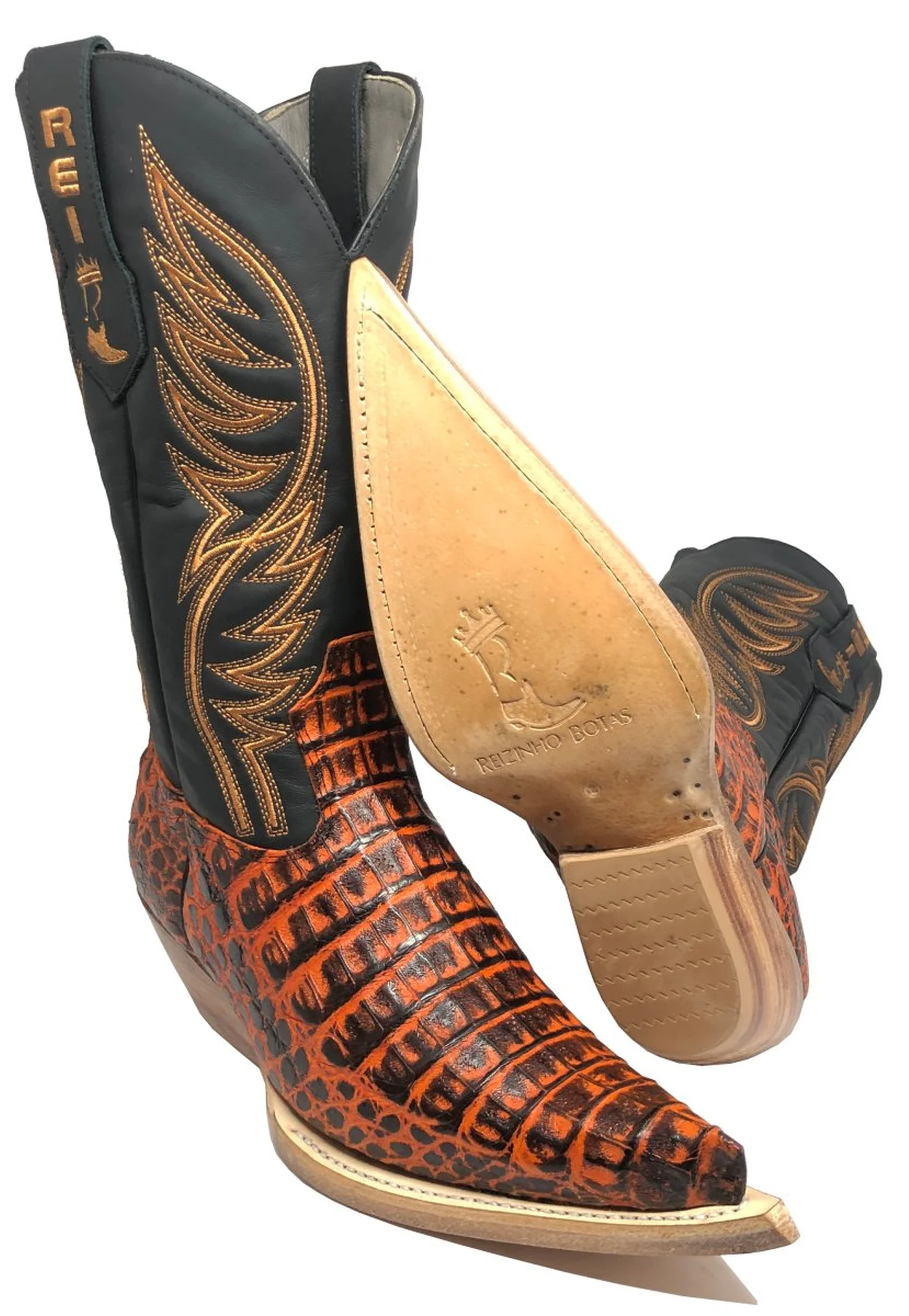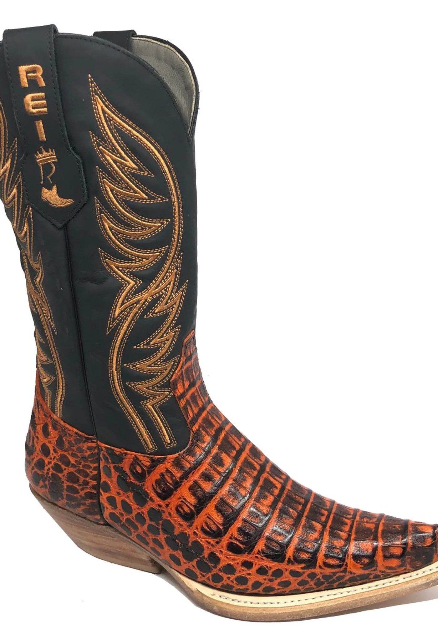 Explore a exclusividade com a Bota de Couro de Jacaré na Cor Volcano da Linha Reizinho Premium, uma edição limitada que mescla tons de laranja e preto para um visual impactante e único. Cada bota é feita artesanalmente, garantindo a mais alta qualidade e conforto que você já conhece.