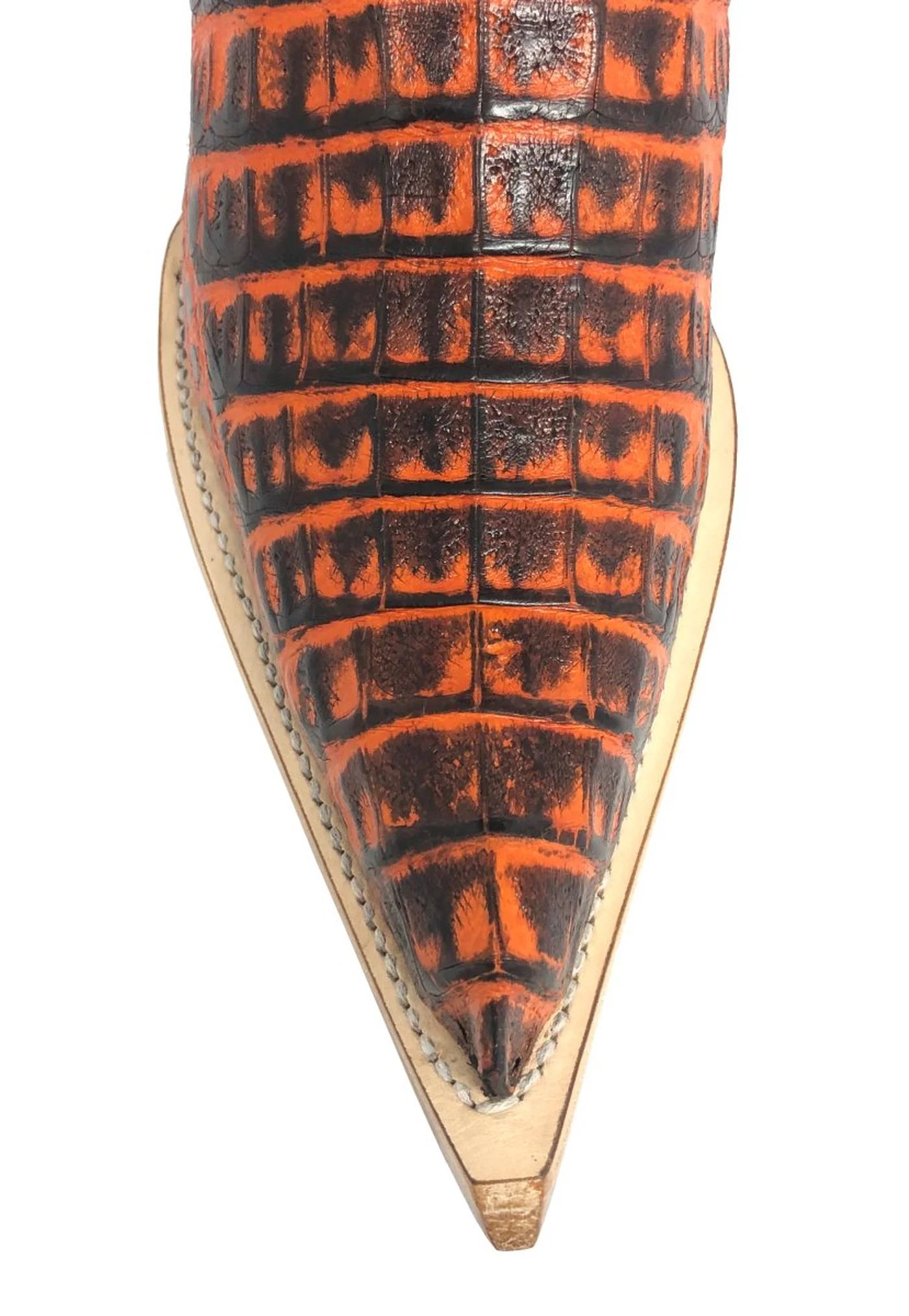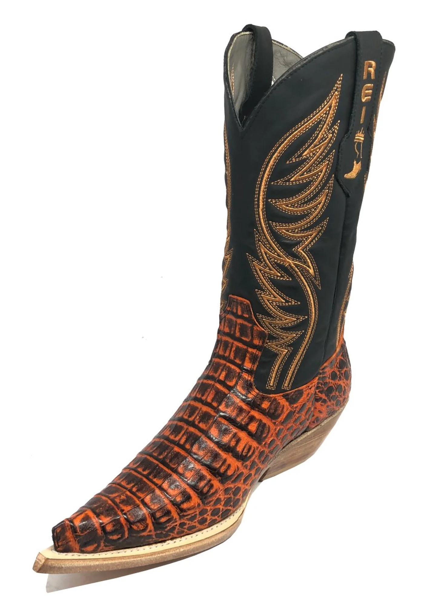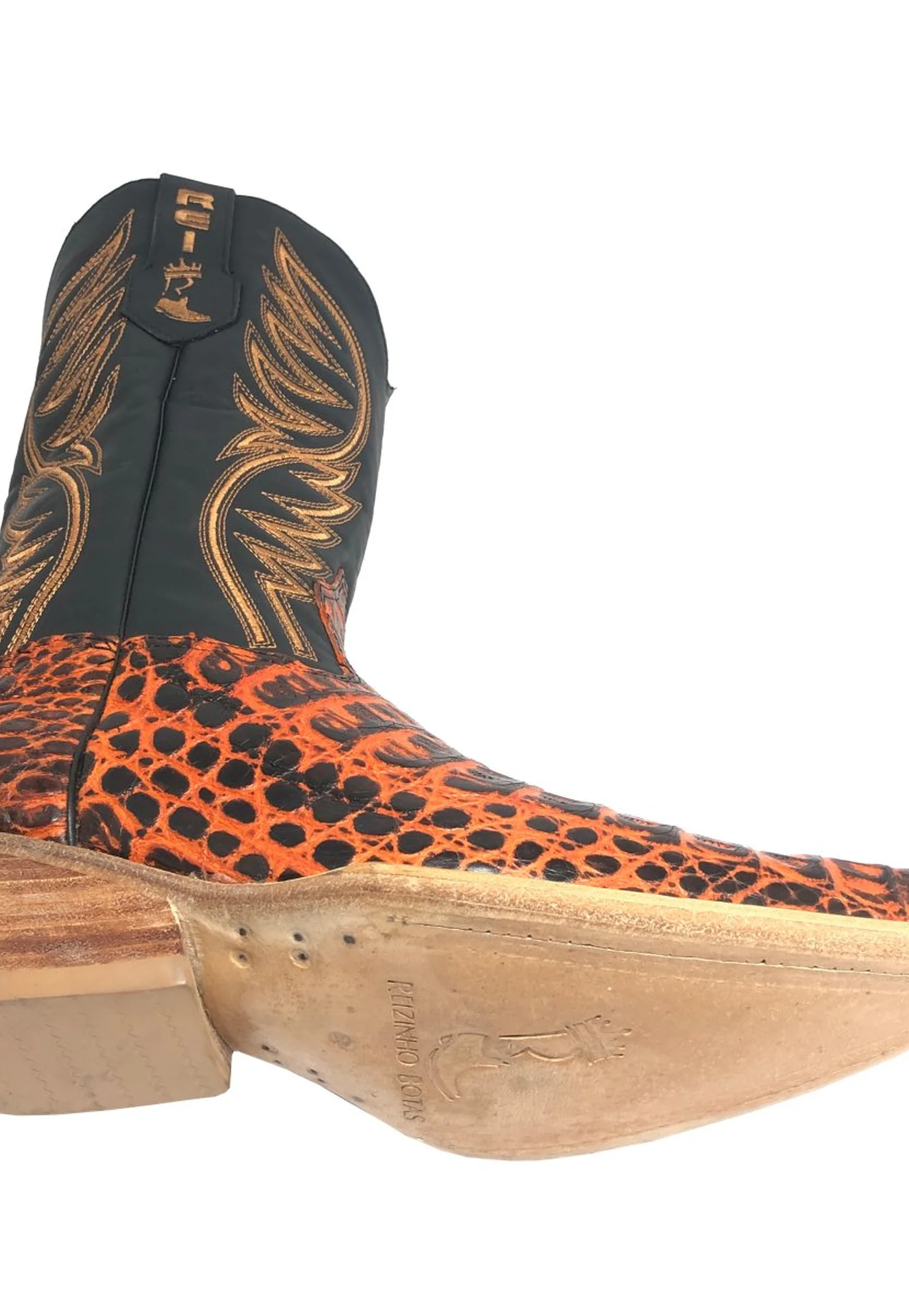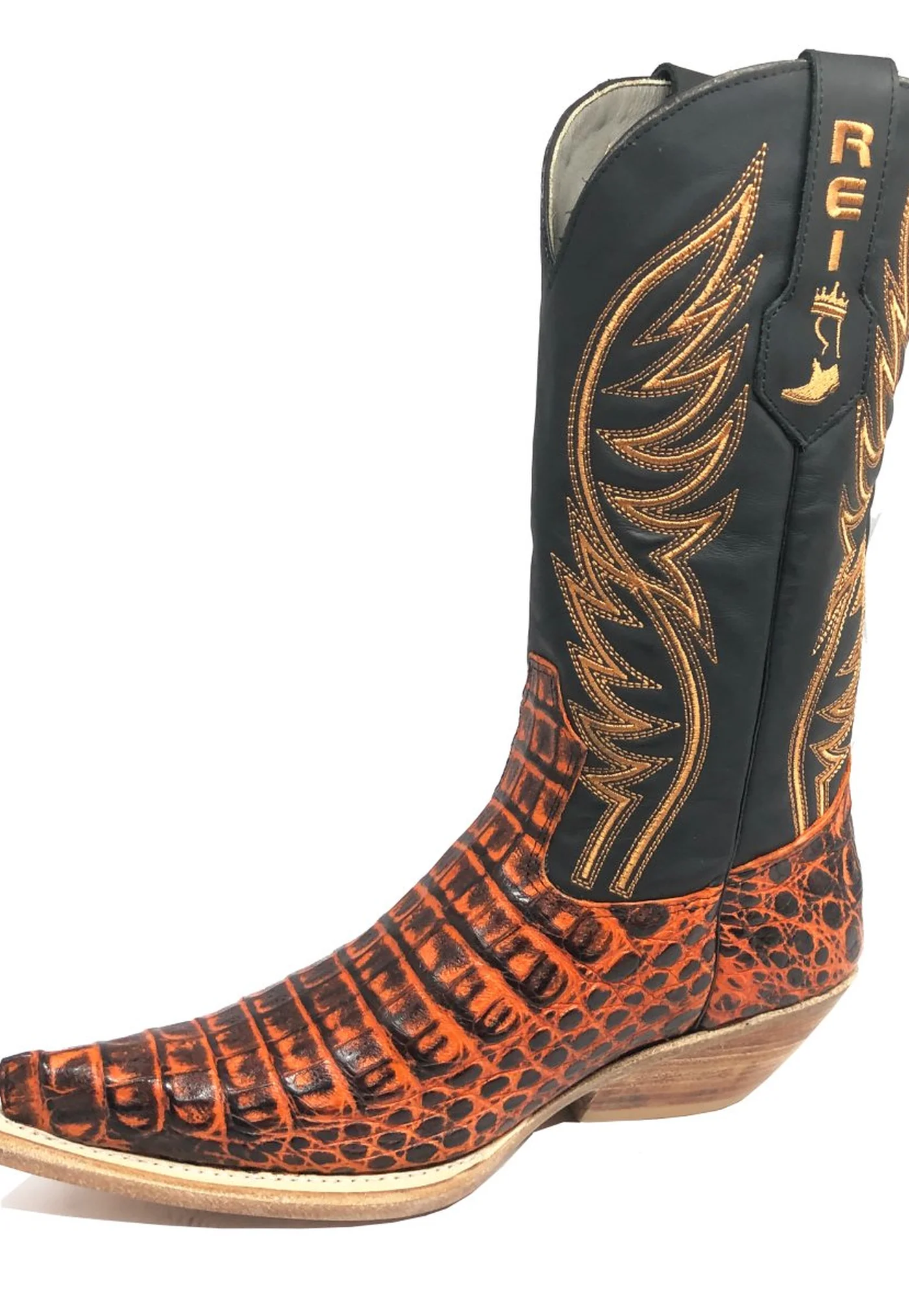 Explore a exclusividade com a Bota de Couro de Jacaré na Cor Volcano da Linha Reizinho Premium, uma edição limitada que mescla tons de laranja e preto para um visual impactante e único. Cada bota é feita artesanalmente, garantindo a mais alta qualidade e conforto que você já conhece.
