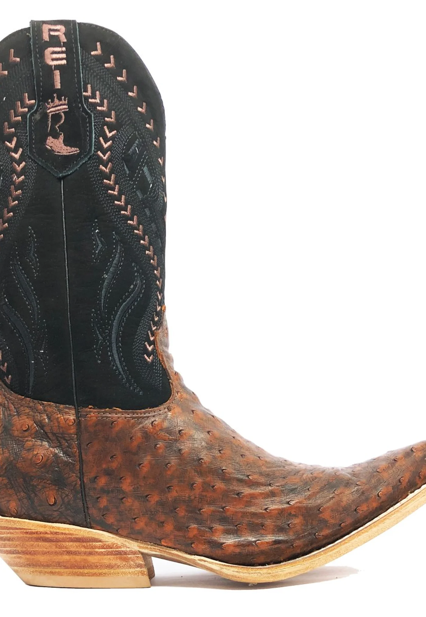 Experimente a sofisticação e elegância com a Bota de Couro de Avestruz Cheio na cor BloodWine da Linha Reizinho Premium. Esta bota exclusiva é a personificação do luxo e da qualidade artesanal, com uma cor única que mescla tons de vermelho vinho e preto, um sucesso desde seu lançamento.