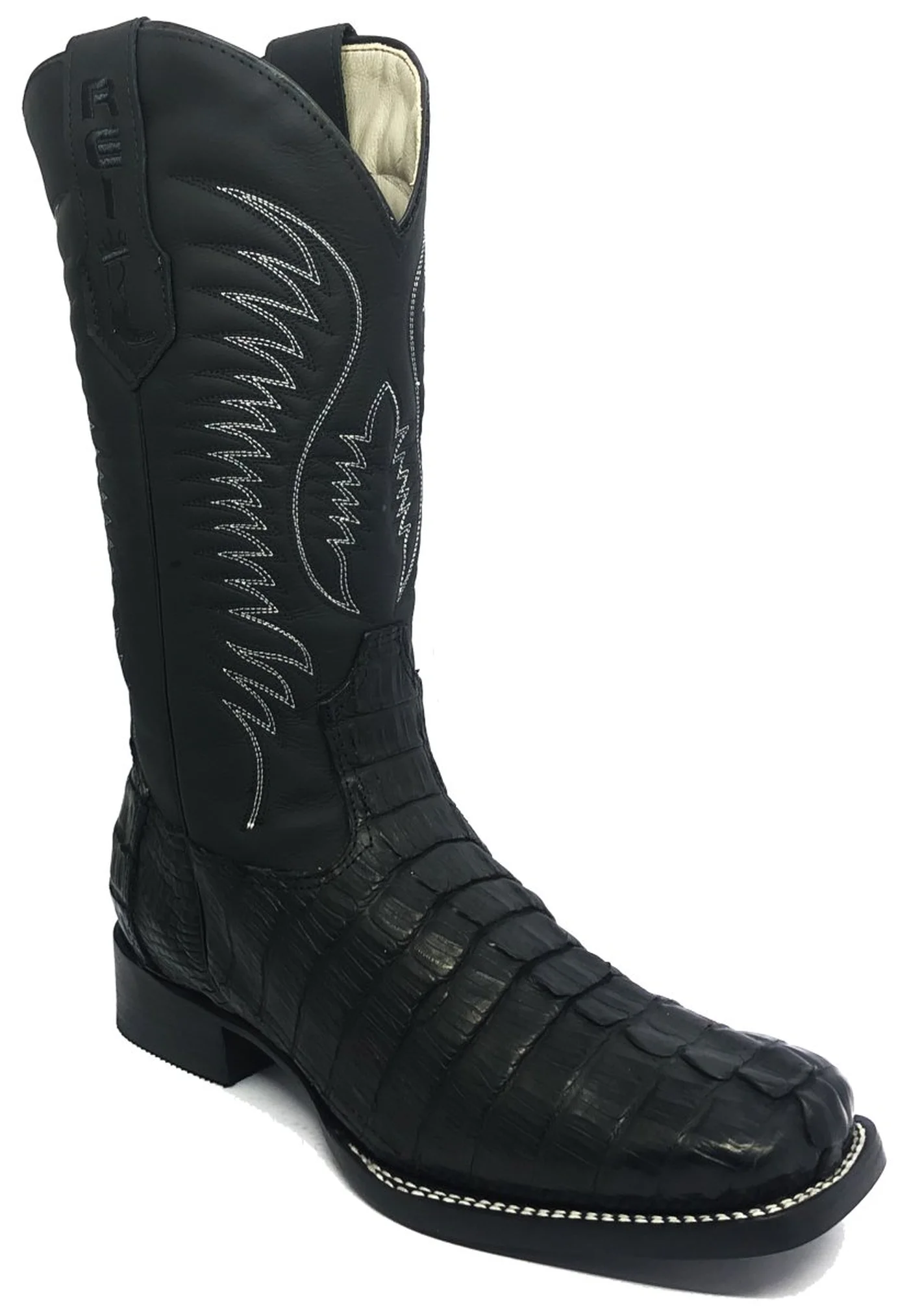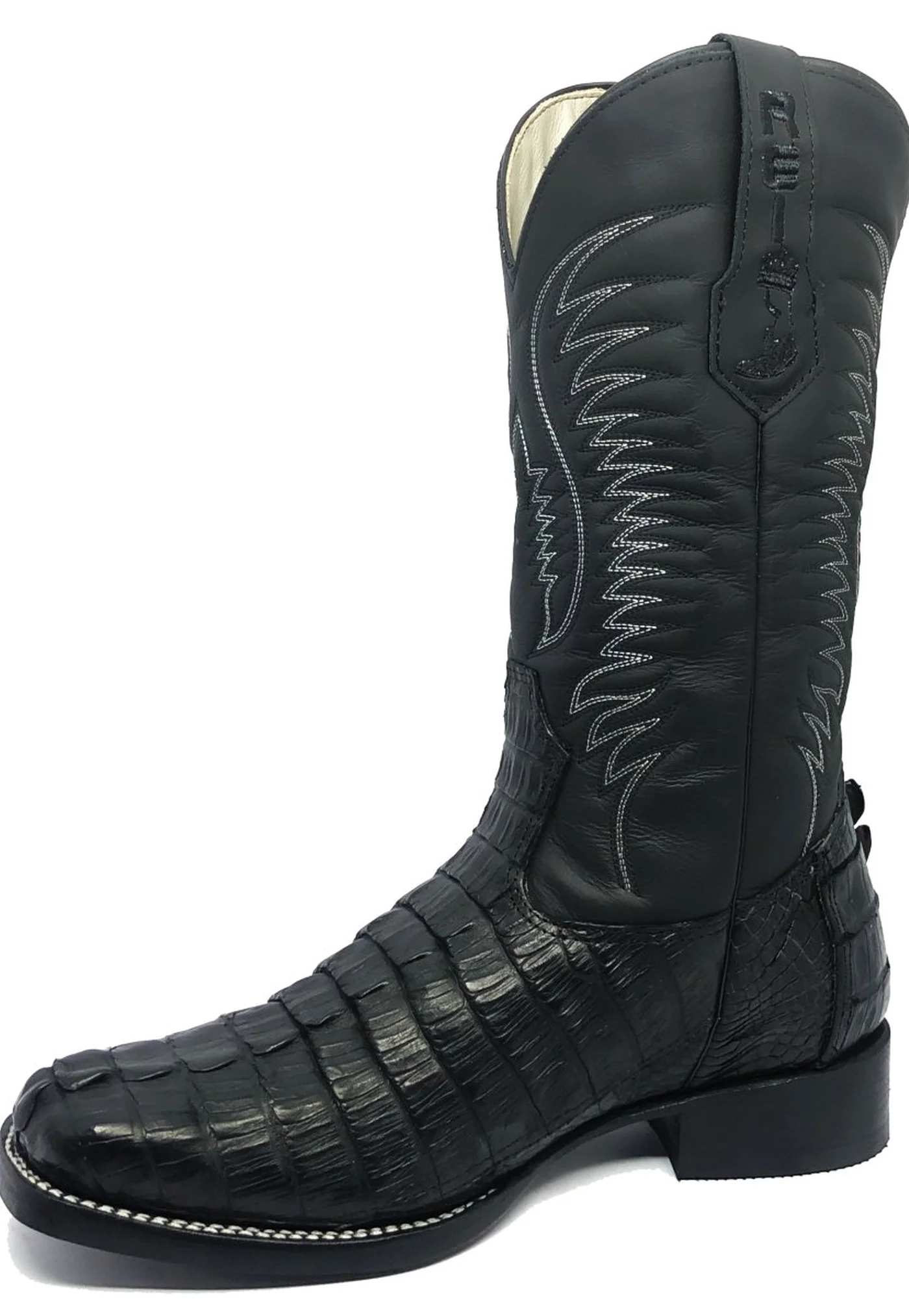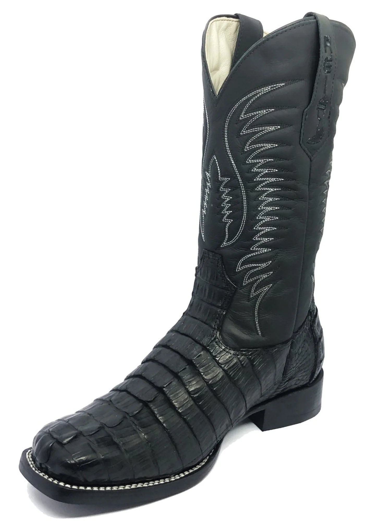 Bota Reizinho Premium Couro De Jacaré Preto Rabo Limited Edition - Cano Alto, Bico Quadrado, Solado Couro Artesanal