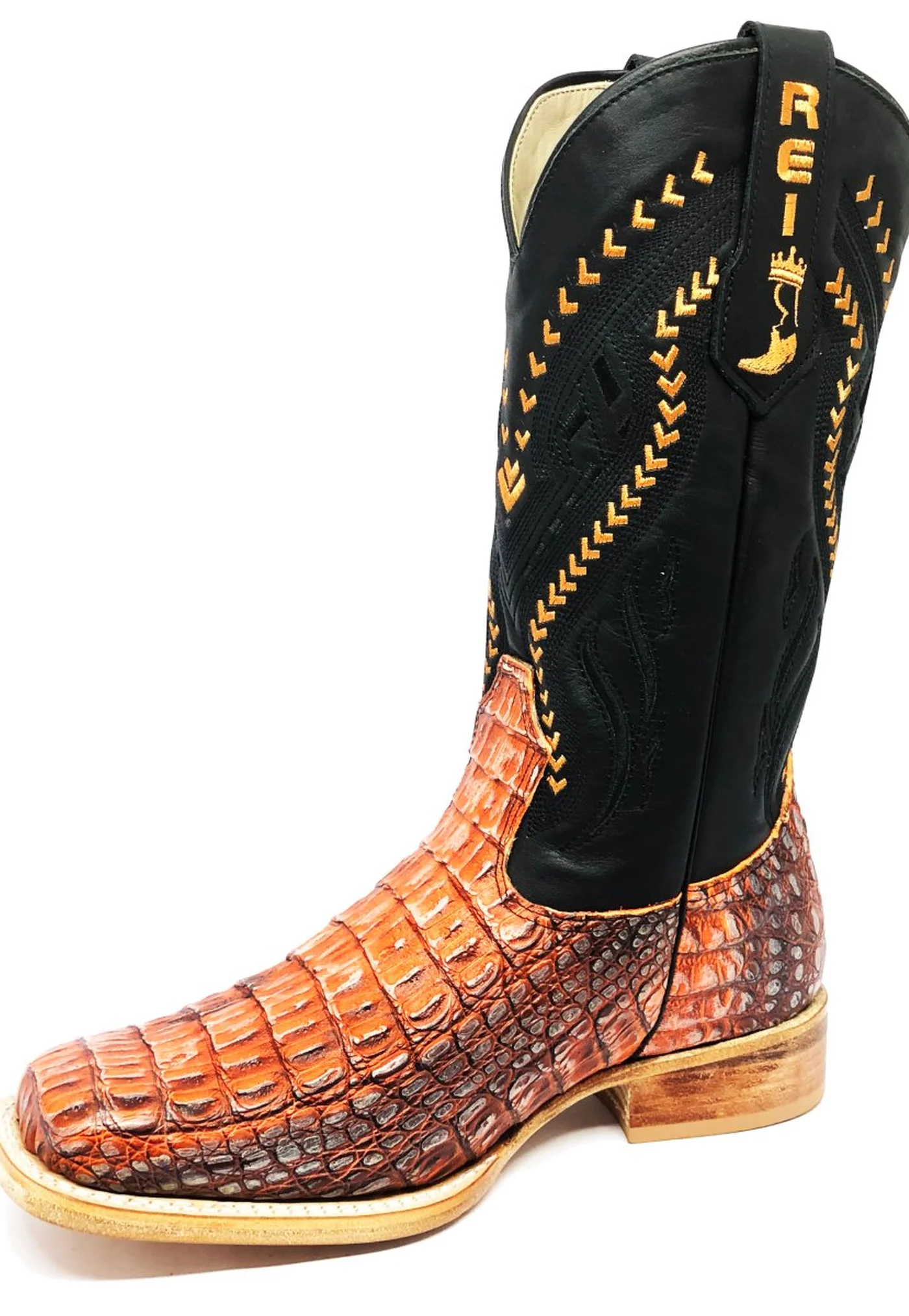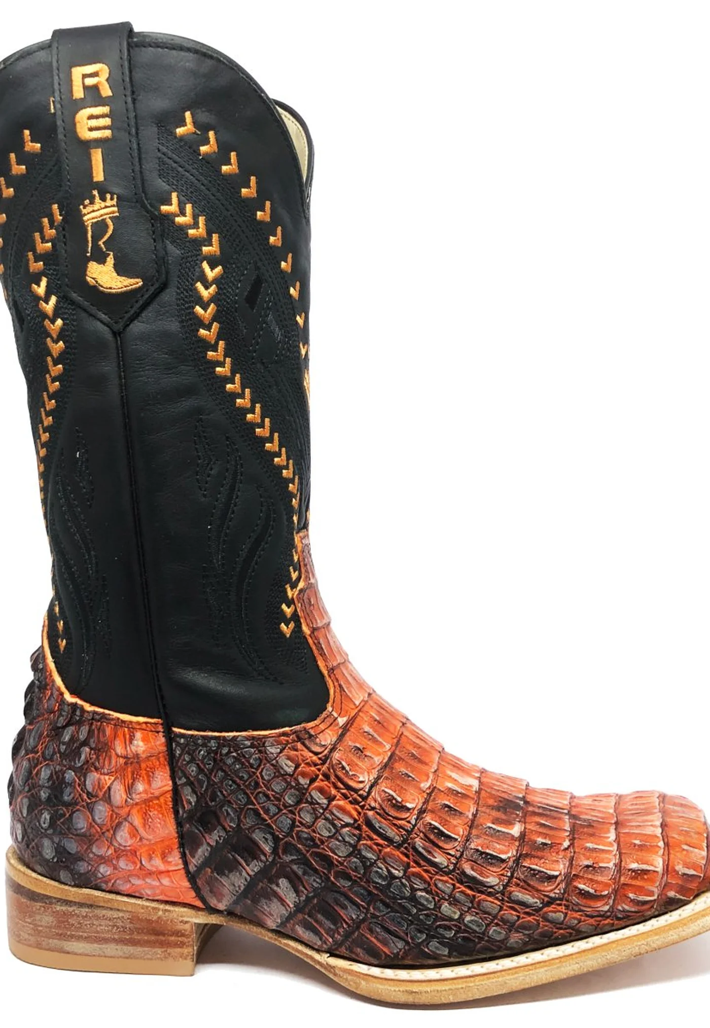 Bota Reizinho Premium Couro De Jacaré Darkness Orange Limited Edition - Cano Alto, Bico Quadrado, Solado Couro Artesanal