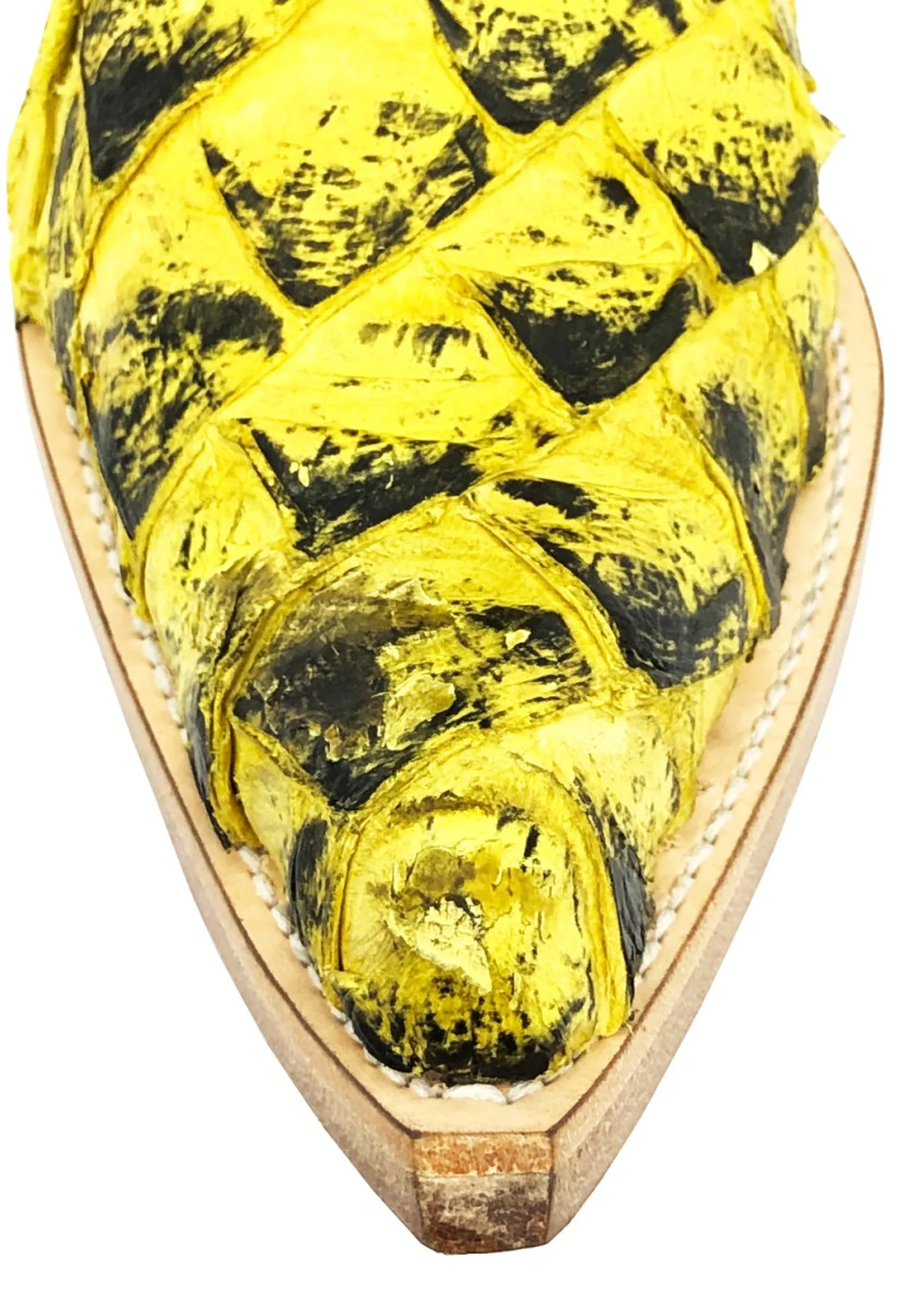 Bota Reizinho Premium Couro De Pirarucu Black Yellow Limited Edition - Cano Curto, Bico Fino, Solado De Couro Artesanal
