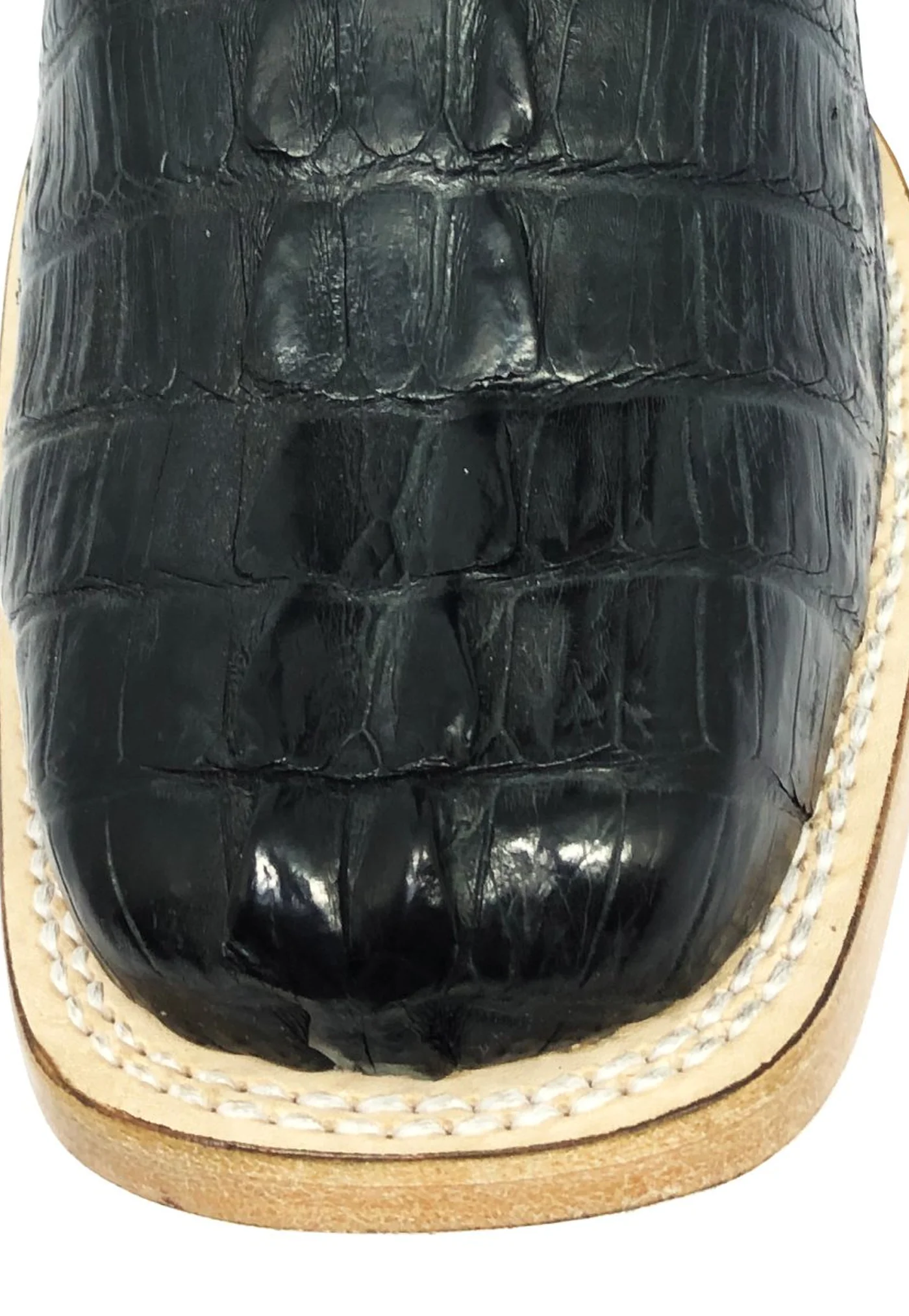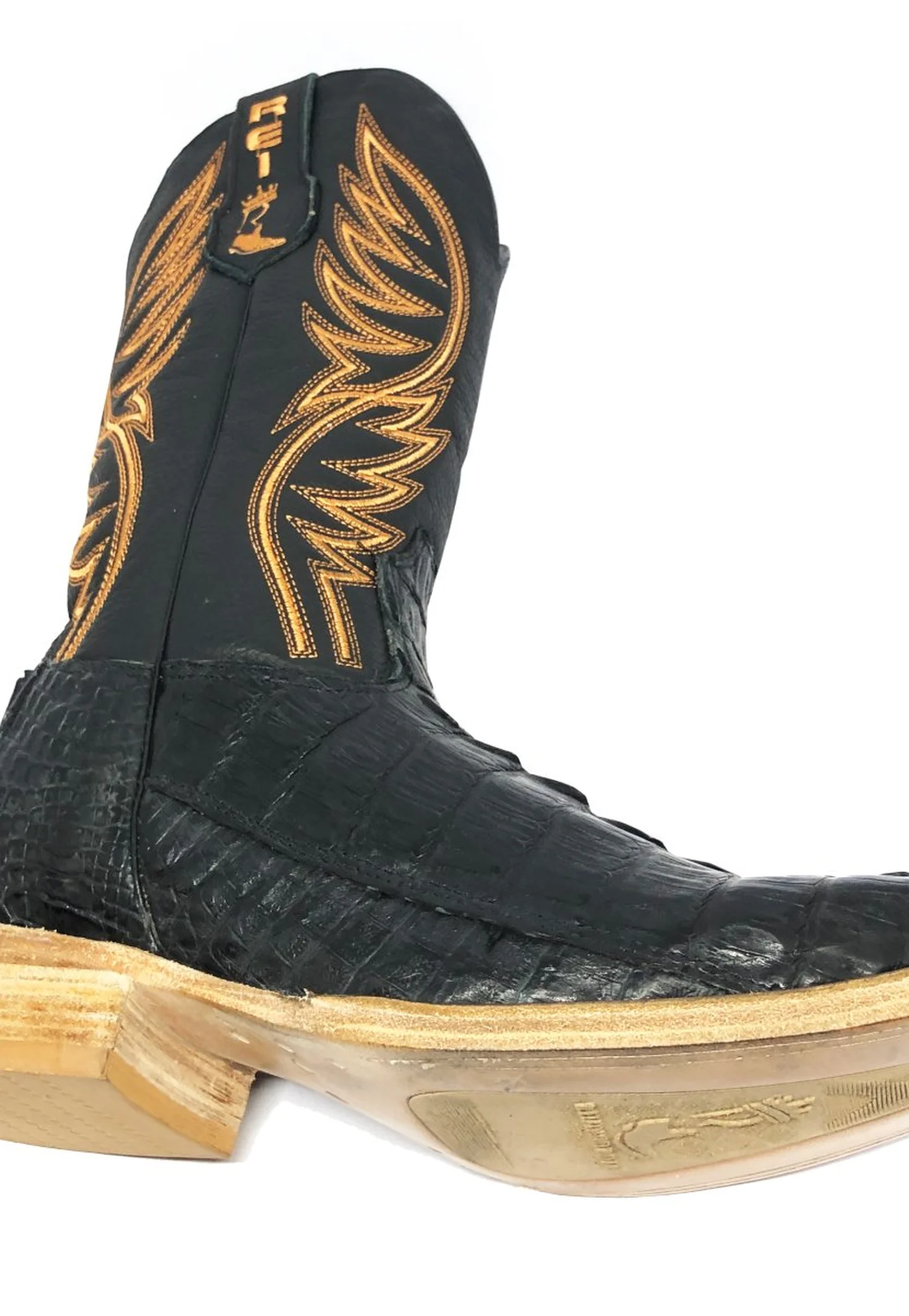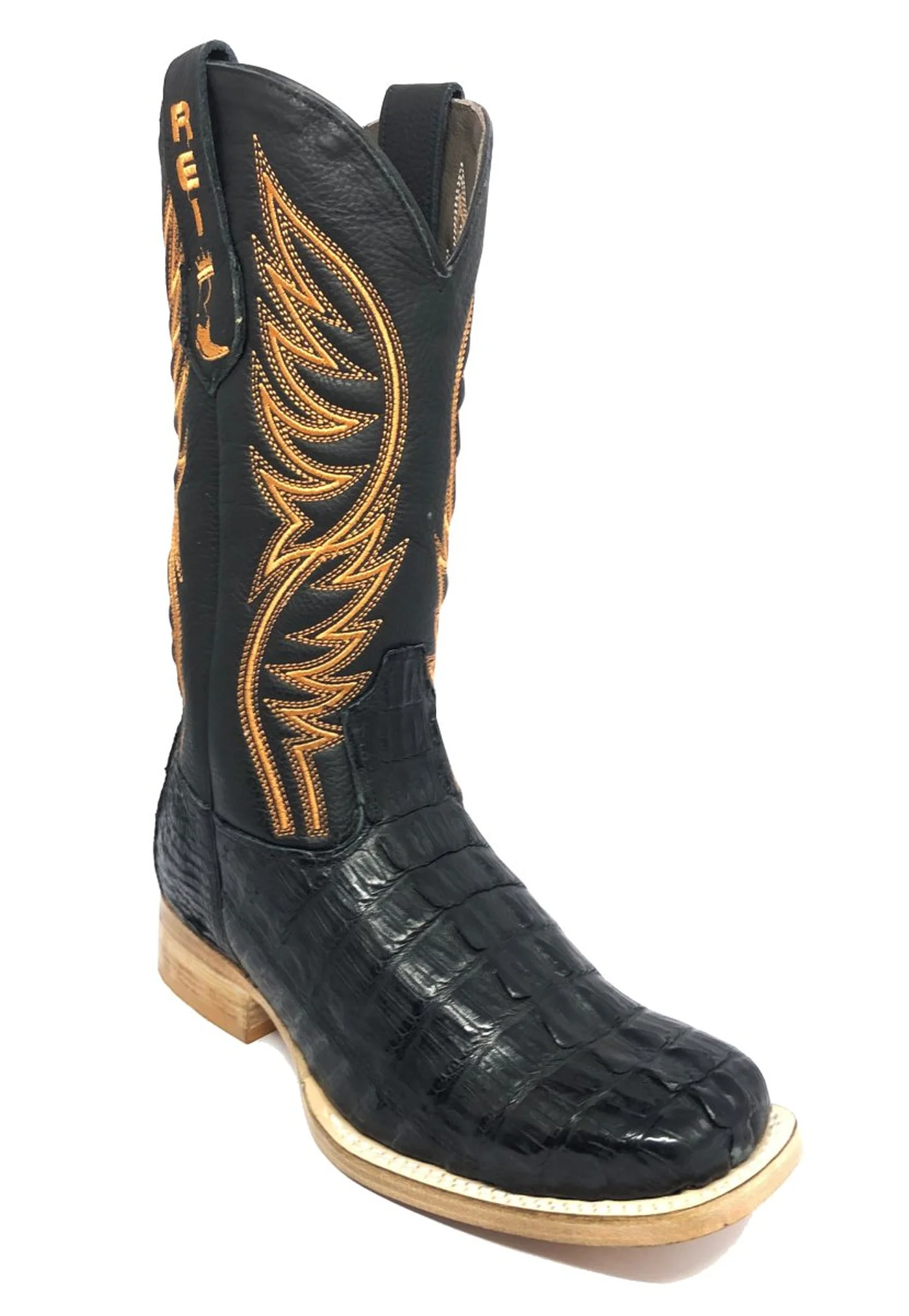 BOTA REIZINHO PREMIUM DE COURO DE JACARÉ PRETO RABO LIMITED EDITION - CANO ALTO, BICO QUADRADO, SOLADO DE COURO ARTESANAL INJETADO