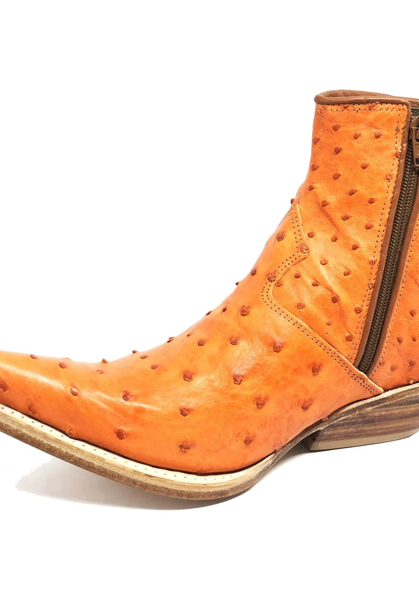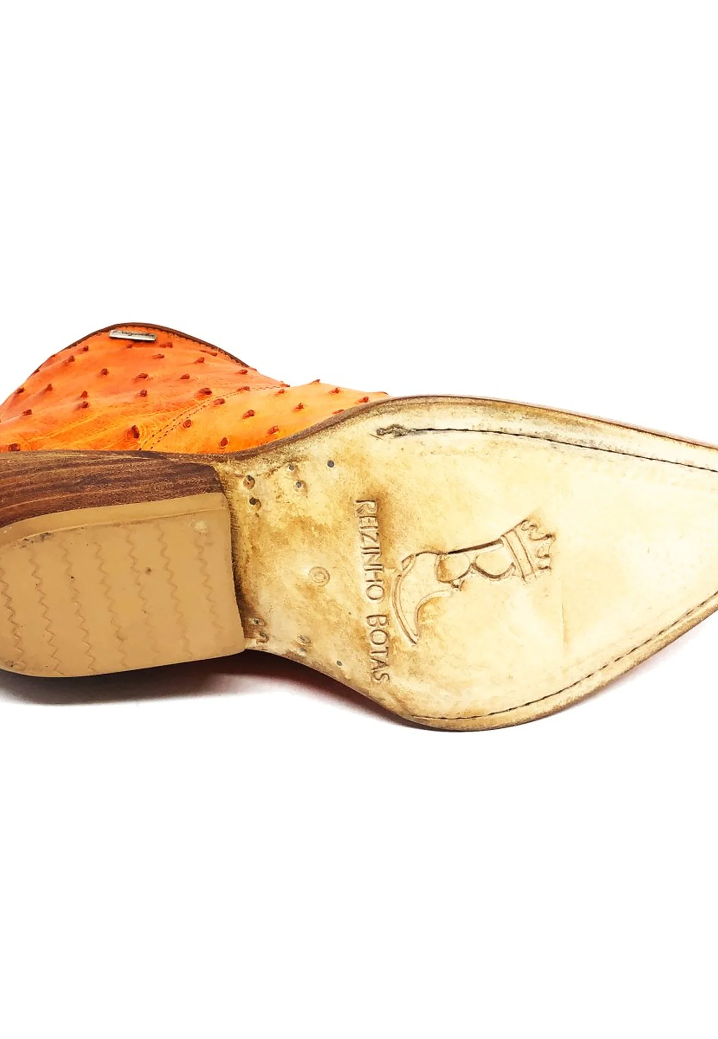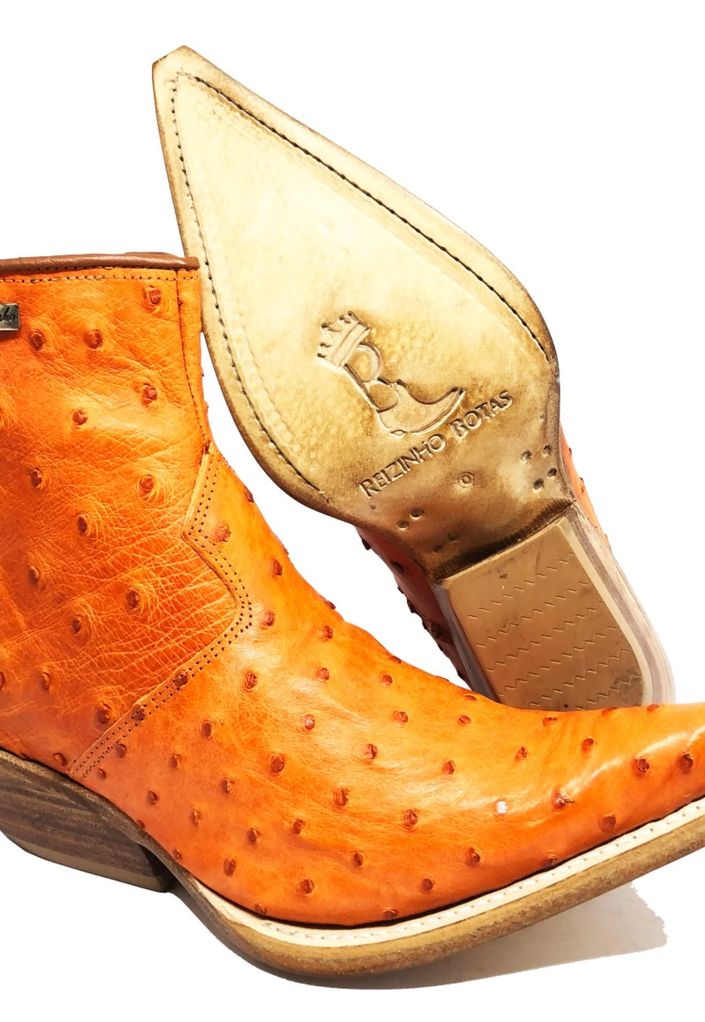 BOTA REIZINHO PREMIUM DE COURO DE AVESTRUZ CHEIO LARANJA LIMITED EDITION - CANO CURTO, BICO FINO, SOLADO DE COURO ARTESANAL