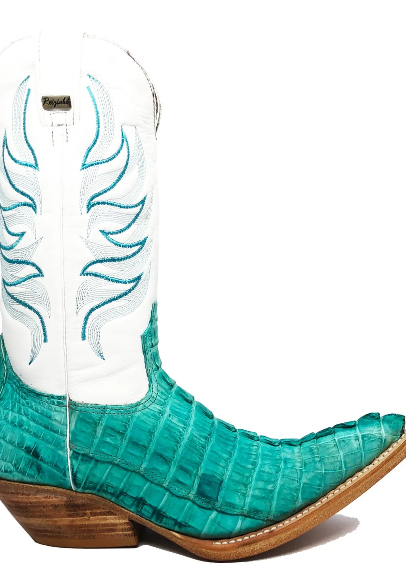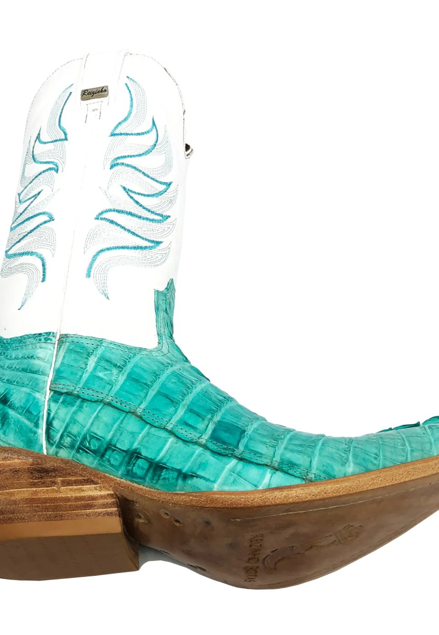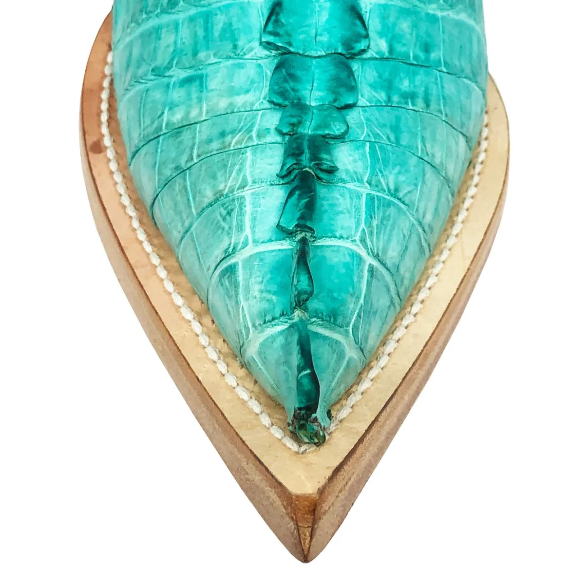 Bota Reizinho Premium De Couro De Jacaré Azul Ocean Rabo Limited Edition - Cano Alto, Bico Fino, Solado De Couro Artesanal