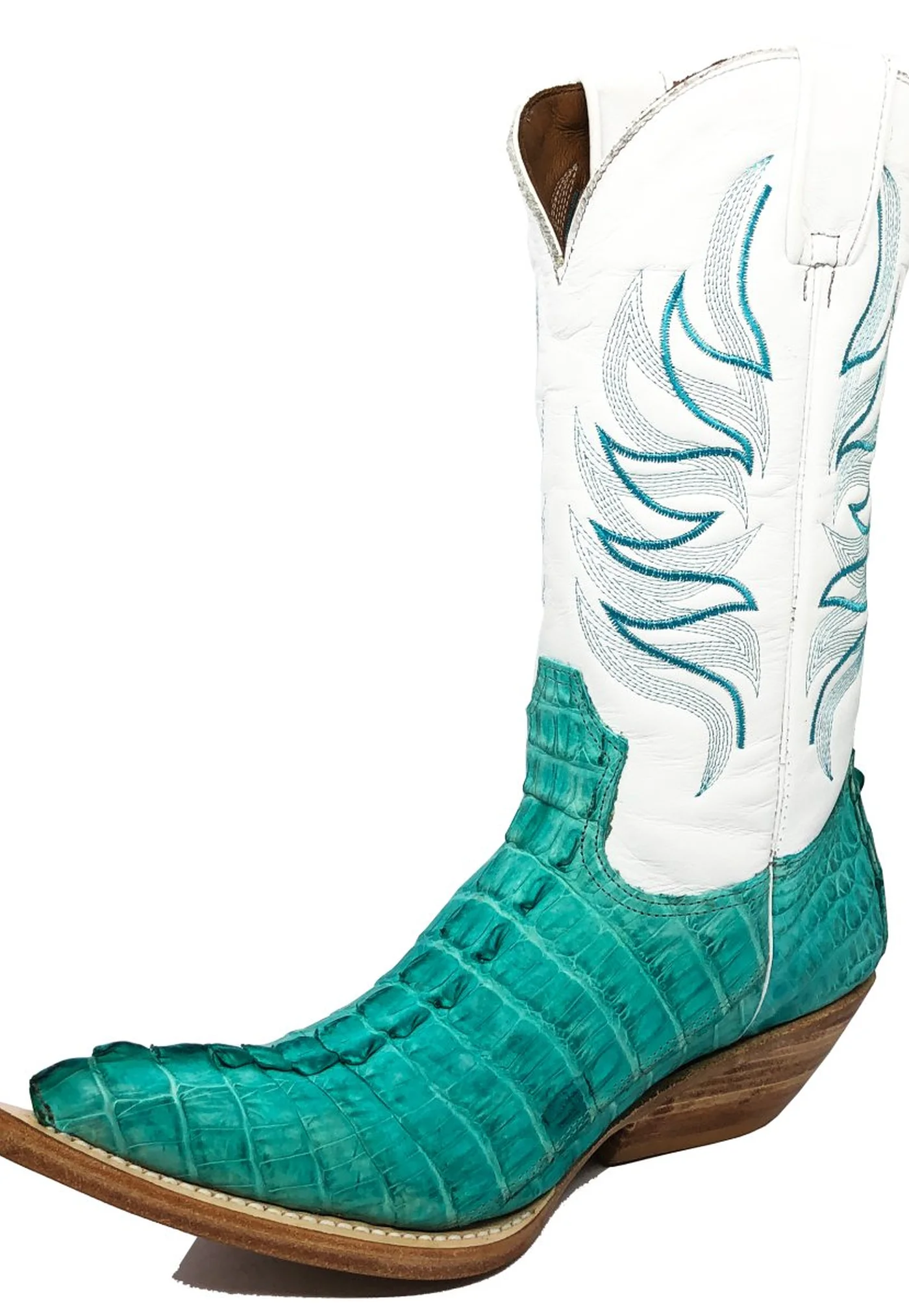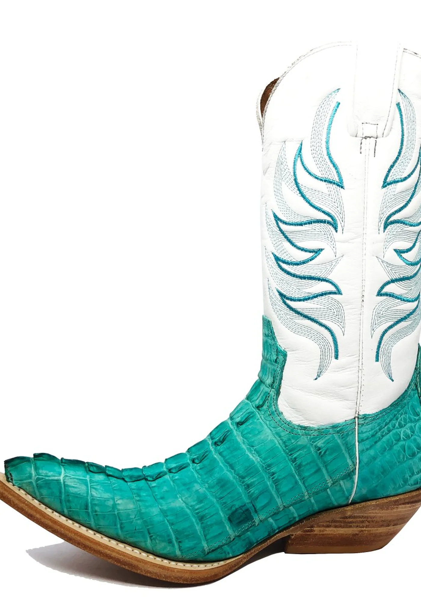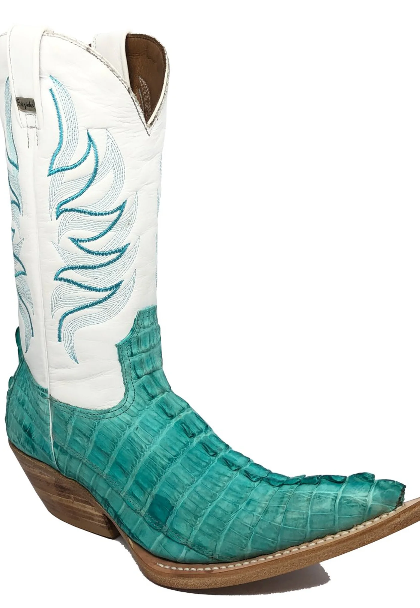 Bota Reizinho Premium De Couro De Jacaré Azul Ocean Rabo Limited Edition - Cano Alto, Bico Fino, Solado De Couro Artesanal