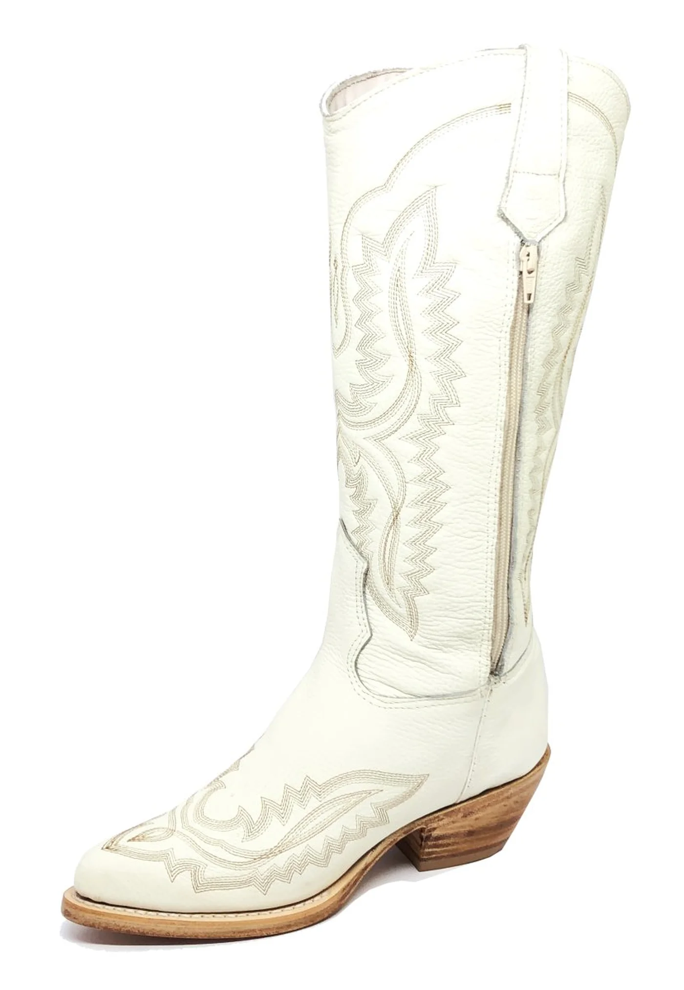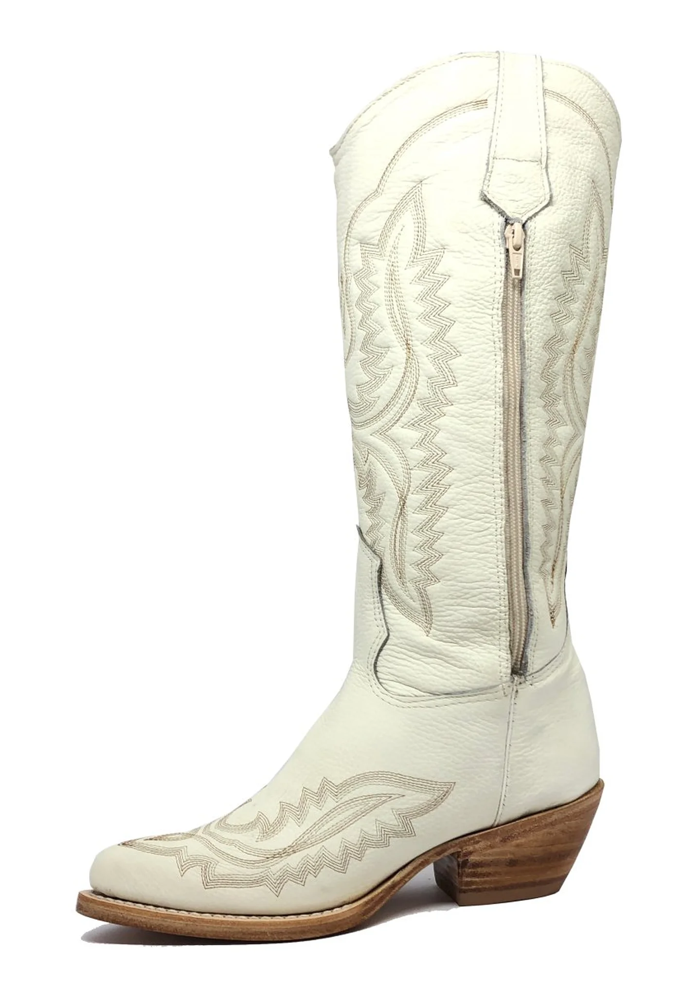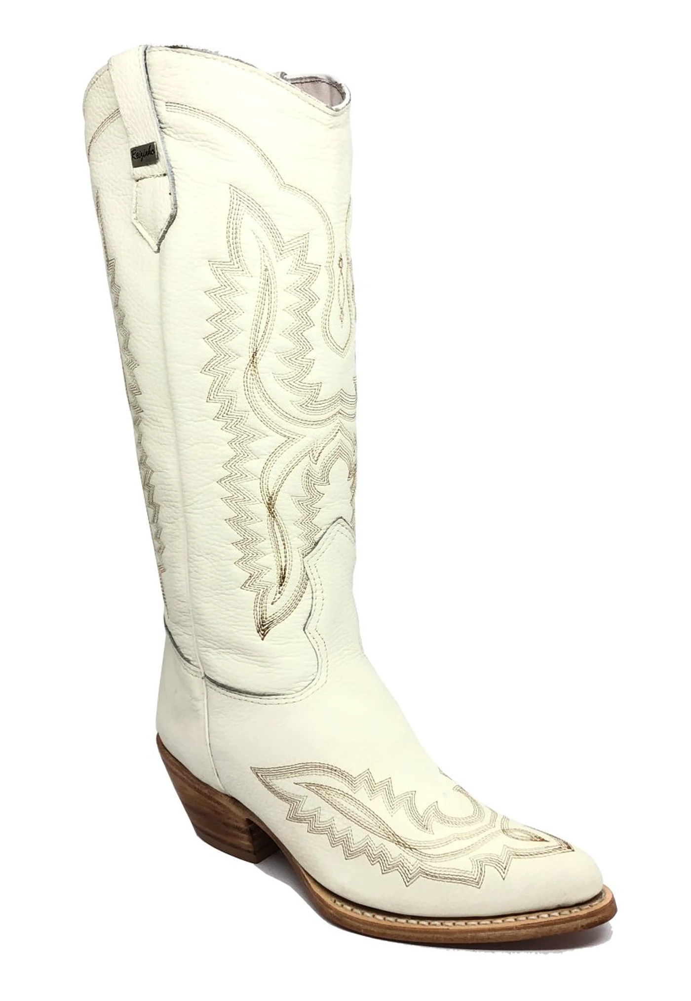 Bota Texana Feminina de Couro Bovino Bege Off White | Reizinho Botas