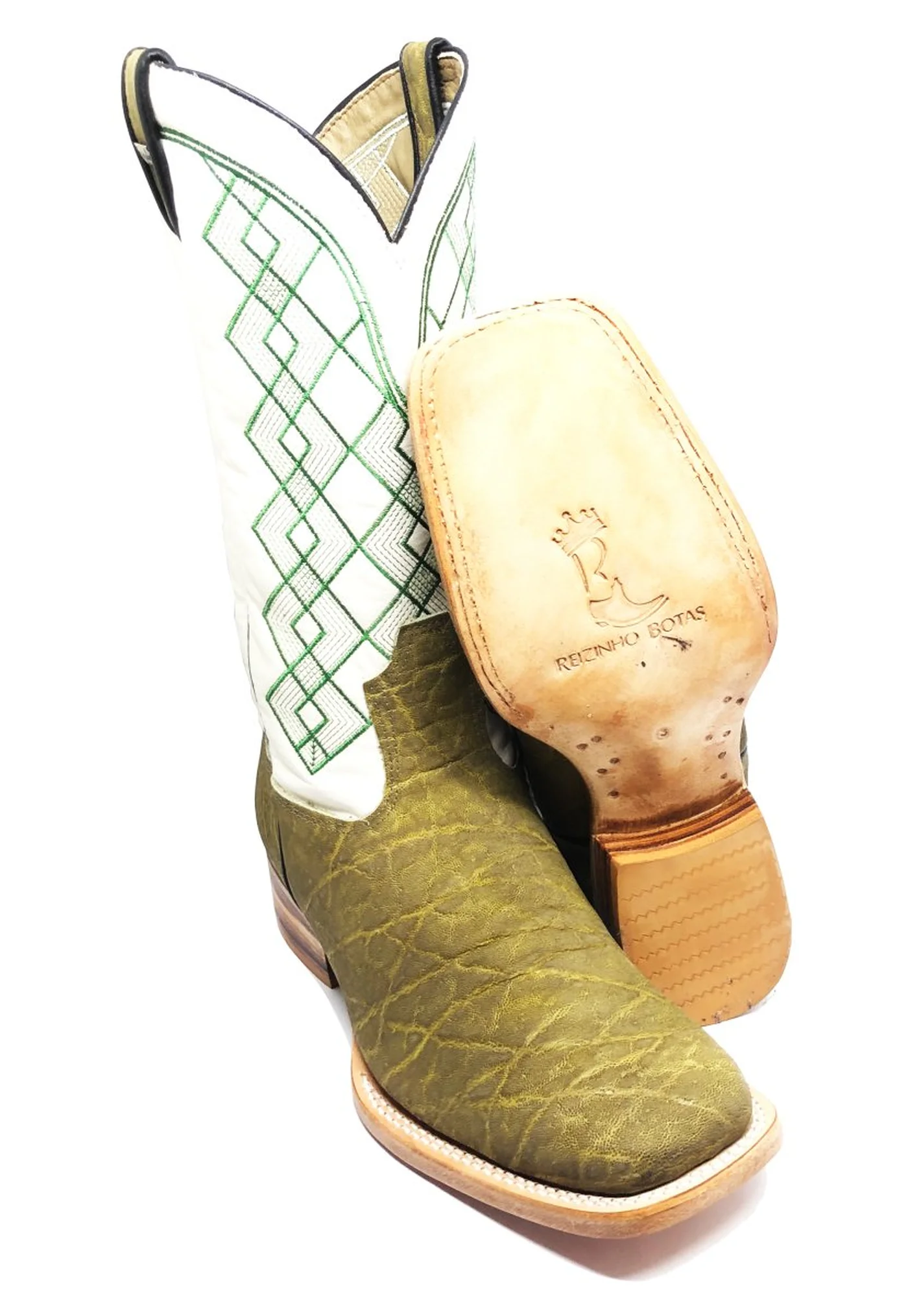 Bota Texana de Couro de Elefante Verde Musgo | Limited Edition | Linha Premium | Reizinho Botas