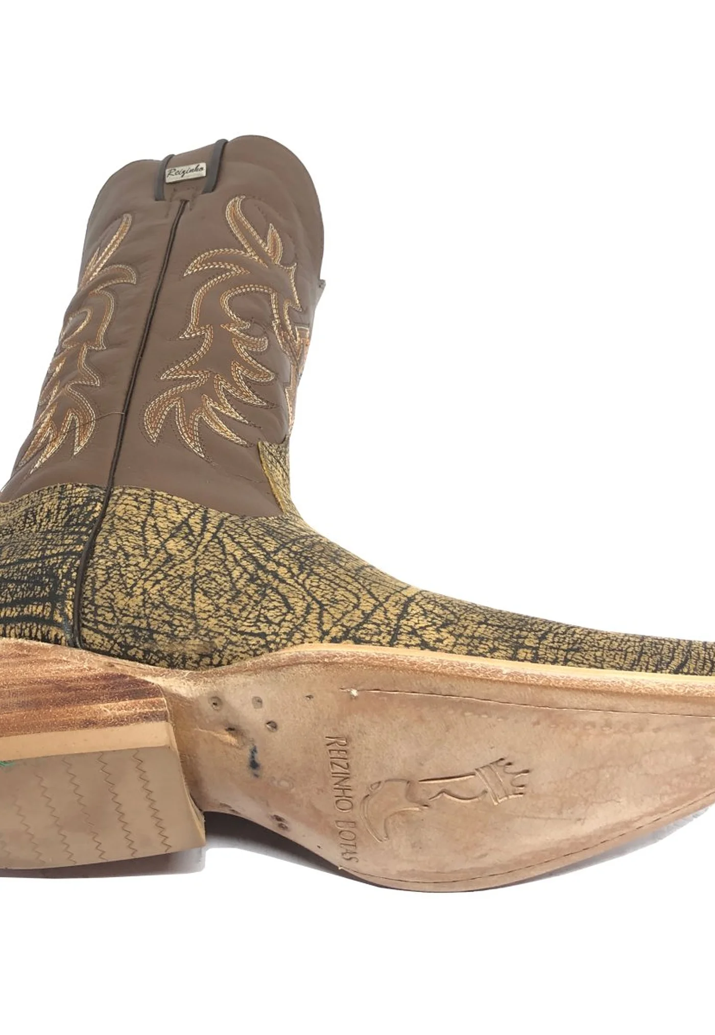 O solado de couro natural oferece uma base robusta e resistente, que combina perfeitamente com o bico fino da bota, conferindo um toque de modernidade e um ajuste mais refinado. Este solado é o símbolo da qualidade artesanal da Reizinho Botas, garantindo uma experiência de uso incomparável.
