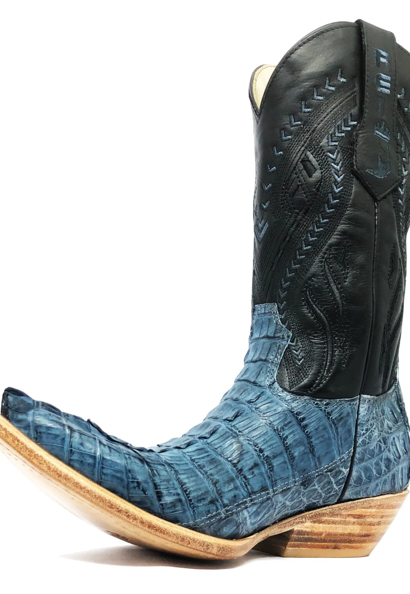 MERGULHE NA ELEGÂNCIA E SOFISTICAÇÃO COM A BOTA DE COURO DE JACARÉ NA COR BLUE STONE DA LINHA REIZINHO PREMIUM. ESTE MODELO ÚNICO APRESENTA UM AZUL ACINZENTADO QUE DESTACA A TEXTURA EXCEPCIONAL E IMPONENTE DO COURO DE JACARÉ.