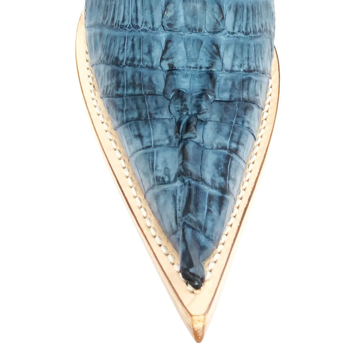 Bota Reizinho Premium Couro De Jacaré Blue Stone Rabo Limited Edition - Cano Alto, Bico Fino, Solado Couro Artesanal