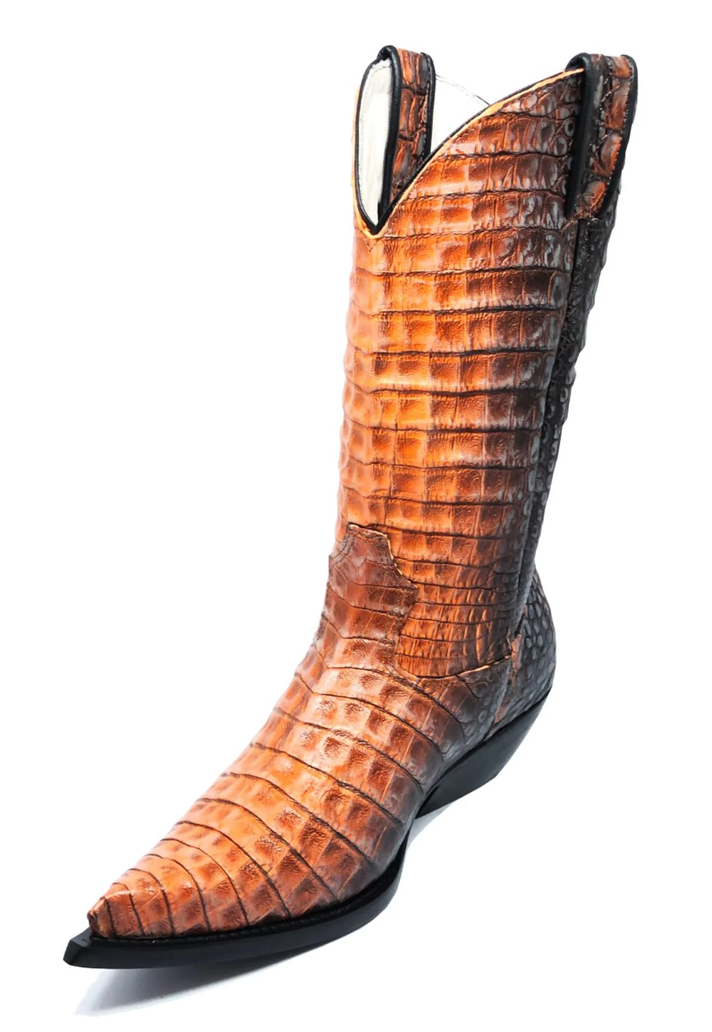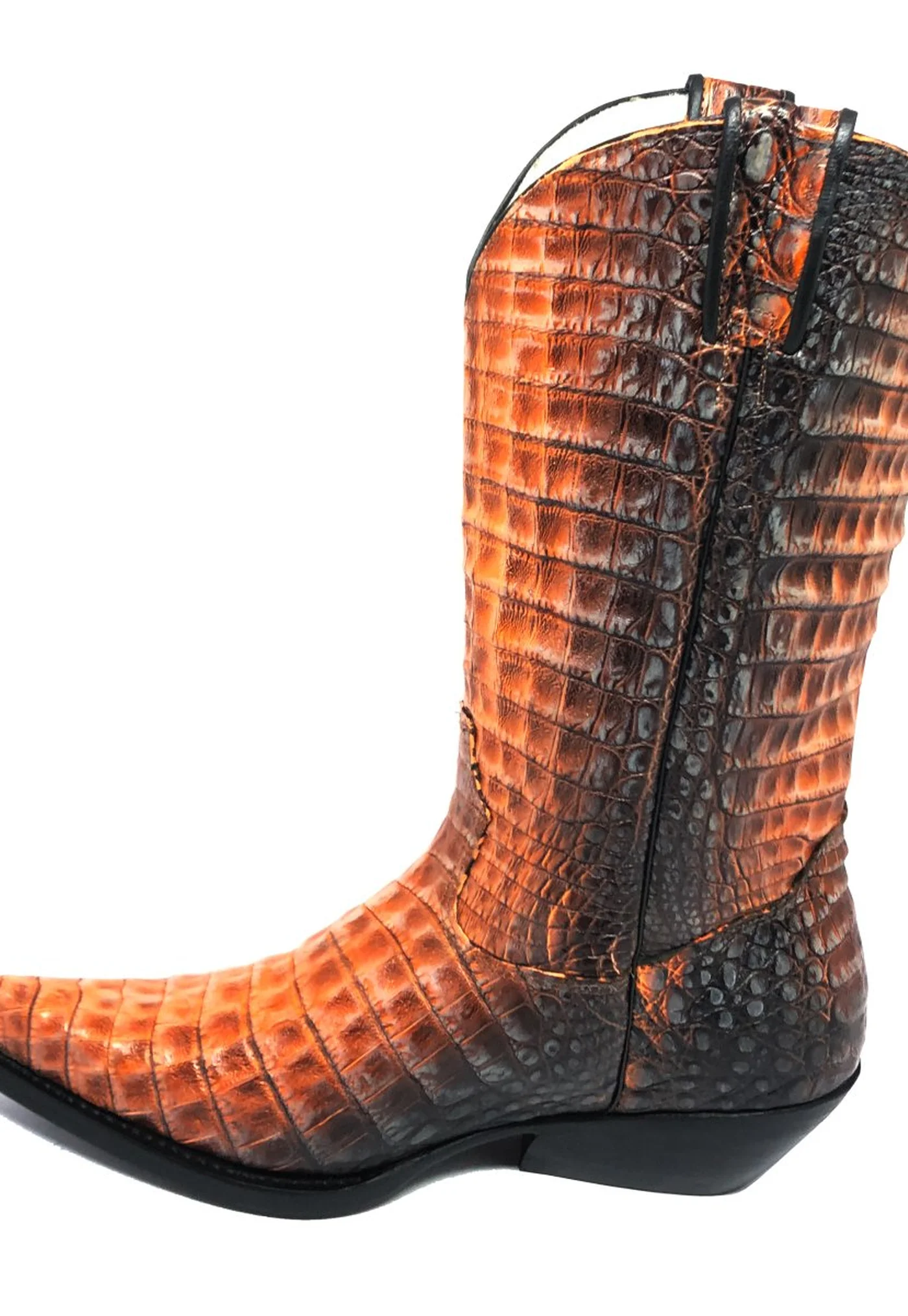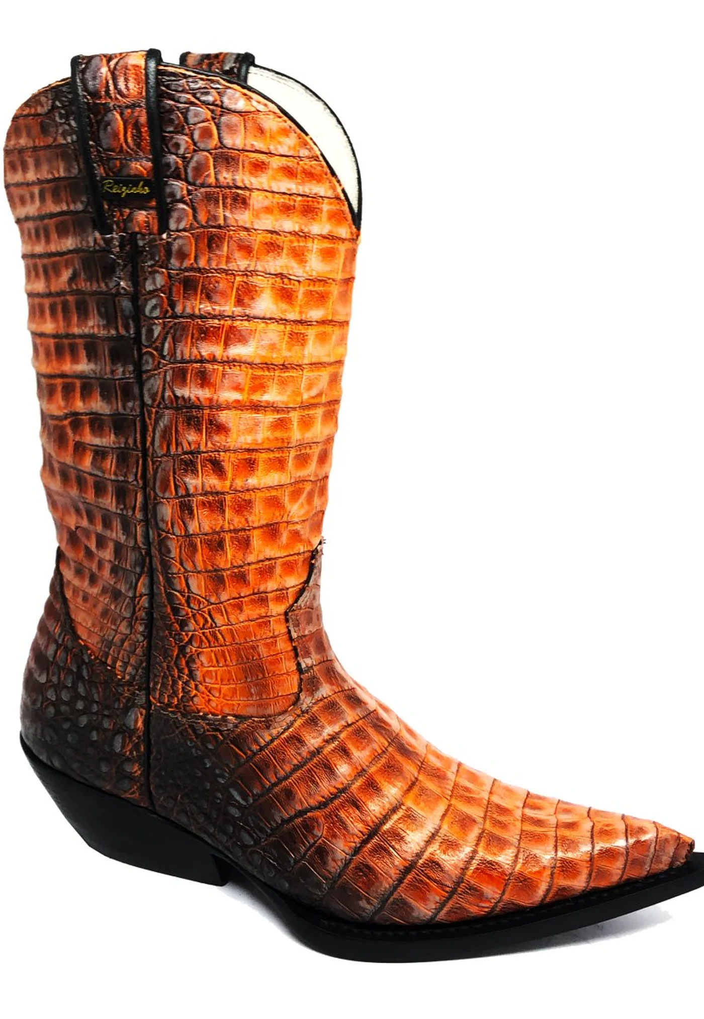 Bota Texana Inteira de Couro de Jacaré Darkness Orange | Limited Edition | Linha Premium | Reizinho Botas