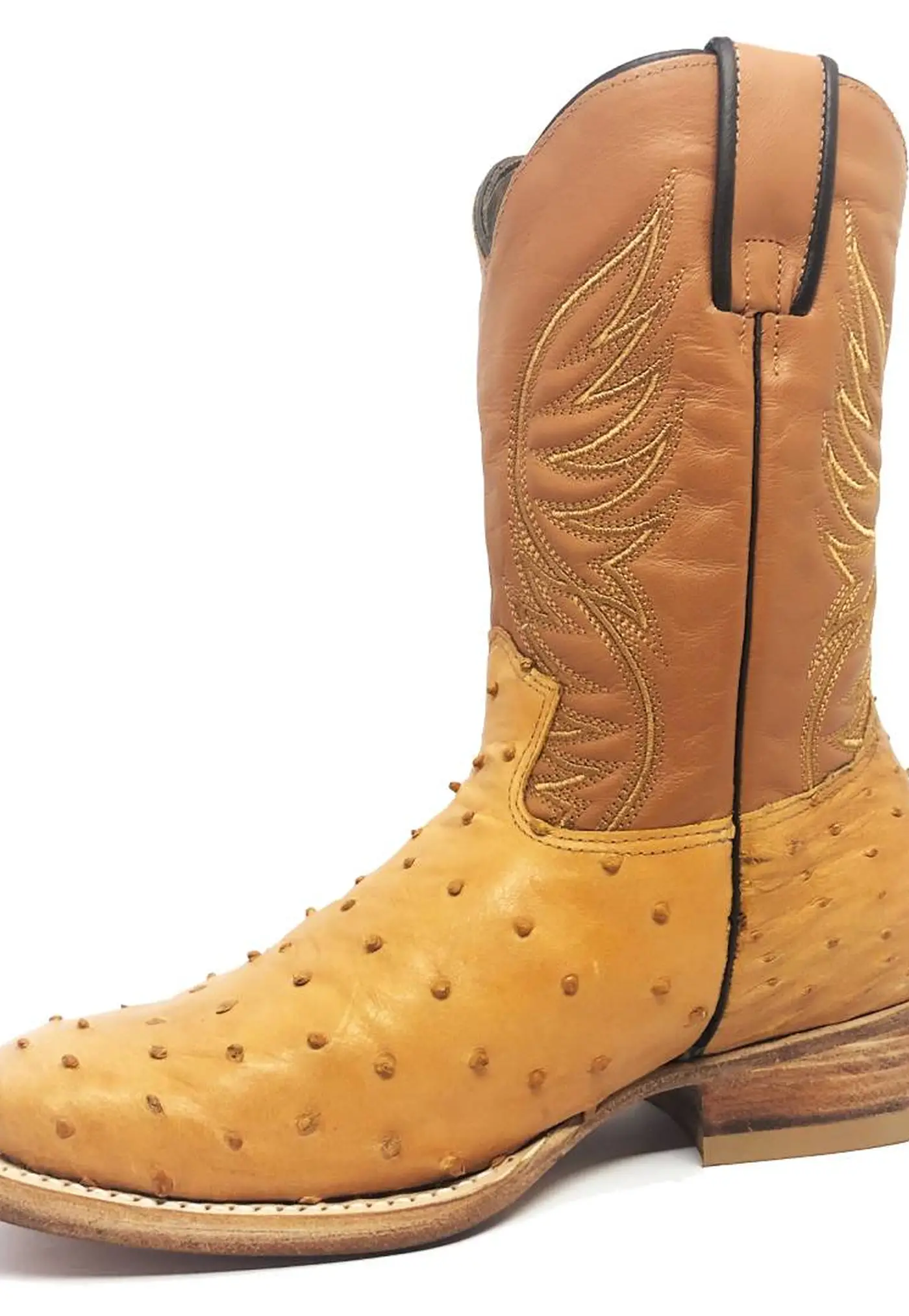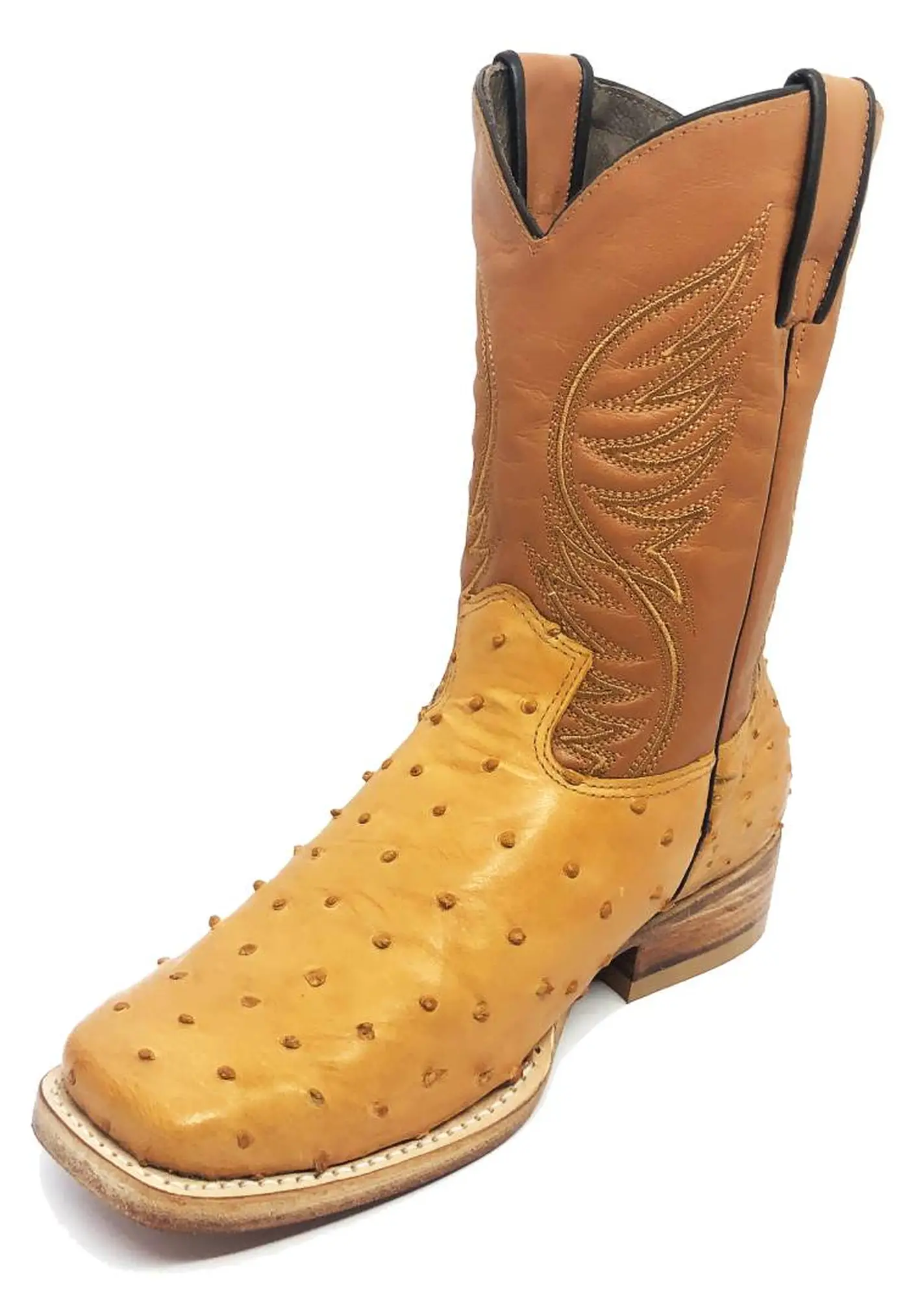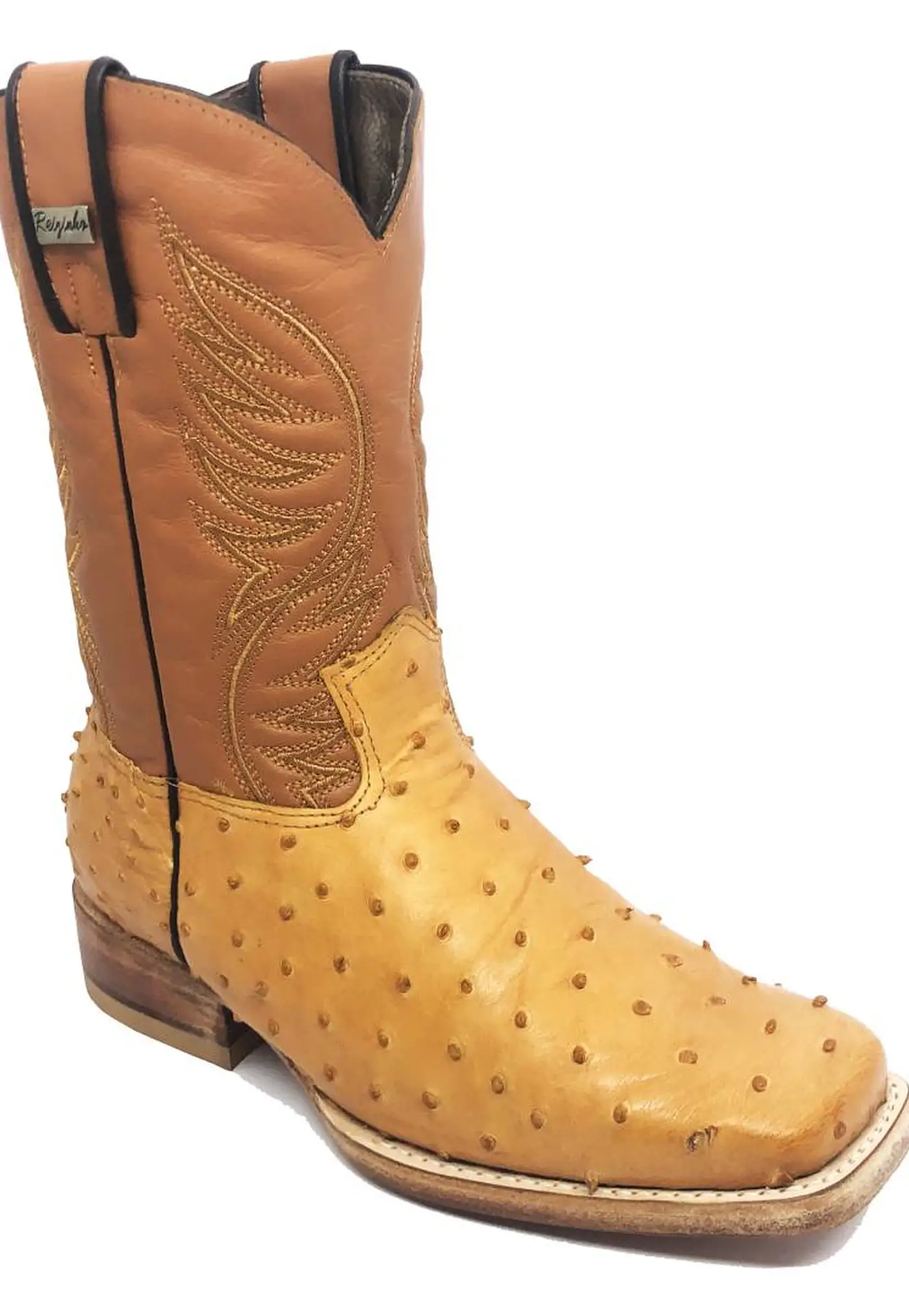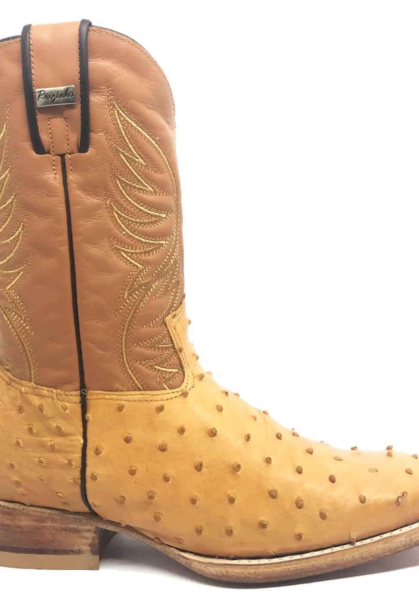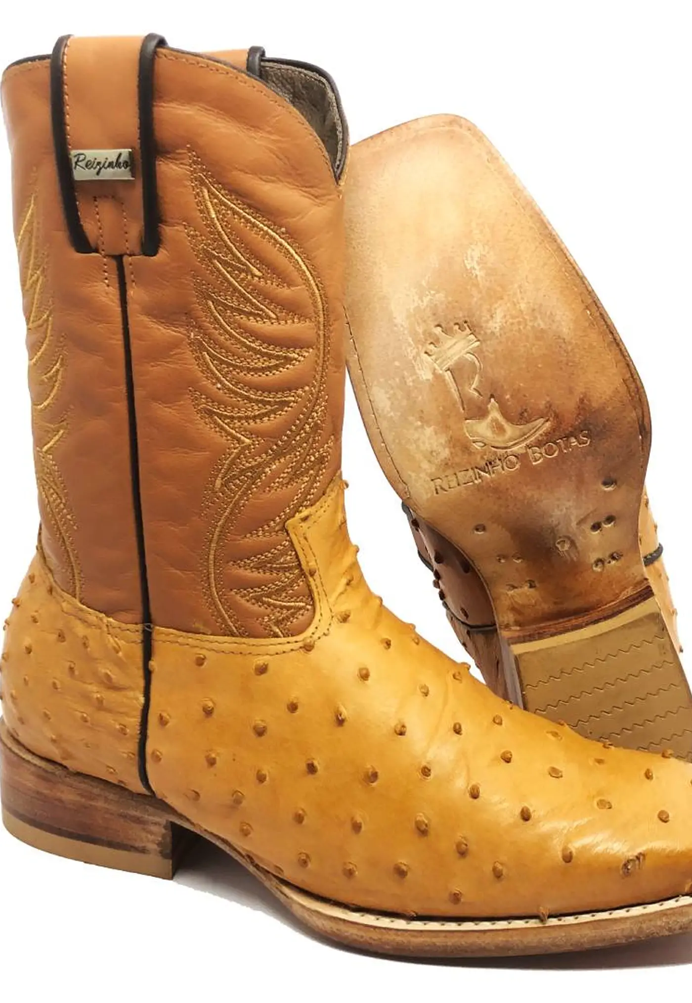 Bota Texana de Couro de Avestruz Cheio Conhaque | Reizinho Botas