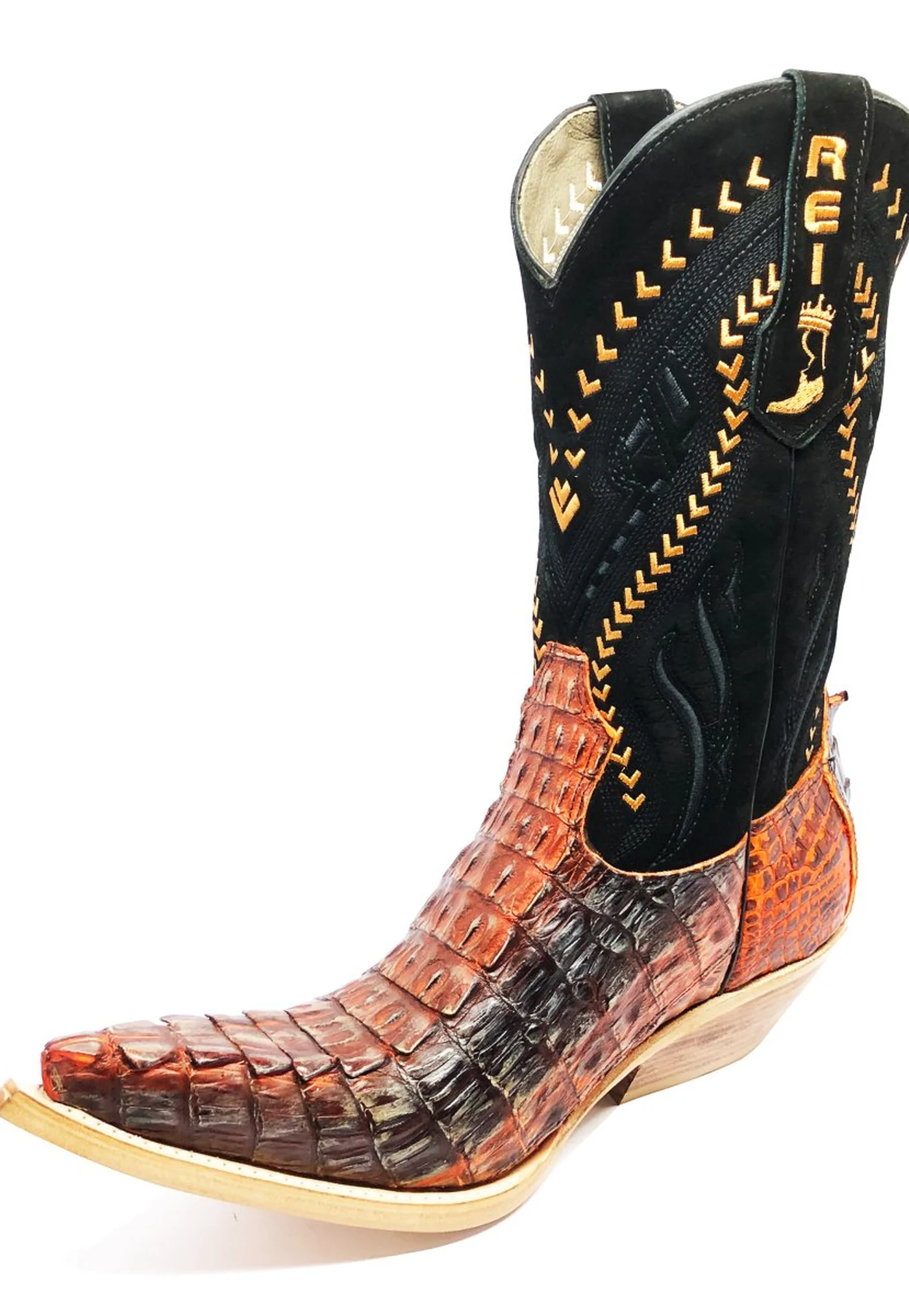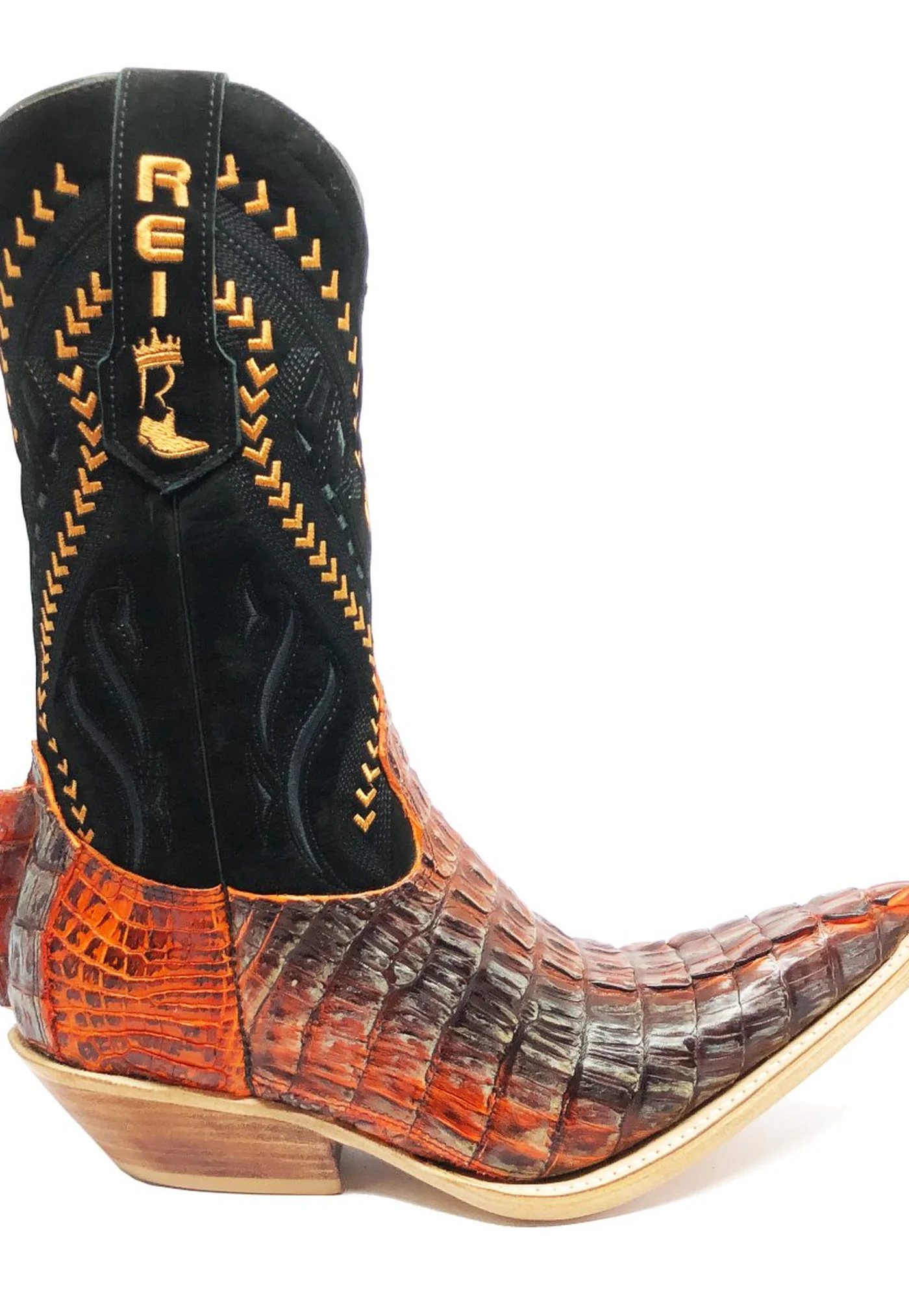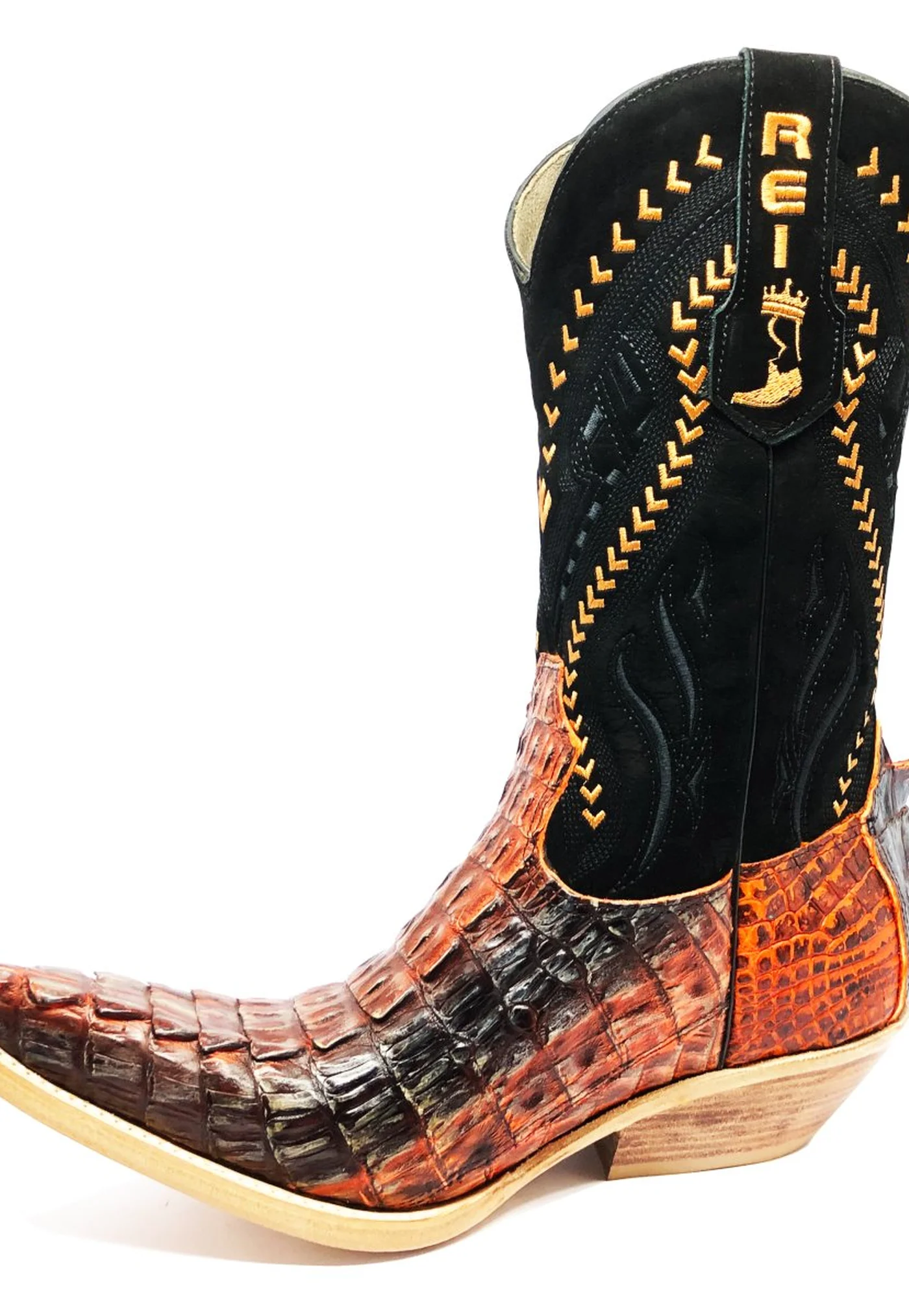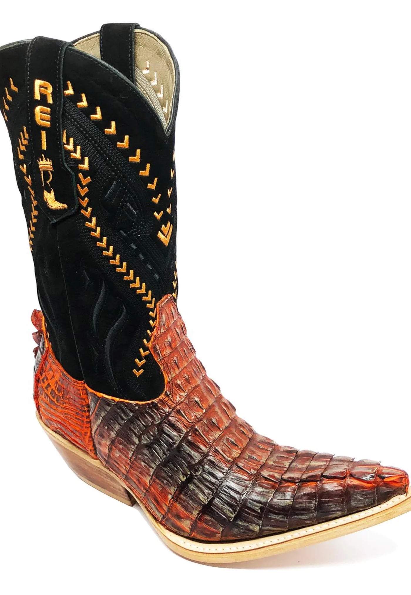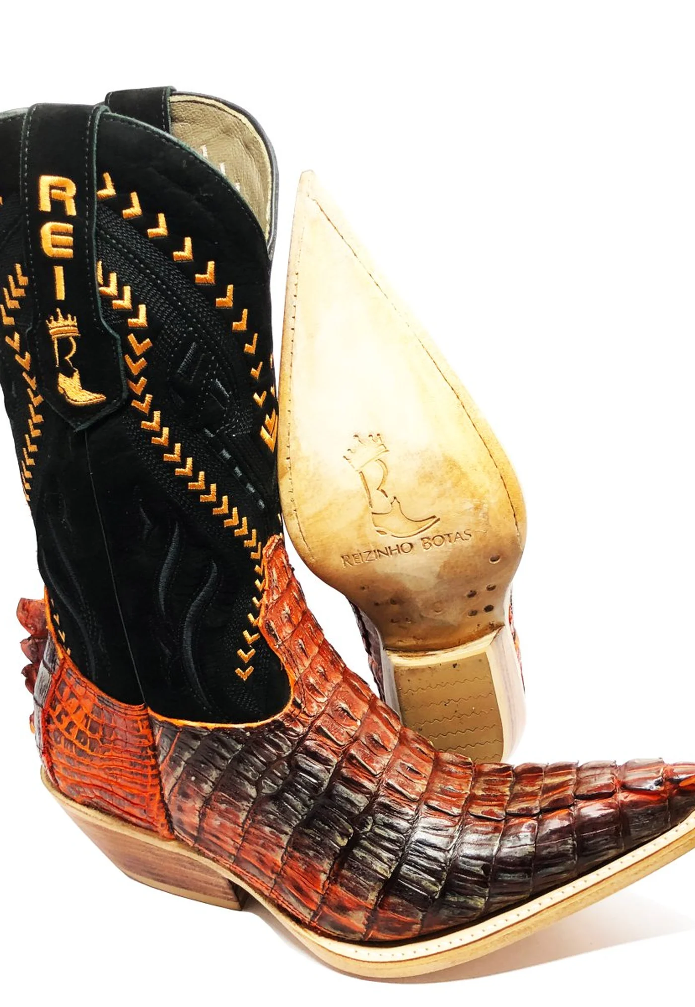 Bota Reizinho Premium Couro De Jacaré Darkness Orange Limited Edition - Cano Alto, Bico Fino, Solado De Couro Artesanal